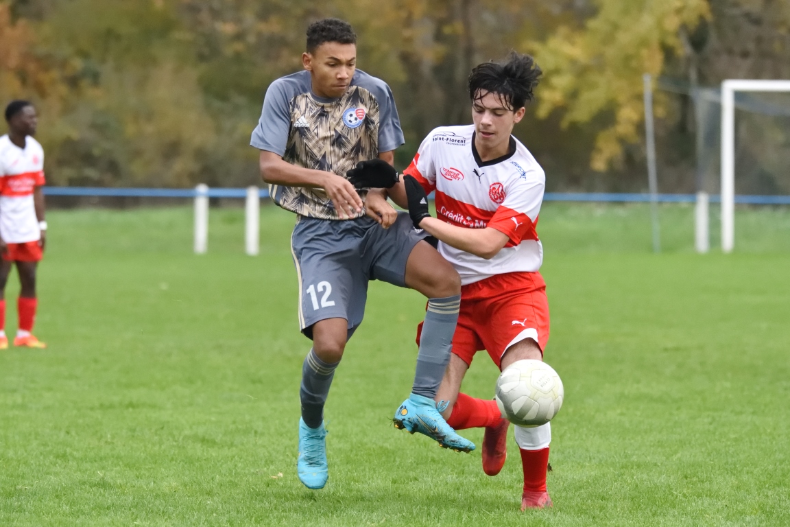 A l’occasion de la neuvième journée de championnat chez les U18/D1 (Groupe A), le FC Durrenbach (1er) accueillait l’AS Strasbourg (4e) avec la ferme intention de consolider leur place de leader, et ce, face à des adversaires cherchant à ne pas perdre le contact avec le podium. Après une première période se soldant par un large avantage en faveur des locaux (3-0), ces derniers allaient prendre le large en seconde période en ajoutant cinq buts au compteur tout en en concédant un, ce qui ne les empêcha pas de largement s’imposer sur ce score de 8-1! Retrouvez, ci-dessous, quelques images de cette rencontre et, pour en apprécier le contenu, veuillez cliquer sur l’une d’entre-elles pour afficher le diaporama.