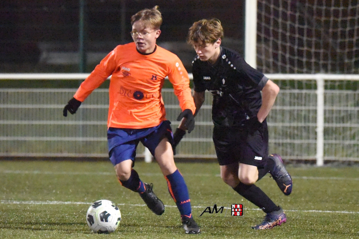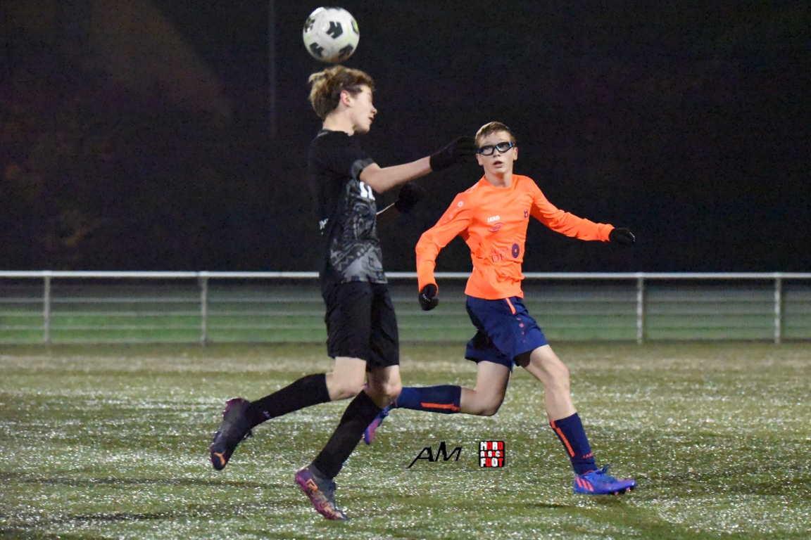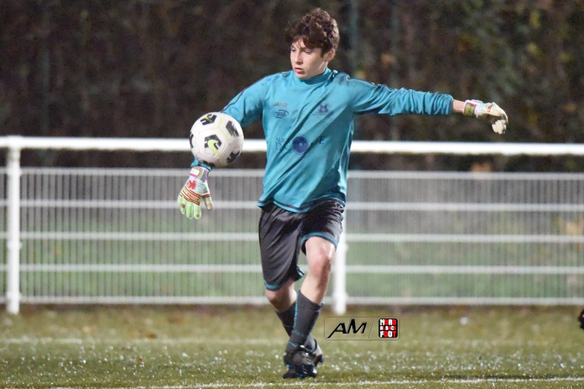 A l’occasion d’un match en retard comptant pour la neuvième journée de championnat chez les U15/D3 (Groupe B), le Groupement Jeunes d’Alsace du Nord (2e) accueillait l’Entente des Vosges du Nord (7e) afin de tenter de s’adjuger une victoire synonyme de titre de “Champions d’Automne” dans cette poule, et ce, face à des adversaires ayant eu un parcours en dent de scie tout au long de cet exercice automnal. Après une première période se soldant par un large avantage en faveur des locaux grâce à des réalisations signées Gertz Louis (1ère, 3e, 9e, 11e), Guthmuller Yoan (7e, 18e, 24e, 37e), Westermeyer Jonas (30e, 31e, 34e) et Meyer Enzo (23e), ces derniers allaient corser l’addition en seconde période en ajoutant onze buts au compteur par l’intermédiaire de Meyer Enzo (49e, 56e), de Gertz Louis (51e, 59e), de Guthmuller Yoan (61e, 70e, 76e), de Westermeyer Jonas (63e, 64e, 79e) et de Herrmann Jules (75e), cette avalanche de buts permettant finalement au GJAN de largement s’imposer sur ce score dans appel de 23-0! Retrouvez, ci-dessous, quelques images de cette rencontre et, pour en apprécier le contenu, veuillez cliquer sur l’une d’entre-elles pour afficher le diaporama.