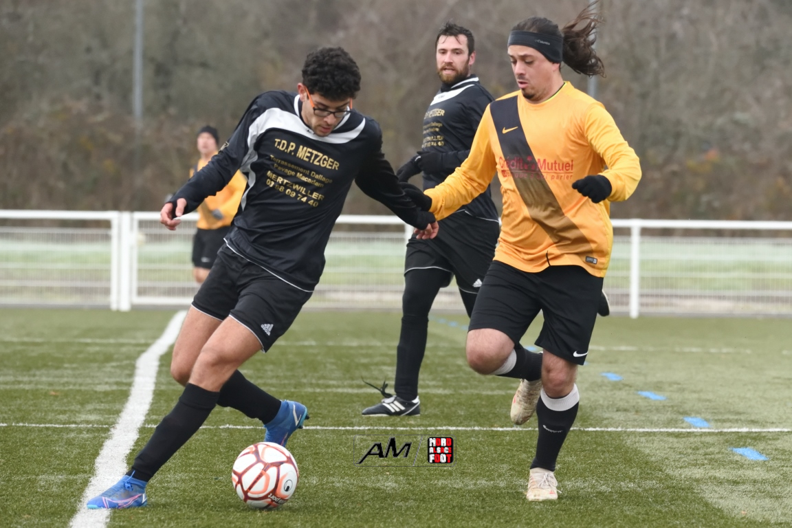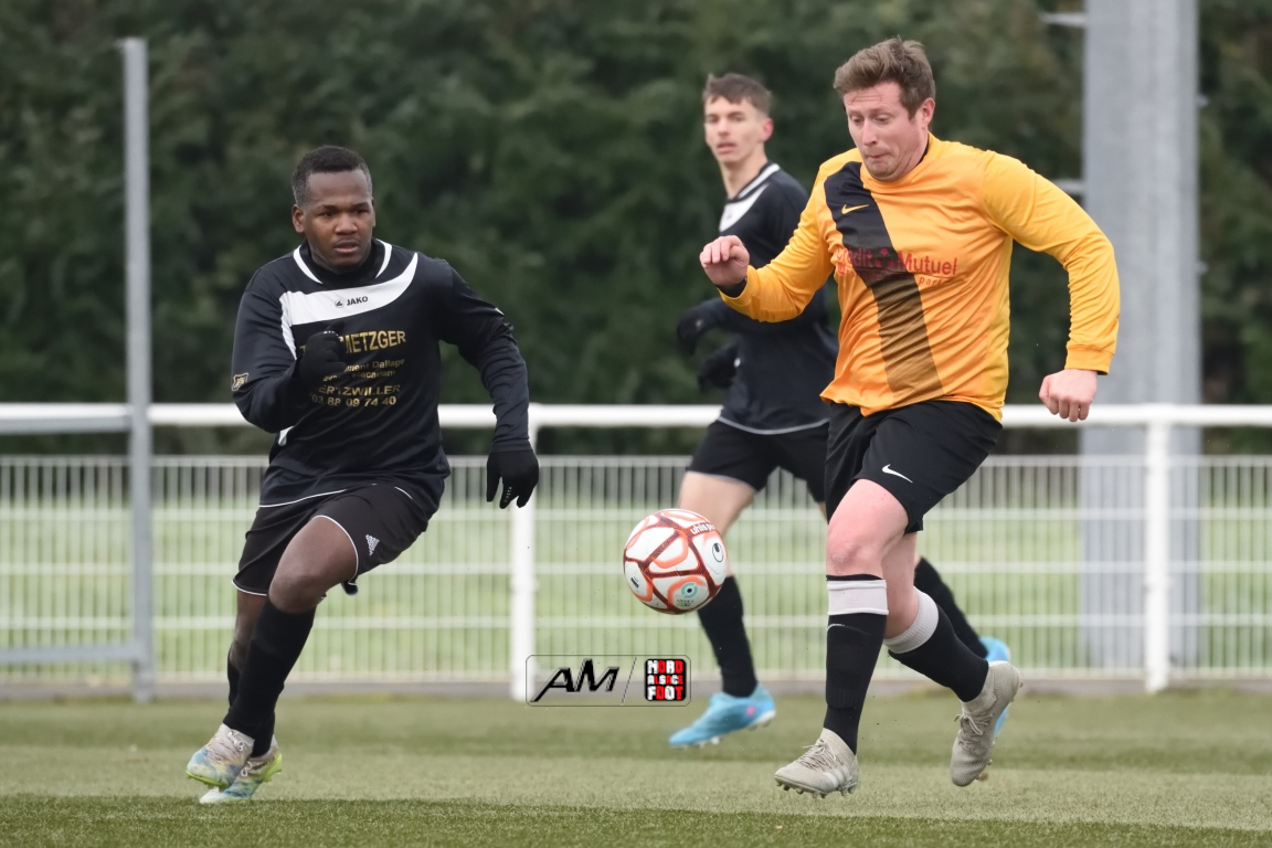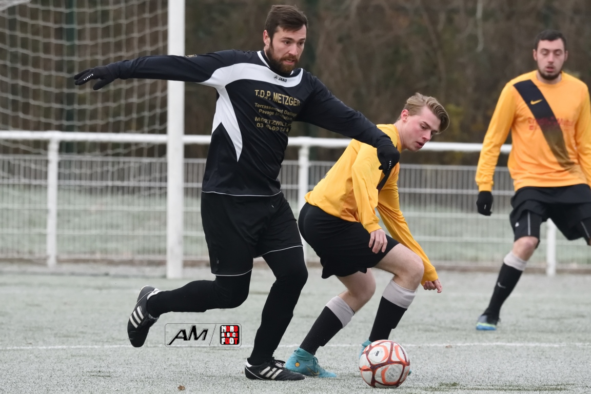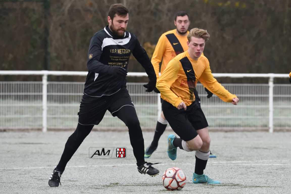 A l’occasion du quatrième tour du Challenge de Réserves 67, l’AS Seebach 2 (District 7) accueillait l’AS Mertzwiller 2 (District 7) afin de tenter de se qualifier par un froid glacial et sur un terrain synthétique givré, notamment en première période. Après un premier acte se soldant par un score de parité grâce à l’ouverture du score locale signée Herrmann Romain (1ere) contre une égalisation des visiteurs signée Keller Julien (40e), les Mertzwillerois allaient prendre l’avantage juste avant l’heure de jeu par l’intermédiaire de Weber Florian (59e) avant que les deux formations ne se neutralisent jusqu’au coup de sifflet final scellant la qualification de l’AS Mertzwiller sur ce score de 1-2! Retrouvez, ci-dessous, quelques images de cette rencontre et, pour en apprécier le contenu, veuillez cliquer sur l’une d’entre-elles pour afficher le diaporama.