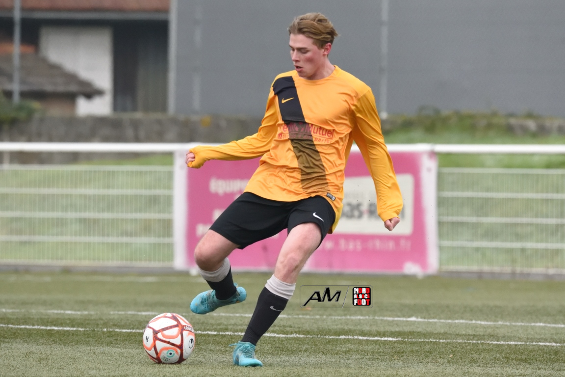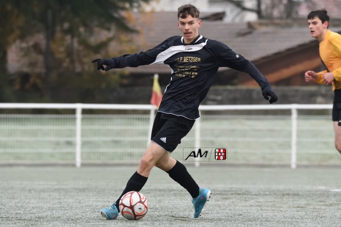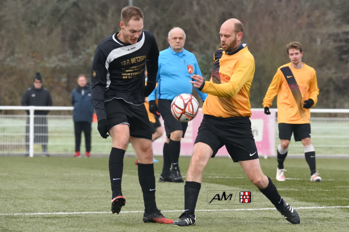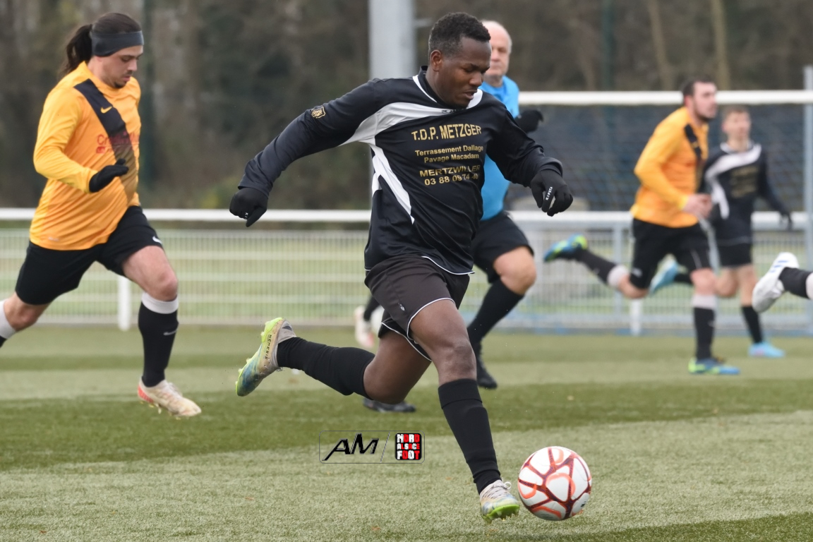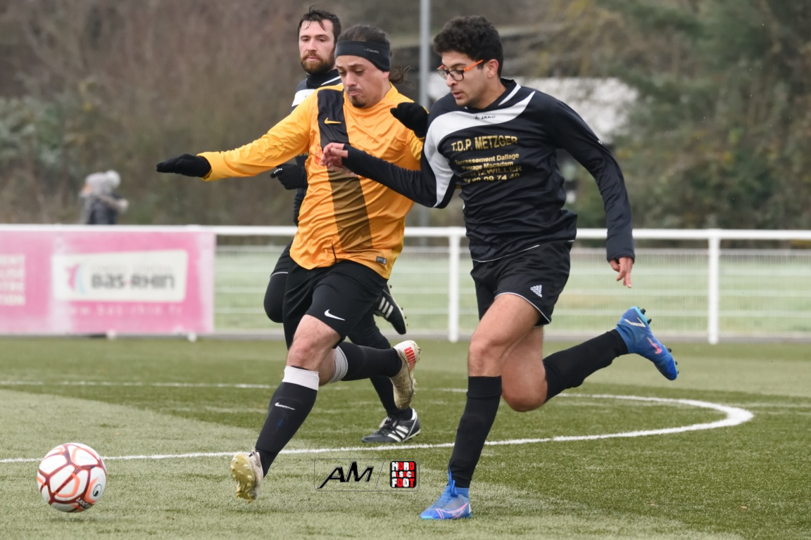 A l’occasion du quatrième tour du Challenge de Réserves 67, l’AS Seebach 2 (District 7) accueillait l’AS Mertzwiller 2 (District 7) afin de tenter de se qualifier par un froid glacial et sur un terrain synthétique givré, notamment en première période. Après un premier acte se soldant par un score de parité grâce à l’ouverture du score locale signée Herrmann Romain (1ere) contre une égalisation des visiteurs signée Keller Julien (40e), les Mertzwillerois allaient prendre l’avantage juste avant l’heure de jeu par l’intermédiaire de Weber Florian (59e) avant que les deux formations ne se neutralisent jusqu’au coup de sifflet final scellant la qualification de l’AS Mertzwiller sur ce score de 1-2! Retrouvez, ci-dessous, quelques images de cette rencontre et, pour en apprécier le contenu, veuillez cliquer sur l’une d’entre-elles pour afficher le diaporama.