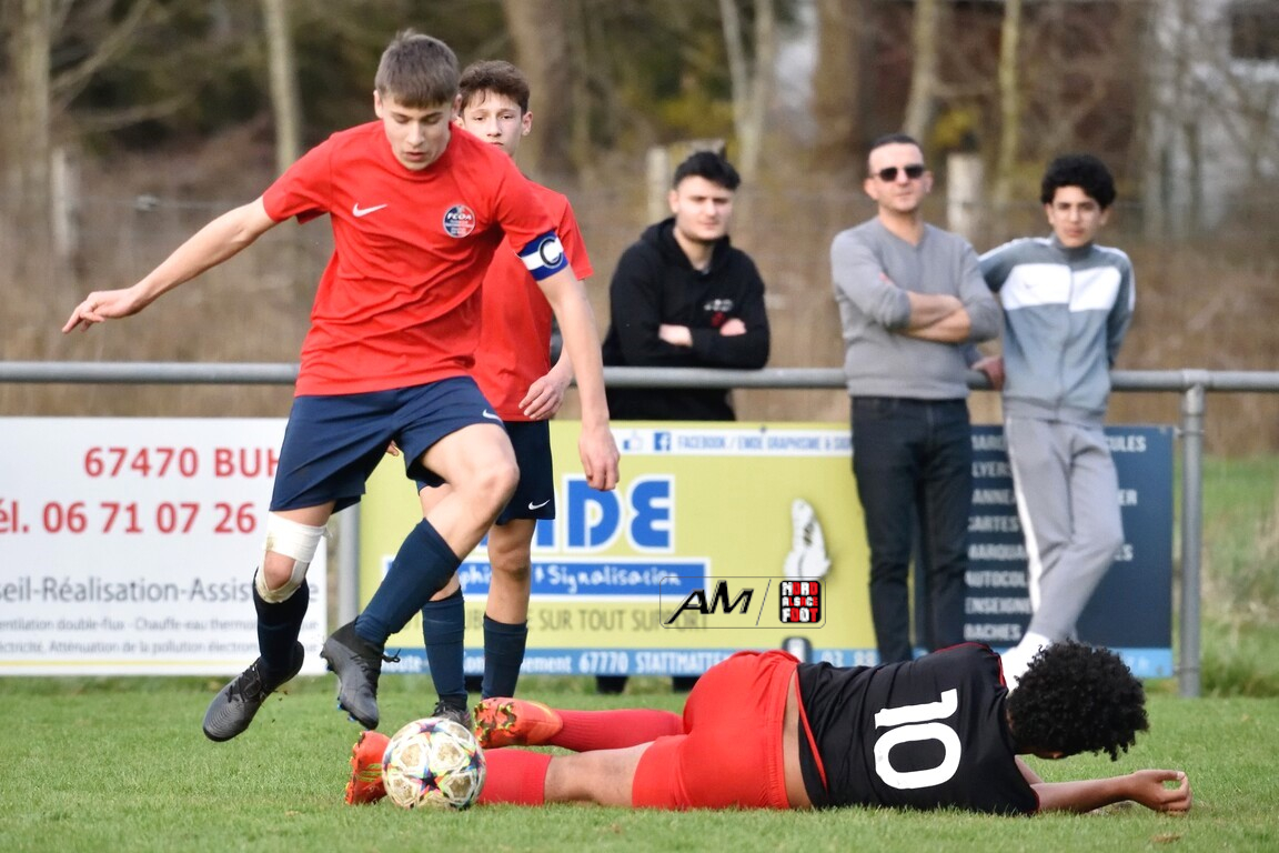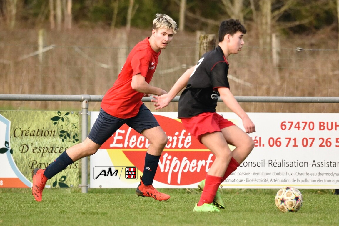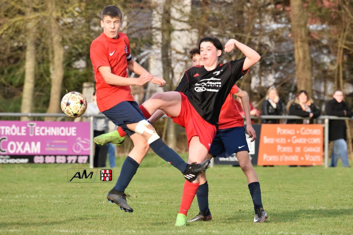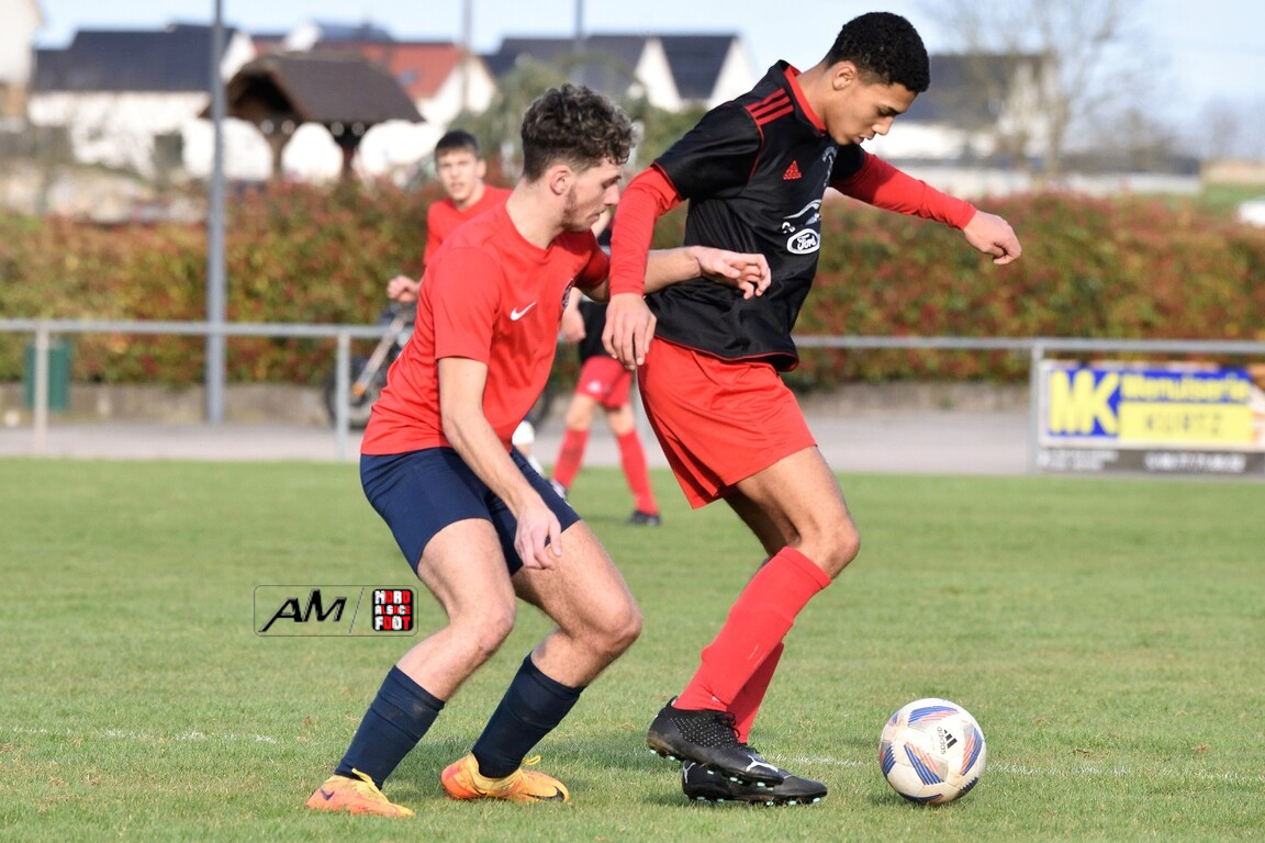 A l’occasion de la deuxième journée de championnat chez les U18/D3 (Groupe B), l’entente Oberroedern/EAOHR accueillait le FC Bischwiller avec l’intention de remettre le pied à l’étrier après la défaite concédée face à la Jeunesse de l’UFFRIED en ouverture (2-0), et ce, face à des adversaires étant animés des mêmes intentions. Après une première période se soldant par un avantage confortable en faveur des locaux grâce à des réalisations signées Rubeck Arthur (6e) et Mosser Romain (25e), les visiteurs allaient parvenir à réduire la marque à la 78e minute de jeu par l’intermédiaire de Demiray Mustafa avant que les locaux ne fassent définitivement le break à la 86e minute de jeu par l’intermédiaire de Muller Melvin. Retrouvez, ci-dessous, quelques images de cette rencontre et, pour en apprécier le contenu, veuillez cliquer sur l’une d’entre-elles pour afficher le diaporama