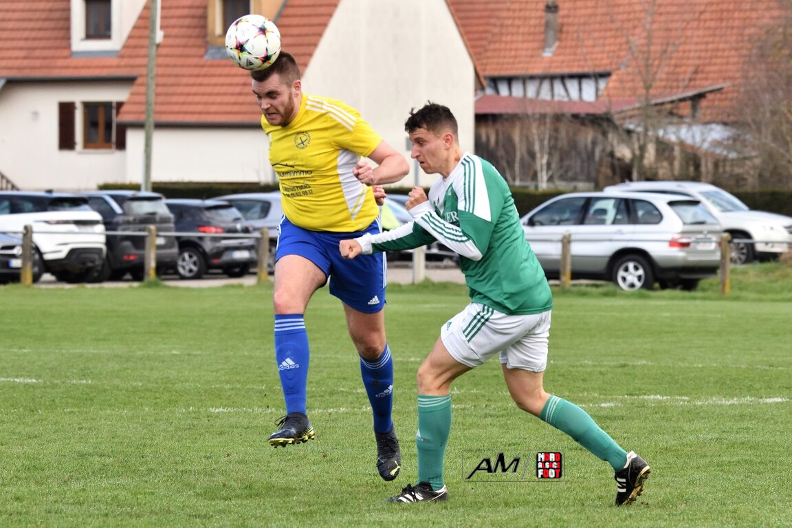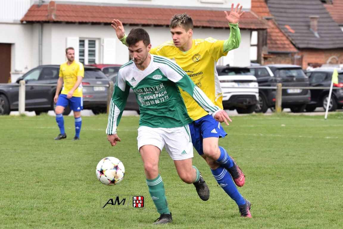 A l’occasion de la treizième journée de championnat en District 3 (Groupe B), l’AS Hunspach 2 (10e) accueillait l’AS Ohlungen 2 (1er) avec la ferme intention de tenir bon face à des adversaires voulant conforter leur place de leader lors de ce déplacement. Après une première période se soldant par un avantage confortable en faveur des locaux grâce à un triplé de Blattner Thomas (23e, 39e, 42e) contre un but inscrit par Chaudey Yanis (7e) pour les visiteurs, les doublures hunpachoises cueillirent leurs adversaires à froid au retour des vestiaires grâce à un quadruplé de Blattner Thomas (46e) avant que les deux formations ne se neutralisent jusqu’au coup de sifflet final. Retrouvez, ci-dessous, quelques images de cette rencontre et, pour en apprécier le contenu, veuillez cliquer sur l’une d’entre-elles pour afficher le diaporama.