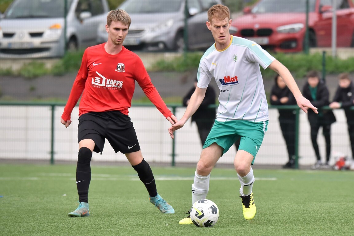 | 64′ | Suite à une perte de balle des locaux sur la gauche, les visiteurs tentèrent de partir en contre dans le couloir mais ce fut sans compter sur la patrouille locale, cette dernière se mettant à la faute à hauteur de la ligne médiane, ce méfait occasionnant un coup-franc que Weigel Maxime se chargea de jouer en profondeur le long de la ligne de touche en faveur de Keller Nathan, ce dernier s’enfonçant dans ce couloir avant qu’il n’obtienne un corner qu’il se chargea de botter de la droite en direction du point de penalty à hauteur duquel Weigel Maxime tenta de reprendre le cuir de la tête mais le ballon fut finalement renvoyé par Martzolff Raphaël. | |
