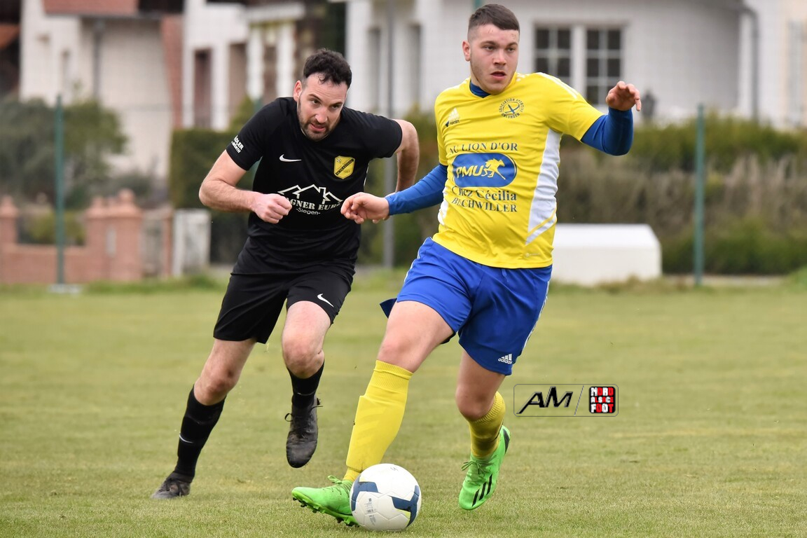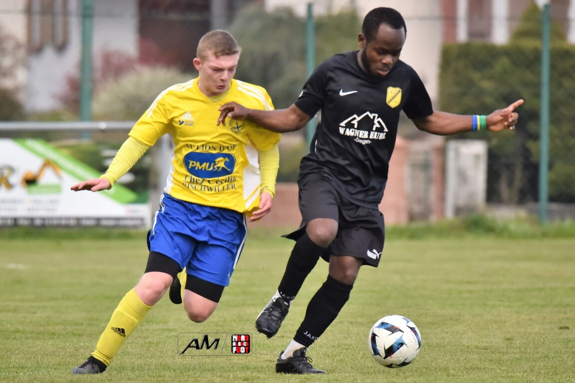 A l’occasion d’un match en retard comptant pour la onzième journée de championnat en District 5 (Groupe B), l’US Schleithal 2 (5e) accueillait l’AS Ohlungen 3 (4e) afin de grapiller des points essentiels pour espérer se mêler à la lutte pour la montée à l’échelon supérieur. Après une première période se soldant par un un léger avantage en faveur des visiteurs grâce à des réalisations signées Welsch Julien (23e) et Wetzel Esteban (27e) contre un but inscrit par Hiebel Steeve (26e) pour les locaux, les doublures schleithaloises allaient parvenir à égaliser au retour des vestiaires par l’intermédiaire de Achard Kévin (47e) avant que, sur l’engagement suivant, les visiteurs ne reprennent l’avantage par l’intermédiaire de Ludmann Thibaut (48e). A la 77e minute de jeu, les locaux obtinrent un penalty que Nzamba Nzamba Dex Farel ne manqua pas de transformer pour mettre tout le monde d’accord mais ce fut sans compter sur Sommer Mathias, ce dernier offrant définitivement la victoire à l’AS Ohlungen 3 à la 79e minute de jeu. Retrouvez, ci-dessous, quelques images de cette rencontre et, pour en apprécier le contenu, veuillez cliquer sur l’une d’entre-elles pour afficher le diaporama.