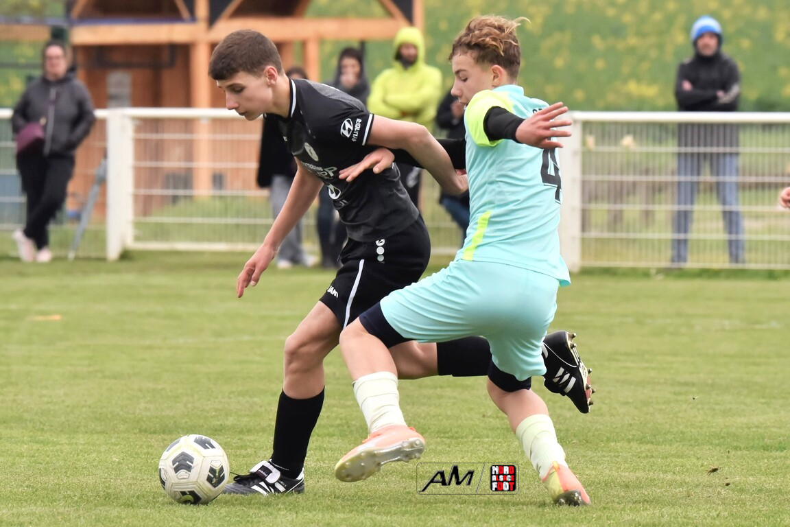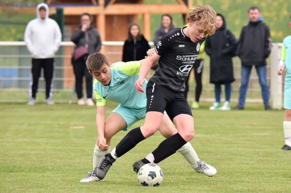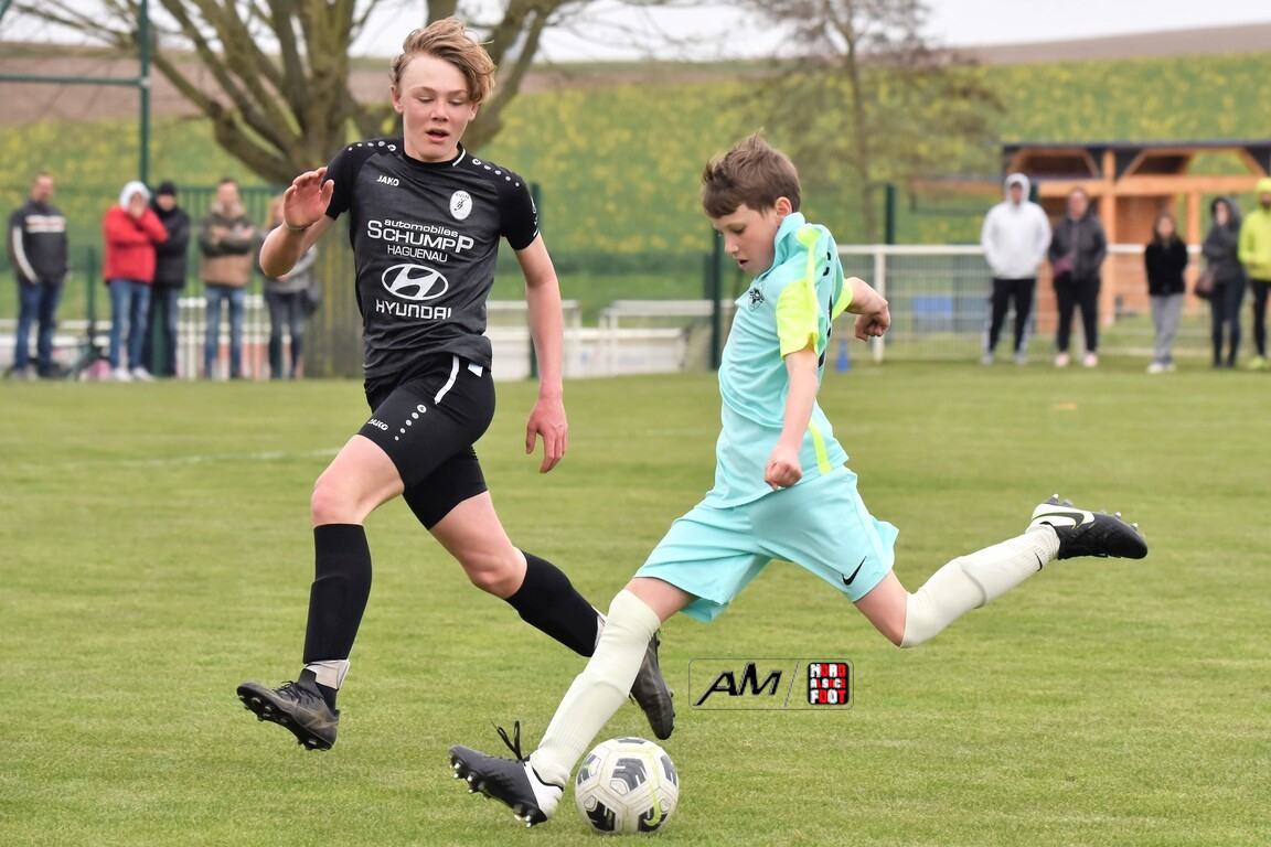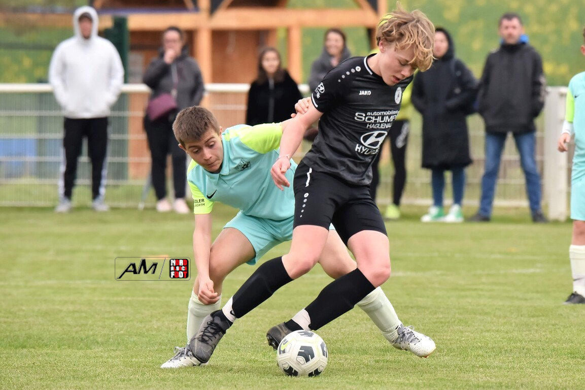 A l’occasion d’un match en retard comptant pour la quatrième journée de championnat chez les U13/D2 Titre (Groupe A), le Groupement Jeunes d’Alsace du Nord (1er) accueillait l’entente Seltz/ES2M (2e) pour un match ayant déjà des allures d’une finale aller de cette poule. Après une première période se soldant par un large avantage en faveur des locaux grâce à des réalisations signées Blattner Ethan (3e, 12e) et Gillig Noah (23e), ces derniers allaient corser l’addition en seconde période en ajoutant deux buts au compteur par l’intermédiaire de Gillig Hugo (47e) et Brautigan Nepomuk (61e) avant qu’ils ne finissent par s’adjuger une victoire importante sur ce score de 5-0! Retrouvez, ci-dessous, quelques images de cette rencontre et, pour en apprécier le contenu, veuillez cliquer sur l’une d’entre-elles pour afficher le diaporama.