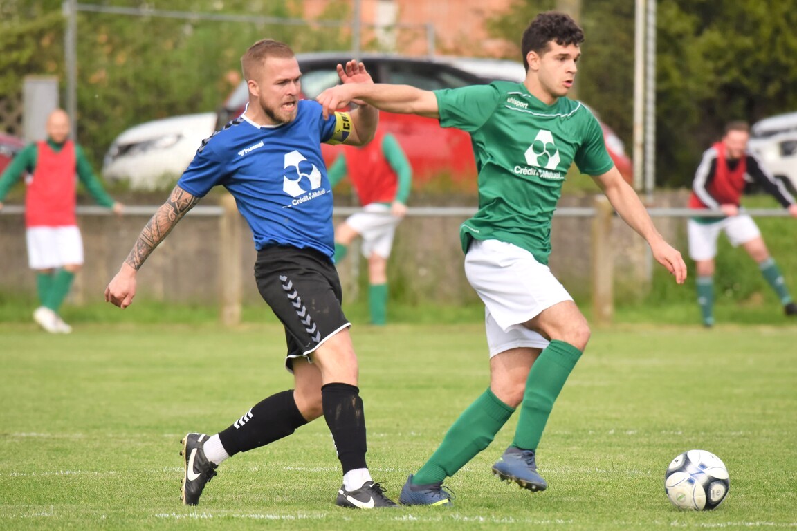 | 70′ | Dans la foulée du coup-franc indirect précédent, les verts allaient rapidement remettre le pied sur le ballon, grâce notamment à Meyer Thomas, ce dernier décalant ensuite le ballon sur la gauche en faveur de Billmann Simon, le défenseur se mettant finalement dans de bonnes dispositions pour émettre un centre en direction du second poteau à hauteur duquel Billmann Julien reprit le cuir d’une frappe filant tout droit dans les gants de Patou Sébastien. | |