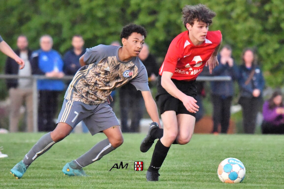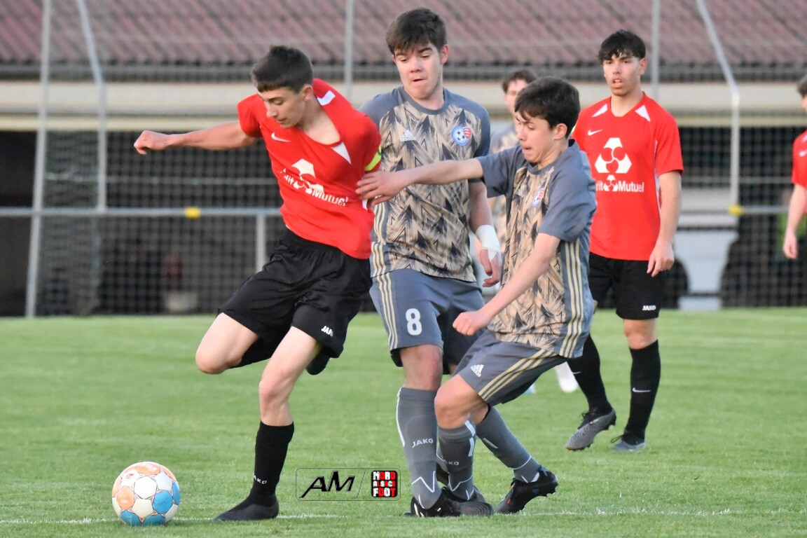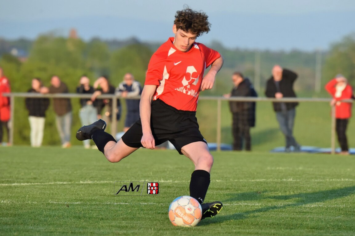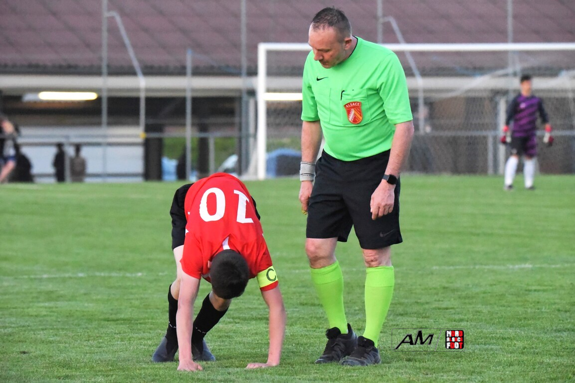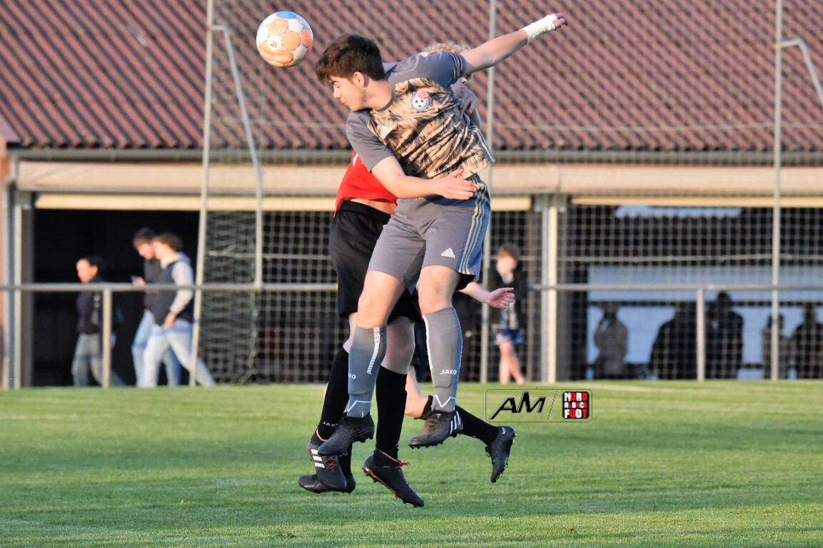 A l’occasion des demi-finales de la Coupe d’Encouragement – Crédit Mutuel dans la catégorie U18, l’entente Sauer/Pechelbronn (District 1) accueillait le CS Fegersheim (District 1) avec la ferme intention d’obtenir un ticket pour une deuxième finale consécutive. Après une première période se soldant par un court avantage en faveur des visiteurs grâce à une réalisation signée Balmer Tom (20e), ces derniers allaient faire le break à la 63e minute de jeu grâce à un doublé de Balmer Tom, les deux formations se neutralisant ensuite jusqu’à la 98e minute de jeu, moment choisi par les locaux pour réduire la marque sur un penalty transformé par Devanlay Thibaut et, dans les ultimes secondes du temps additionnel les locaux eurent une ultime occasion d’égaliser mais le gardien capta le ballon entre ses jambes alors qu’il était au sol. Les ententistes sortent de la compétition la tête haute et on ne peut que les féliciter pour leur parcours. Retrouvez, ci-dessous, quelques images de cette rencontre et, pour en apprécier le contenu, veuillez cliquer sur l’une d’entre-elles pour afficher le diaporama.