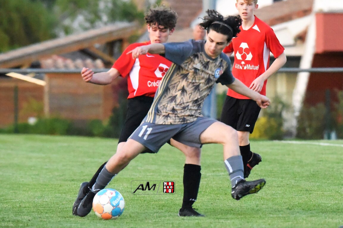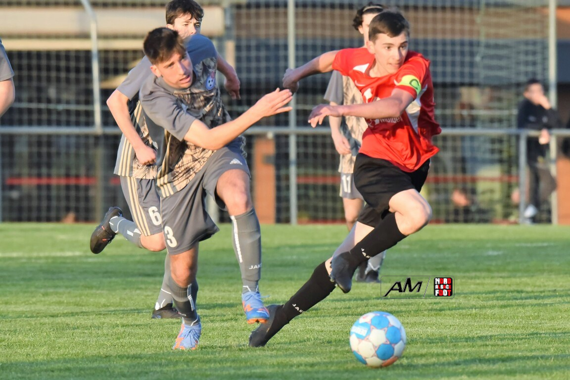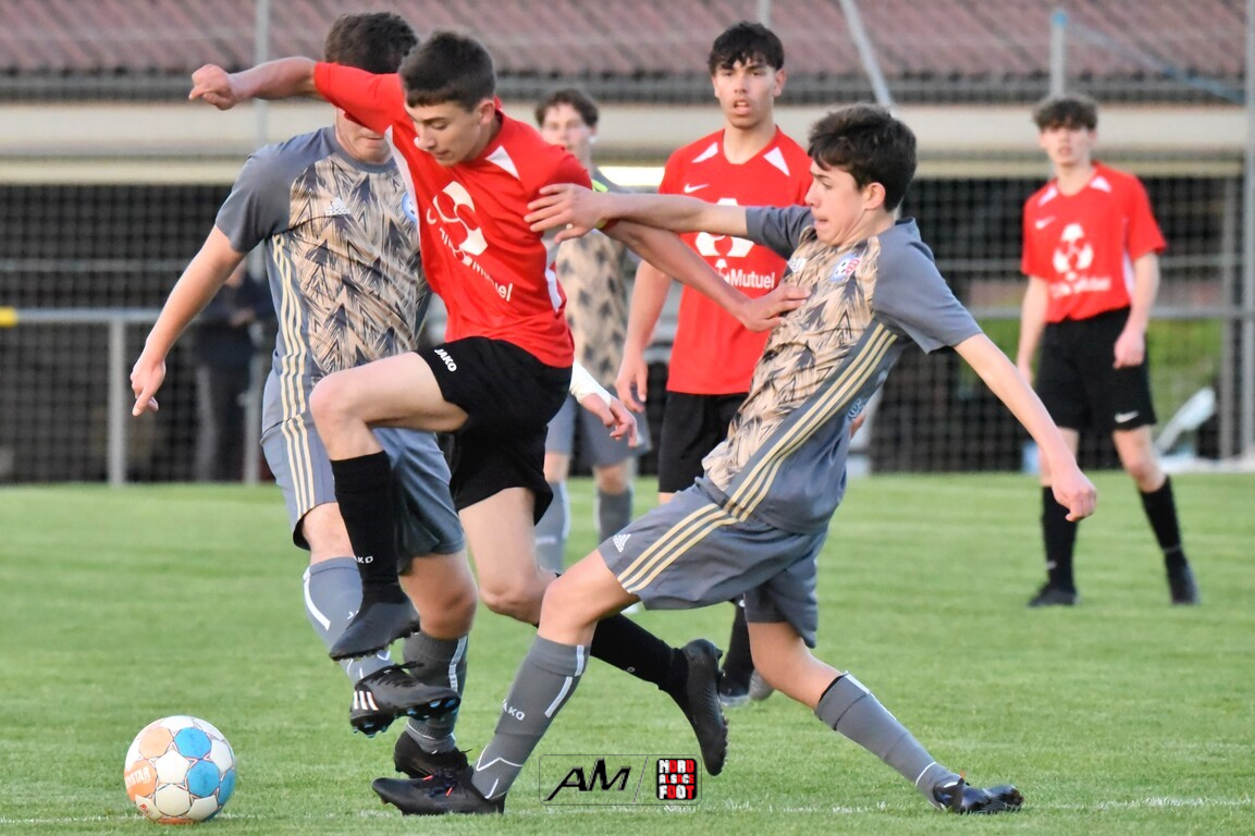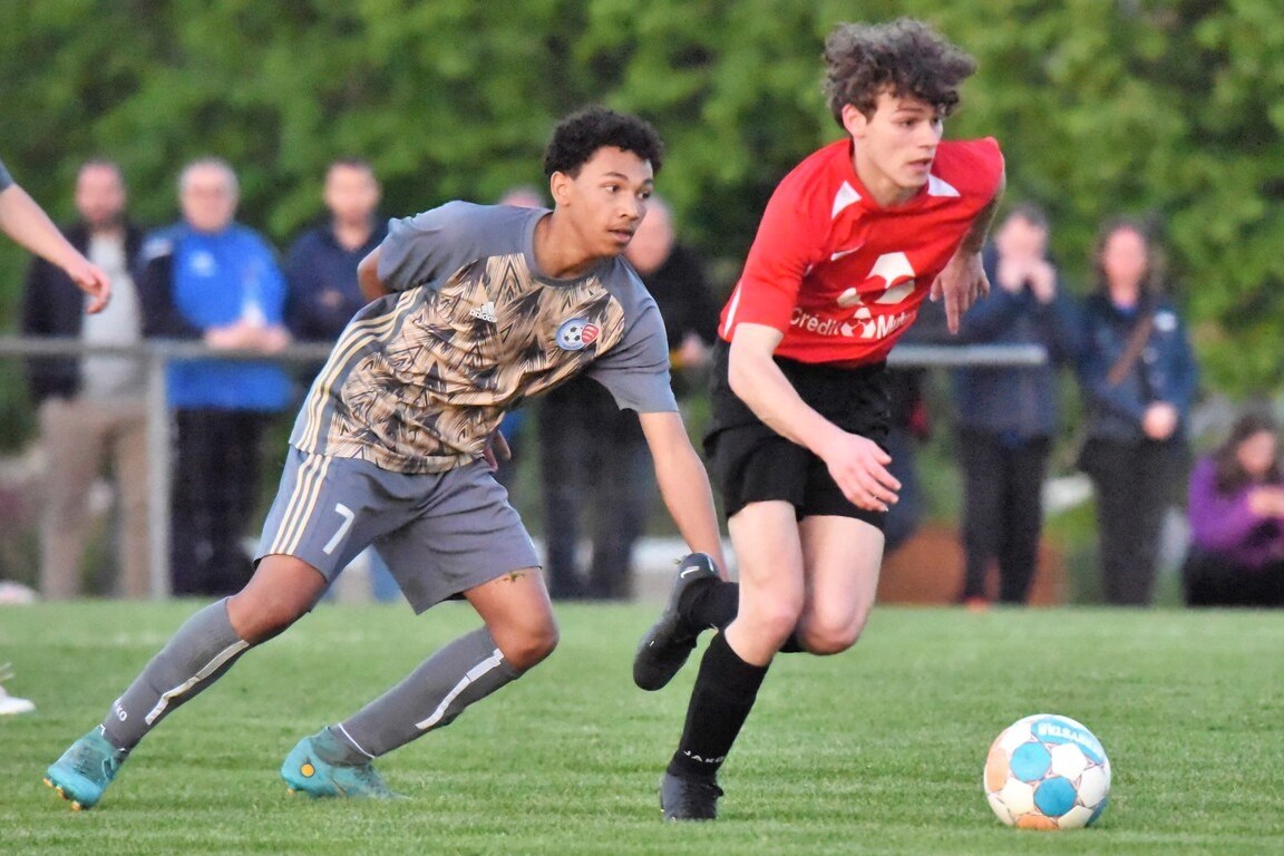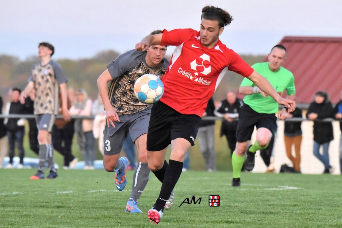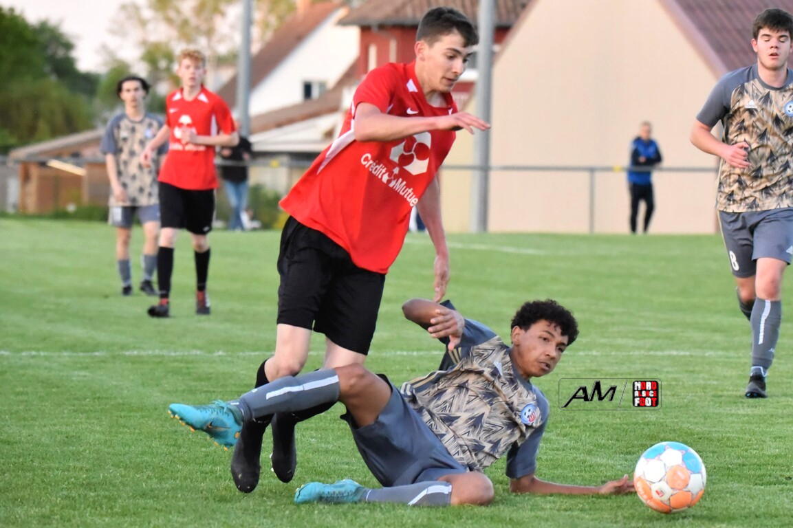 A l’occasion des demi-finales de la Coupe d’Encouragement – Crédit Mutuel dans la catégorie U18, l’entente Sauer/Pechelbronn (District 1) accueillait le CS Fegersheim (District 1) avec la ferme intention d’obtenir un ticket pour une deuxième finale consécutive. Après une première période se soldant par un court avantage en faveur des visiteurs grâce à une réalisation signée Balmer Tom (20e), ces derniers allaient faire le break à la 63e minute de jeu grâce à un doublé de Balmer Tom, les deux formations se neutralisant ensuite jusqu’à la 98e minute de jeu, moment choisi par les locaux pour réduire la marque sur un penalty transformé par Devanlay Thibaut et, dans les ultimes secondes du temps additionnel les locaux eurent une ultime occasion d’égaliser mais le gardien capta le ballon entre ses jambes alors qu’il était au sol. Les ententistes sortent de la compétition la tête haute et on ne peut que les féliciter pour leur parcours. Retrouvez, ci-dessous, quelques images de cette rencontre et, pour en apprécier le contenu, veuillez cliquer sur l’une d’entre-elles pour afficher le diaporama.
