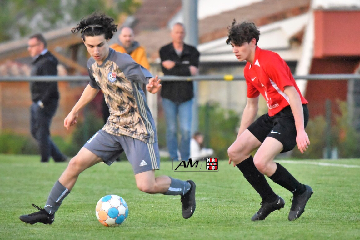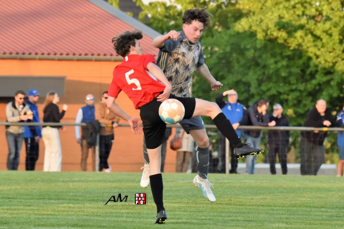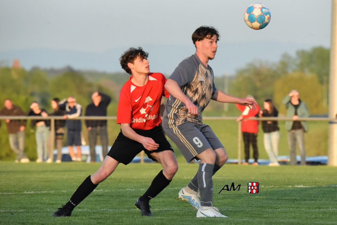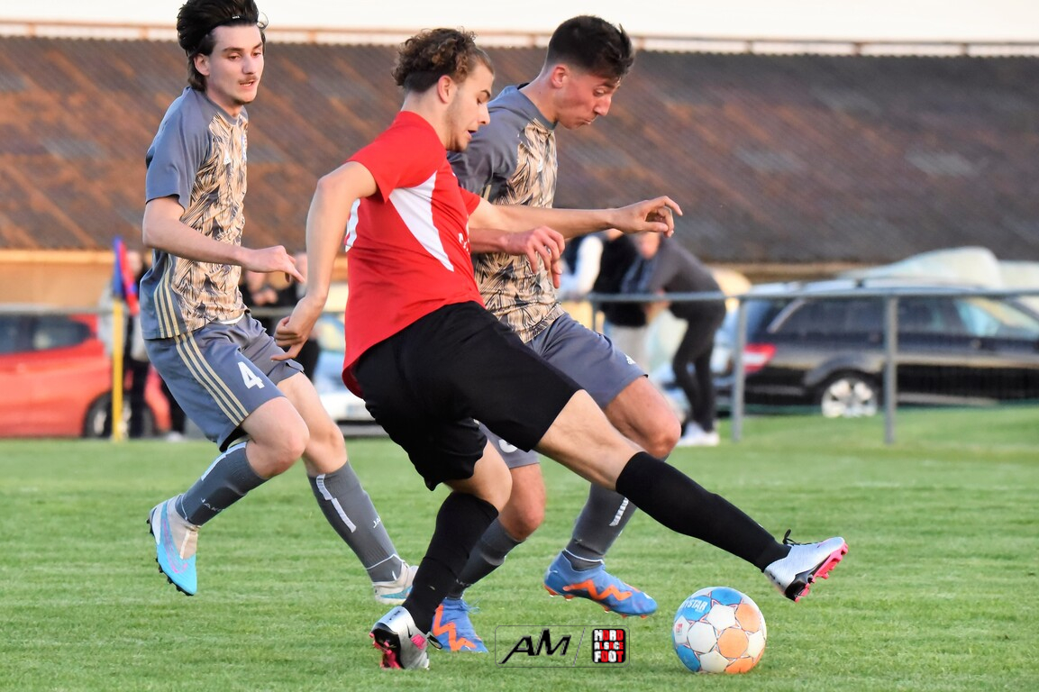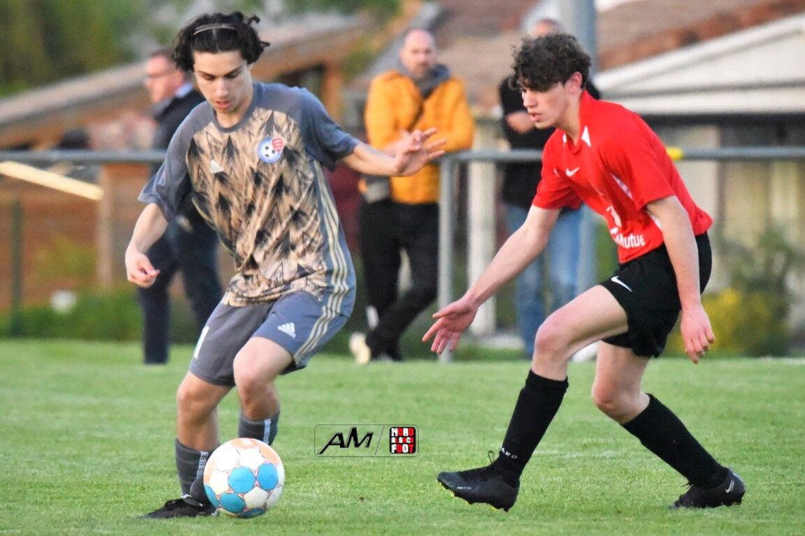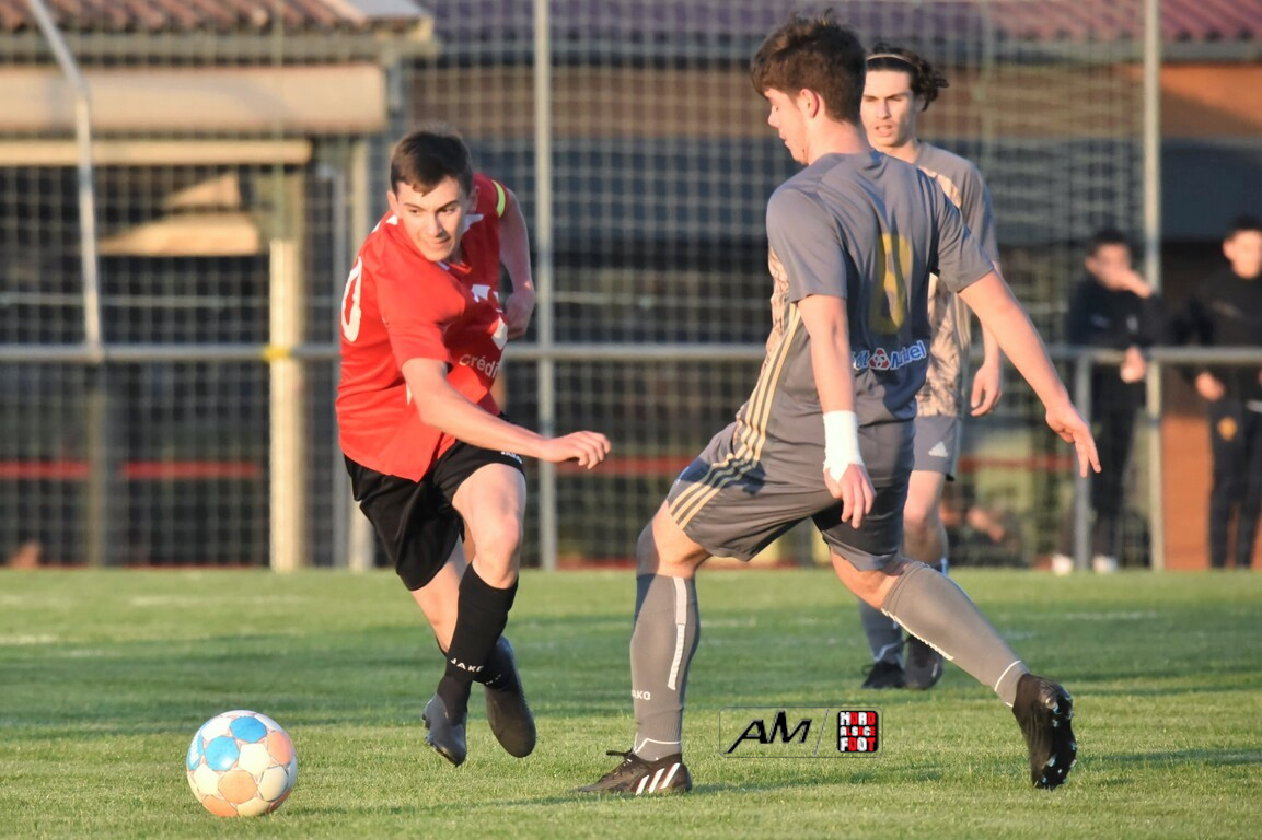 A l’occasion des demi-finales de la Coupe d’Encouragement – Crédit Mutuel dans la catégorie U18, l’entente Sauer/Pechelbronn (District 1) accueillait le CS Fegersheim (District 1) avec la ferme intention d’obtenir un ticket pour une deuxième finale consécutive. Après une première période se soldant par un court avantage en faveur des visiteurs grâce à une réalisation signée Balmer Tom (20e), ces derniers allaient faire le break à la 63e minute de jeu grâce à un doublé de Balmer Tom, les deux formations se neutralisant ensuite jusqu’à la 98e minute de jeu, moment choisi par les locaux pour réduire la marque sur un penalty transformé par Devanlay Thibaut et, dans les ultimes secondes du temps additionnel les locaux eurent une ultime occasion d’égaliser mais le gardien capta le ballon entre ses jambes alors qu’il était au sol. Les ententistes sortent de la compétition la tête haute et on ne peut que les féliciter pour leur parcours. Retrouvez, ci-dessous, quelques images de cette rencontre et, pour en apprécier le contenu, veuillez cliquer sur l’une d’entre-elles pour afficher le diaporama.