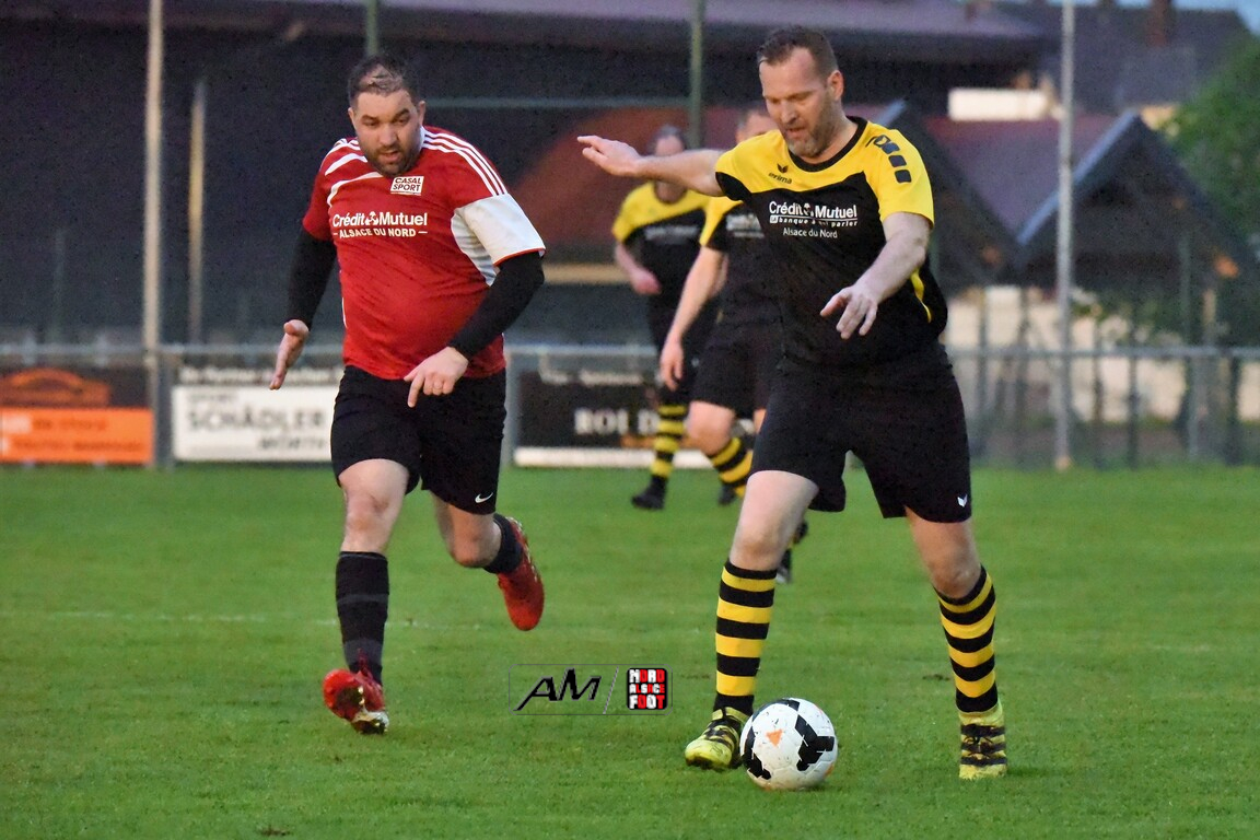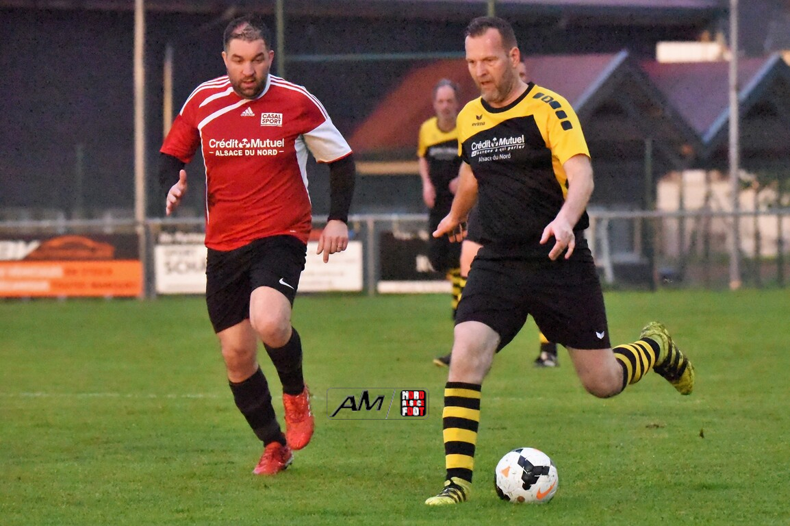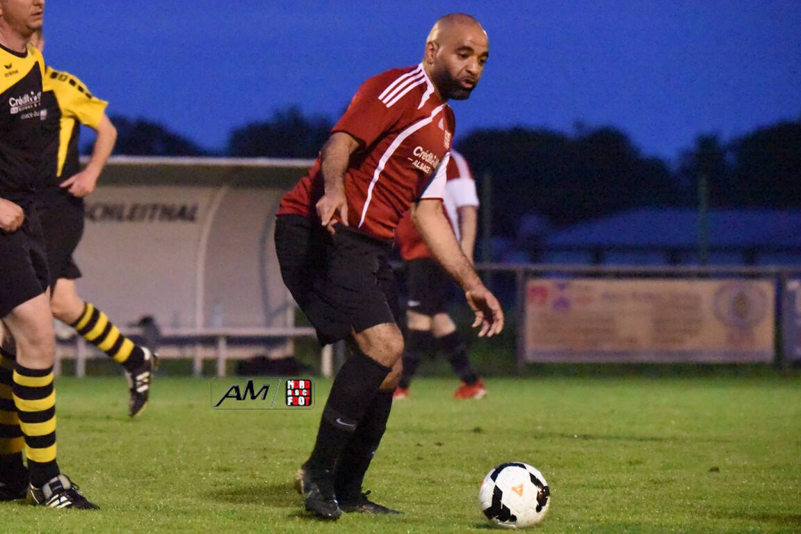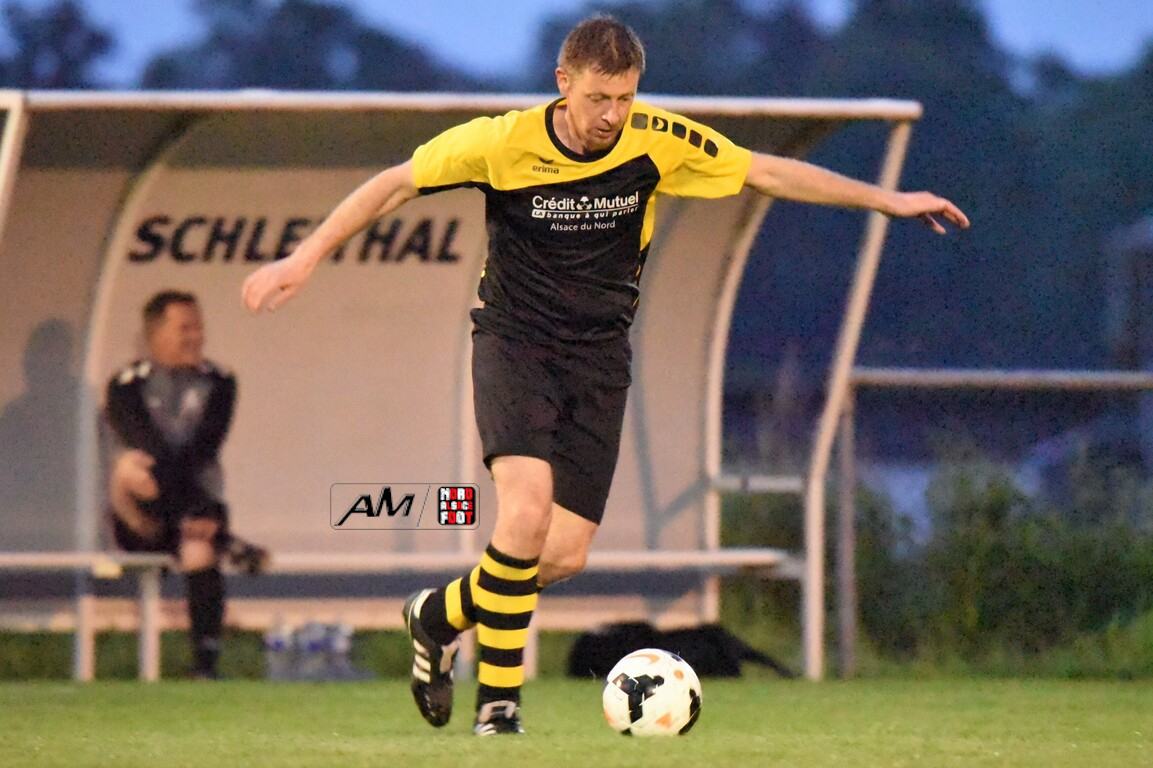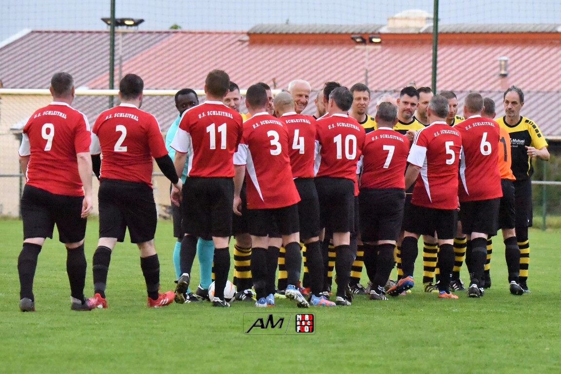 A l’occasion de la douzième journée de championnat chez les Vétérans (Groupe D), l’entente Schleithal/E2SO 51 (6e) accueillait l’entente Wissembourg/ESTALT 51 (7e) afin de tenter d’accrocher la première moitié de tableau d’ici la fin de la saison en commençant par décrocher une victoire ce vendredi soir face à des adversaires qu’ils avaient déjà battus à l’aller (1-3). Après une première période se soldant par un large avantage en faveur des locaux grâce à des réalisations signées Boudgoust Rémy (8e), Heilmann Yves (11e) et Steinbrunn Daniel (21e), ces derniers allaient corser l’addition en seconde période en ajoutant cinq buts au compteur par l’intermédiaire de Dietenbeck Julien (39e), de Boutahri Abdeslam (68e), de Lejal Christophe (59e) et de Boutahri Hassan (61e et 64e) avant qu’ils ne finissent par s’imposer sur ce score fleuve de 8-0! Retrouvez, ci-dessous, quelques images de cette rencontre et, pour en apprécier le contenu, veuillez cliquer sur l’une d’entre-elles pour afficher le diaporama.