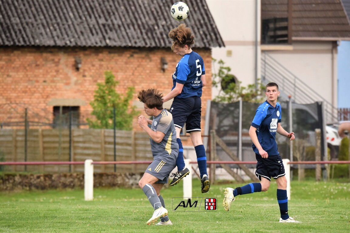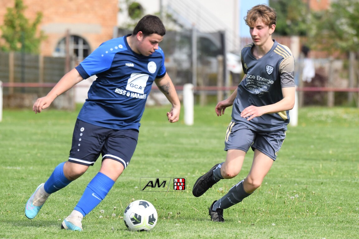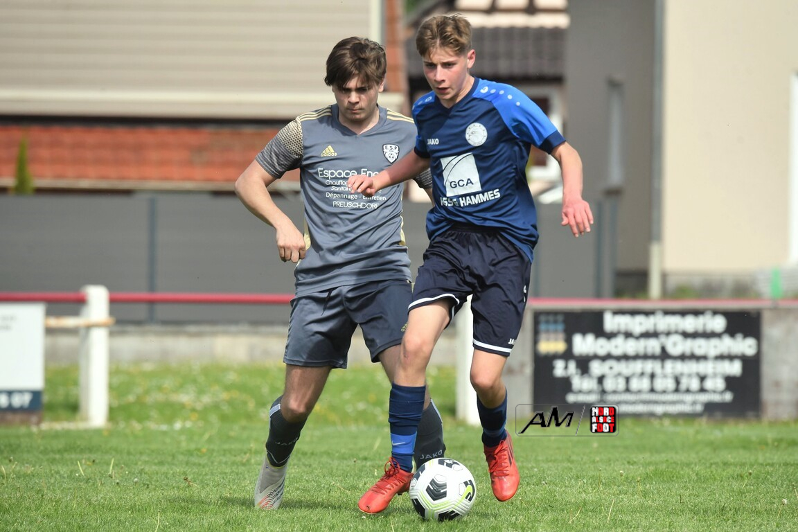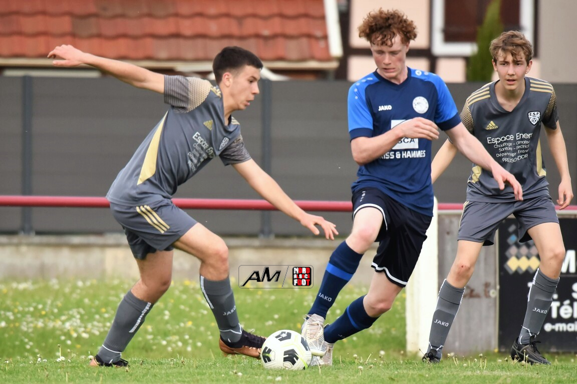 A l’occasion de la huitième journée de championnat de cette phase printanière chez les U18/D3 “Titre” (Groupe B), la Jeunesse de l’UFFRIED (3e) accueillait les doublures de l’entente Sauer/Pechelbronn (11e) avec la ferme intention d’empocher les trois points pouvant éventuellement leur permettre de prendre la seconde place du classement en comptant sur un faux pas de l’US Turcs Bischwiller à Schirrhein. Après une première période se soldant par un court avantage en faveur des locaux grâce à une réalisation signée Meyer Bastien (5e), ces derniers allaient prendre le large en seconde période en ajoutant deux buts au compteur grâce à un doublé de Kasper Tom (47e, 51e) avant qu’ils ne finissent par largement s’imposer sur ce score de 3-0! Retrouvez, ci-dessous, quelques images de cette rencontre et, pour en apprécier le contenu, veuillez cliquer sur l’une d’entre-elles pour afficher le diaporama.