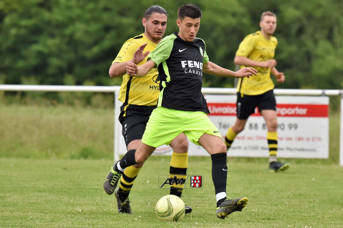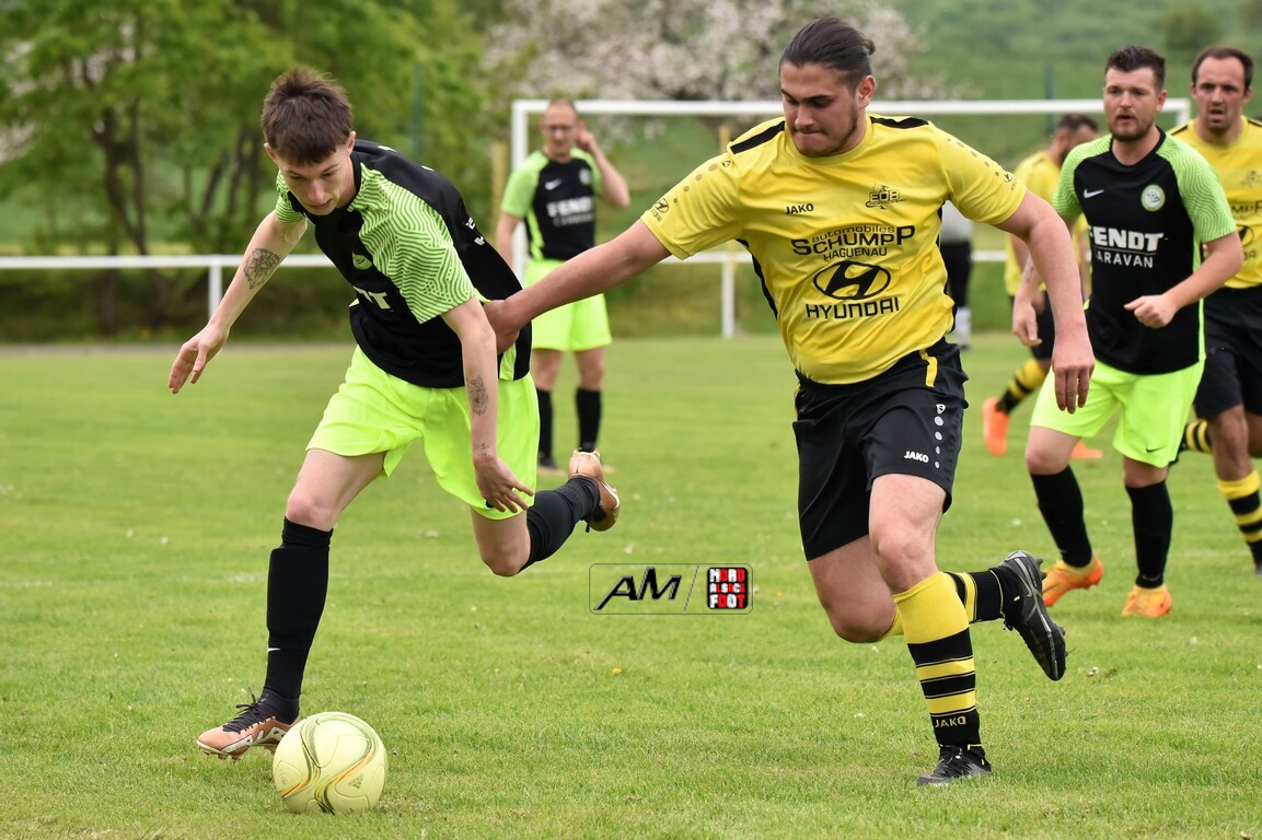 A l’occasion de la dix-huitième journée de championnat en District 4 (Groupe B), l’entente Drachenbronn/Birlenbach (11e) accueillait le FC Lampertsloch/Merkwiller (9e) afin de tenter de remporter ce choc du bas de tableau pouvant leur permettre de sortir de la zone rouge en cas de victoire, et ce, face à des adversaires voulant prendre le large avec cette même zone. Après une première période se soldant par un avantage confortable en faveur des visiteurs grâce à des réalisations signées Schell Joris (8e) et Boury Loïc (35e), les locaux allaient parvenir à réduire la marque à la 56e minute de jeu par l’intermédiaire de Yazar Ertugrul avant que Schell Joris ne fasse le break quatre minutes plus tard, les deux équipes se neutralisant ensuite jusqu’au coup de sifflet final scellant la victoire du FC Lampertsloch/Merkwiller sur ce score de 1-3! Retrouvez, ci-dessous, quelques images de cette rencontre et, pour en apprécier le contenu, veuillez cliquer sur l’une d’entre-elles pour afficher le diaporama.