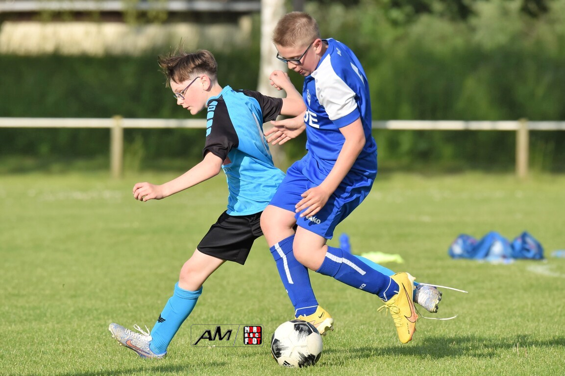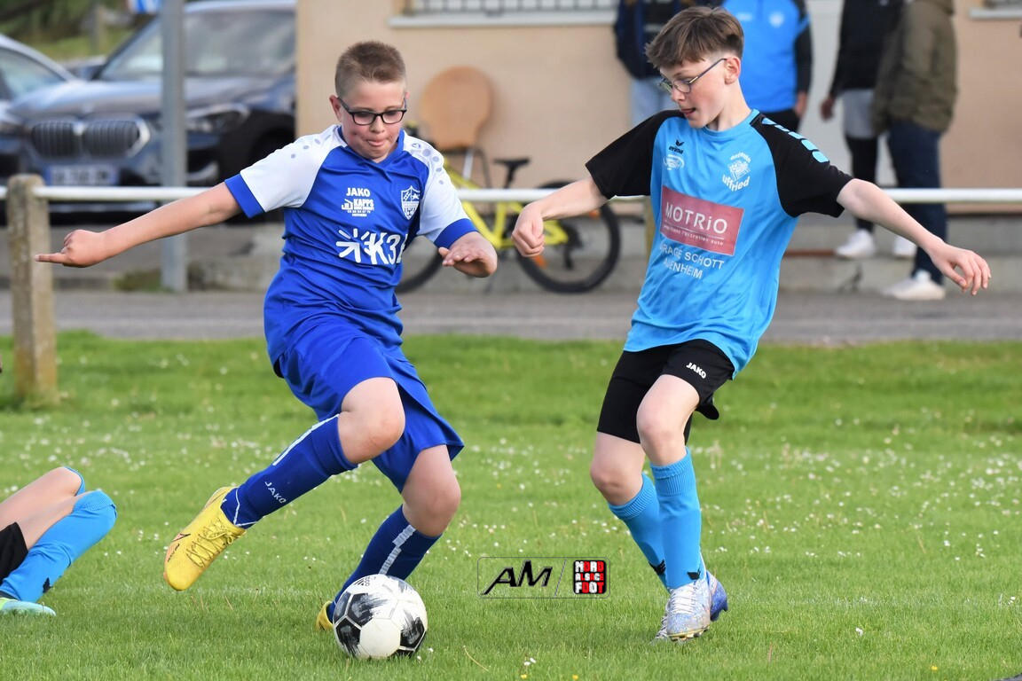A l’occasion d’un match en retard comptant pour la septième journée de championnat chez les U13/D4 (Groupe E), l’entente Munchhausen/ES2M 3 (1er) accueillait les U13-3 de la Jeunesse de l’UFFRIED (6e) avec la ferme intention de demeurer invaincus sur cette phase printanière, et ce, face à des adversaires n’ayant enregistrés aucun point depuis la sortie de l’hiver. Après une première période se soldant par un large avantage en faveur des locaux (3-0), les deux équipes se neutralisèrent tout au long du second acte avant que l’entente Munchhausen/ES2M 3 ne finisse par s’imposer sur ce score de 3-0! Retrouvez, ci-dessous, quelques images de cette rencontre et, pour en apprécier le contenu, veuillez cliquer sur l’une d’entre-elles pour afficher le diaporama.