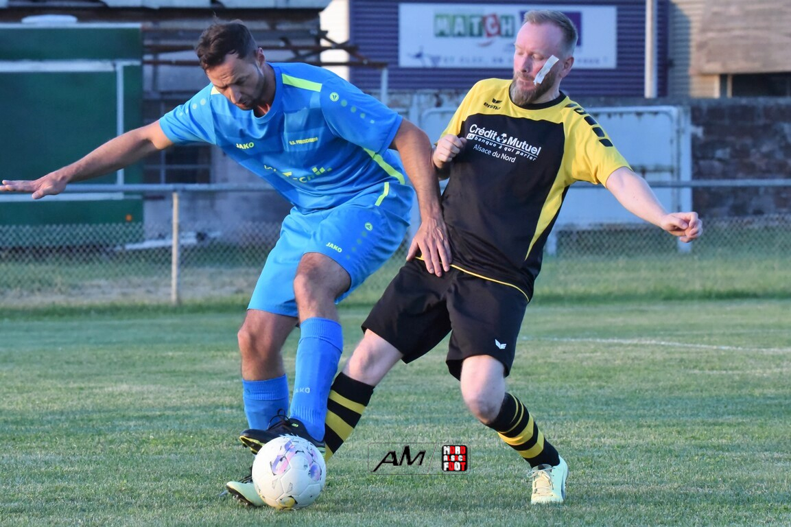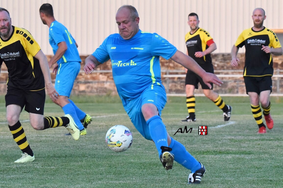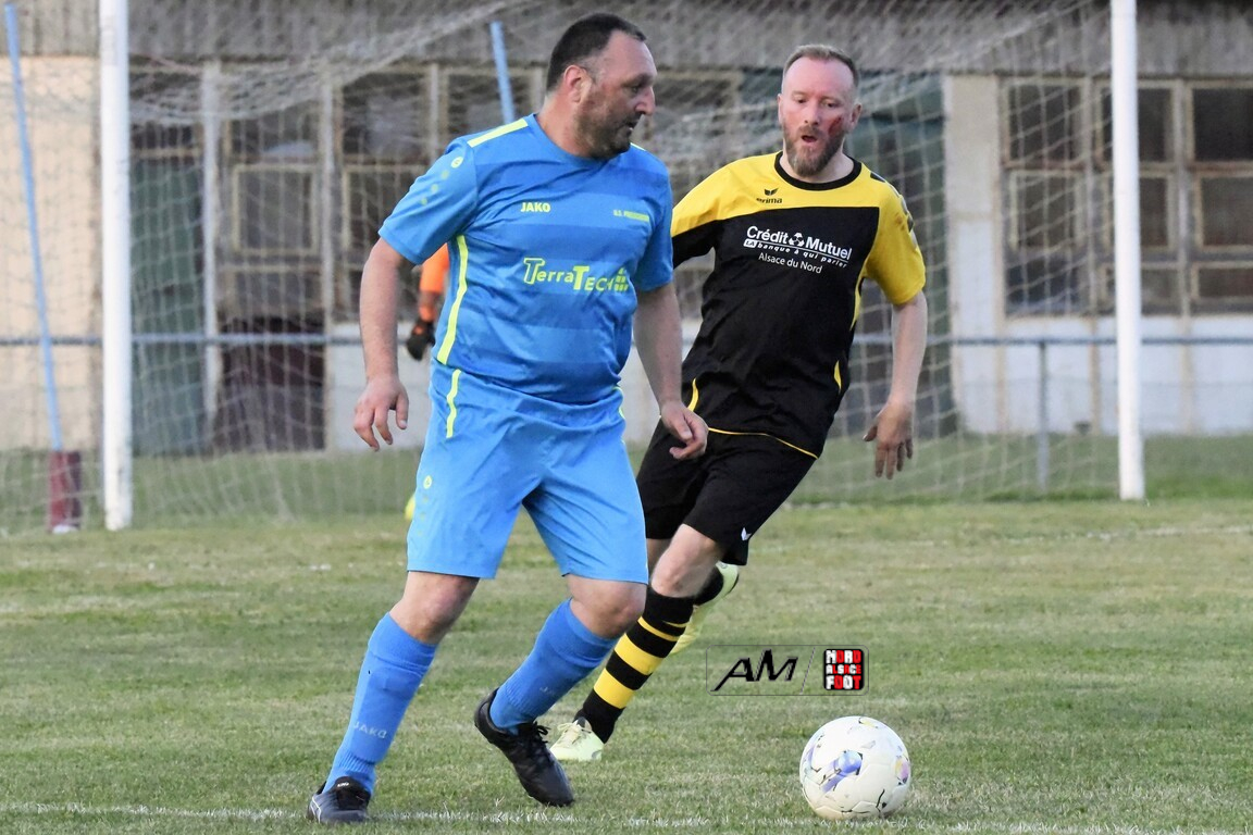 A l’occasion de la quatorzième journée de championnat chez les Vétérans (Groupe D), l’entente Wissembourg/ESTALT 51 (7e) accueillait l’entente Preuschdorf/EPDH 51 (1er) avec la ferme intention de finir la saison sur une note positive, et ce, face à des adversaires jouant le titre ce vendredi alors qu’il leur reste un dernier match à disputer face au FC Langensoultzbach. Après une première période se soldant par un score nul et vierge, les visiteurs ouvrirent le score à la 39e minute de jeu par l’intermédiaire de Le Dreves Guillaume avant qu’ils ne finissent par s’imposer sur le plus petit des scores. Retrouvez, ci-dessous, quelques images de cette rencontre et, pour en apprécier le contenu, veuillez cliquer sur l’une d’entre-elles pour afficher le diaporama.