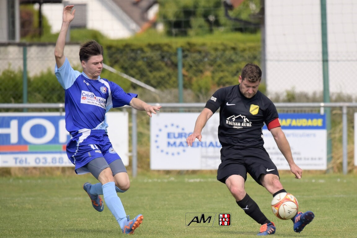 A l’occasion de l’avant-dernière journée de championnat en District 5 (Groupe B), l’US Schleithal 2 (2e) accueillait le FC Durrenbach 2 (3e) afin de tenter de demeurer sur le podium de cette poule en faveur d’une victoire ce dimanche matin, et ce, face à des adversaires qu’ils avaient déjà battus au match aller sur le plus petit des scores. Après une première période se soldant par un score nul et vierge, les visiteurs cueillirent leurs hôtes à froid au retour de la pause avec l’ouverture du score signée Laurent Anthony (46e) mais les hommes de Pfend Jean-Bernard allaient parvenir à égaliser à la 67e minute de jeu par l’intermédiaire de Konadu Jeffrey avant que les visiteurs ne reprennent définitivement l’avantage grâce à un doublé de Laurent Anthony (81e). Retrouvez, ci-dessous, quelques images de cette rencontre et, pour en apprécier le contenu, veuillez cliquer sur l’une d’entre-elles pour afficher le diaporama.
