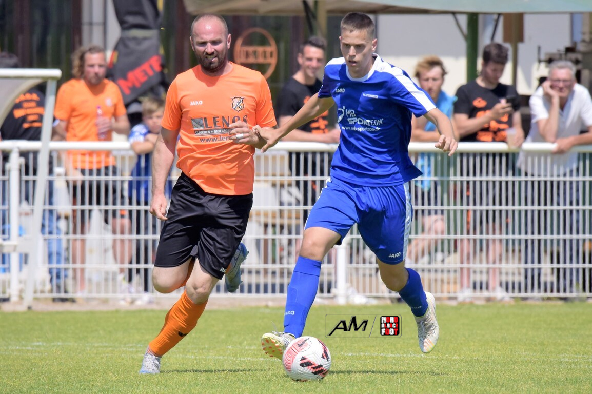 A l’occasion de la dernière journée de championnat en District 3 (Groupe B), l’US Oberlauterbach 3 (9e) accueillait le FC Steinseltz 2 (6e) avec la ferme intention de s’adjuger une victoire ce dimanche matin afin de rester maîtres de leur destin alors que l’opération maintien entre la 9e et la 12e place se jouait dans un mouchoir de poche. Après une première période se soldant par un avantage confortable en faveur des locaux grâce à des réalisations signées Savy Yoann (9e) et Schauer Mickaël (36e), ce dernier allait s’offrir un doublé à la 51e minute de jeu avant que Kern Nicolas n’ajoute un quatrième but au compteur à la 54e minute de jeu et, à l’entame du dernier quart d’heure de jeu, les doublures steinseltzoises allaient sauver leur honneur grâce à un but signé Schaffner Olivier, cette réalisation n’empêchant toutefois pas les “Oranges” de valider leur maintien avant les rencontres de l’après-midi. Retrouvez, ci-dessous, quelques images de cette rencontre et, pour en apprécier le contenu, veuillez cliquer sur l’une d’entre-elles pour afficher le diaporama.
