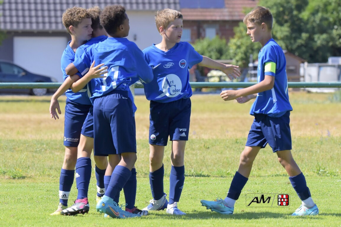 Le FCSR Haguenau (en bleu) s'adjugea l'édition 2023 du Challenge Jean-Marc Schneider - Photo NAF