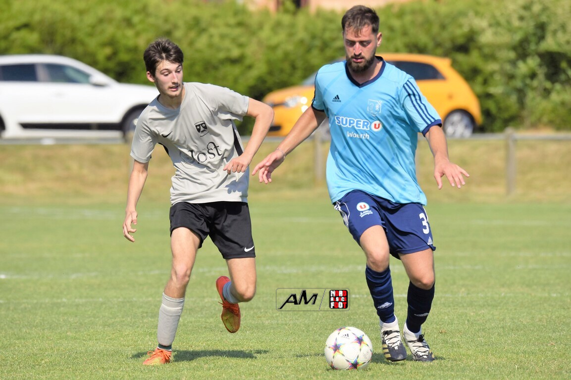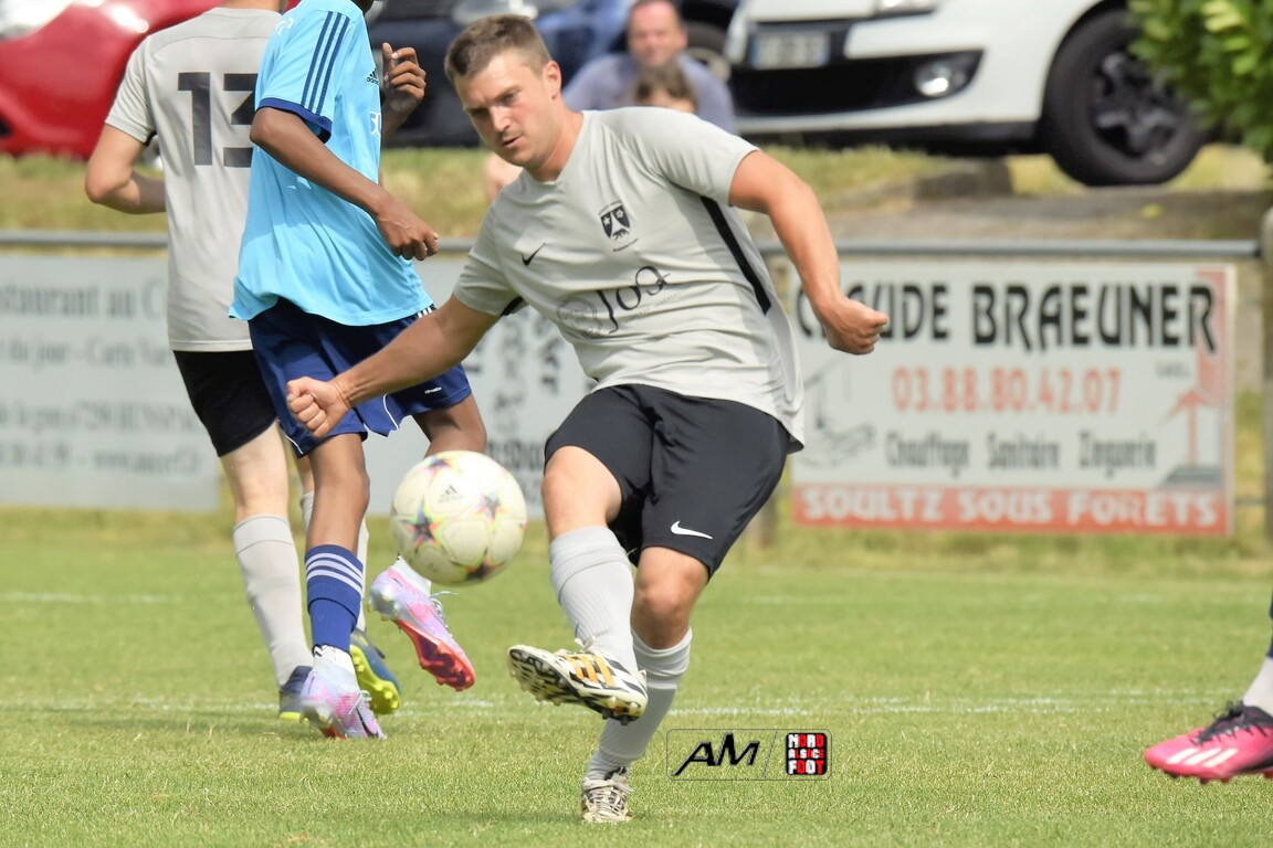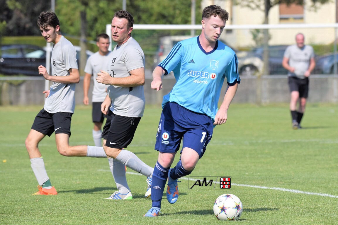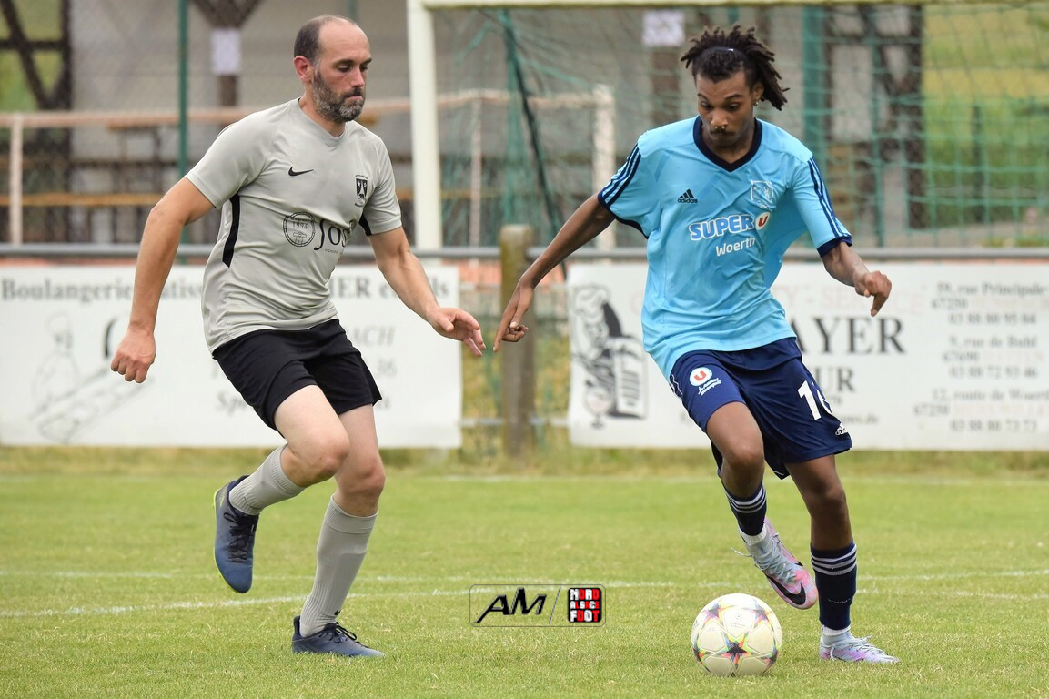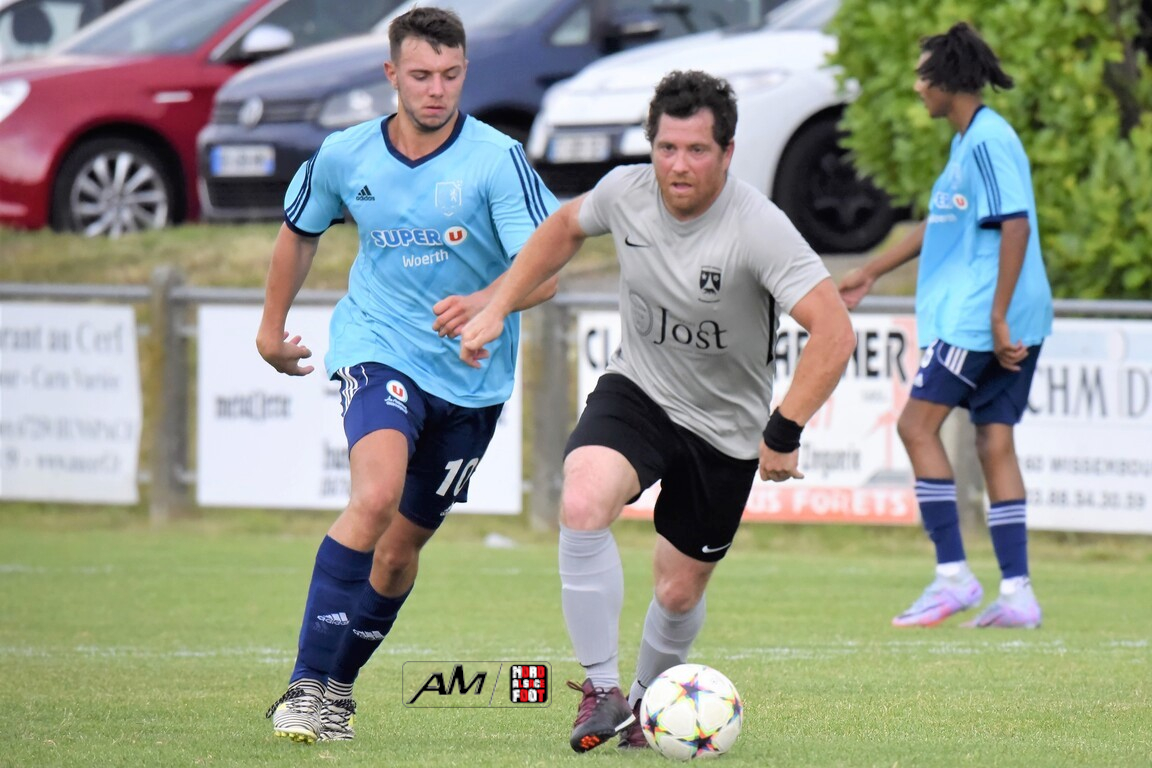 A l’occasion du 75e anniversaire de l’AS Hunspach, l’AS Woerth (promu en D3) affrontait le SR Baerenthal (D3 Mosellane) afin de tenter de débuter leur préparation par un premier succès. Après une première période se soldant par un large avantage en faveur des protégés de Lienhardt Michel grâce à des réalisations signées Roberto Joshua (11e, 27e), Halter Bryan (19e, 23e), Schweitzer Nathan (35e) et Leon Nicolas (37e), les Mosellans allaient réduire la marque grâce à un penalty transformé par Leglat Nicolas (50e) avant que les Woerthois ne corsent l’addition à cinq reprises par l’intermédiaire de Grisez Julien (59e), de Grisez Benjamin (65e), de Schweitzer Nathan (73e), de Roberto Joshua (84e) et de Leon Nicolas (86e), ces derniers finissant finalement par s’imposer sur ce score sans appel de 11-1! Retrouvez, ci-dessous, quelques images de cette rencontre et, pour en apprécier le contenu, veuillez cliquer sur l’une d’entre-elles pour afficher le diaporama.