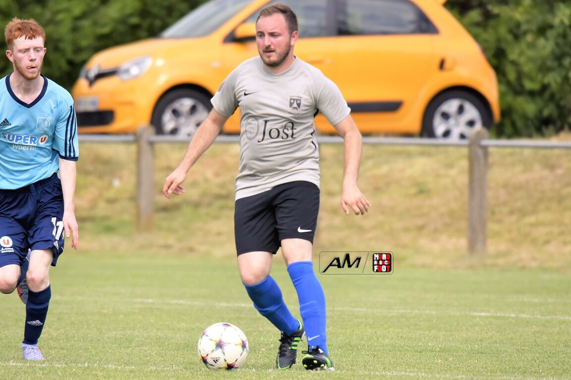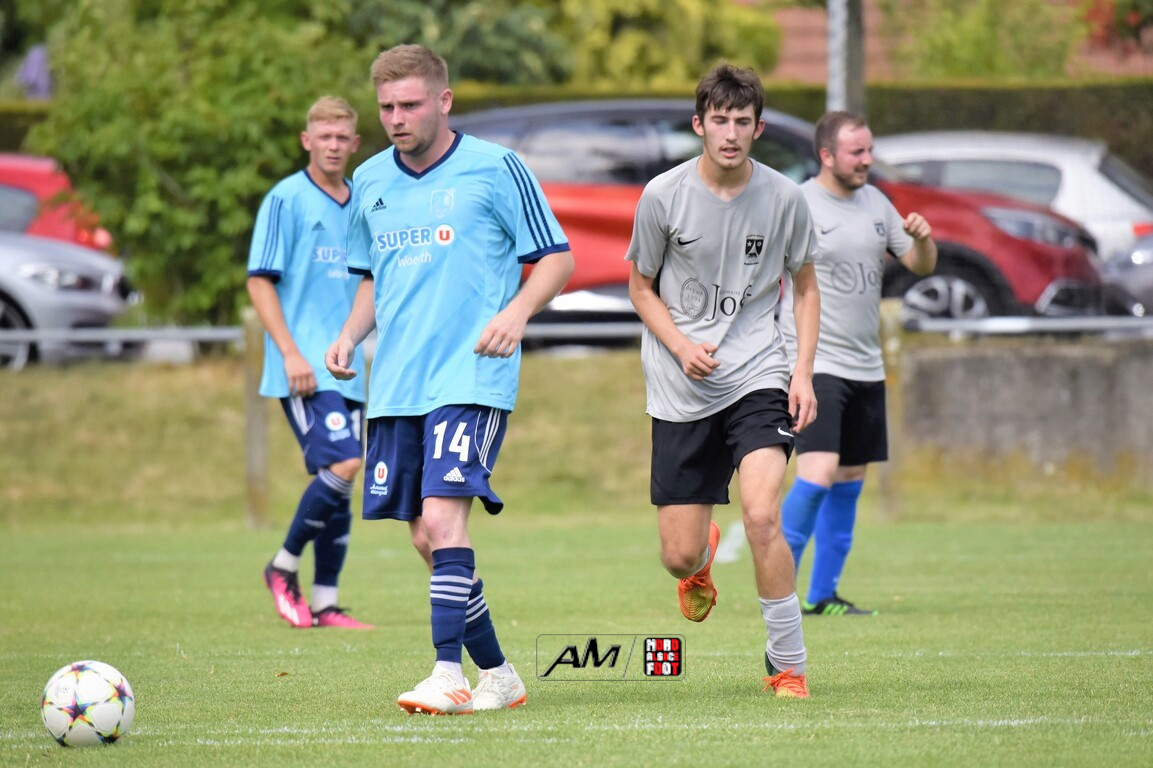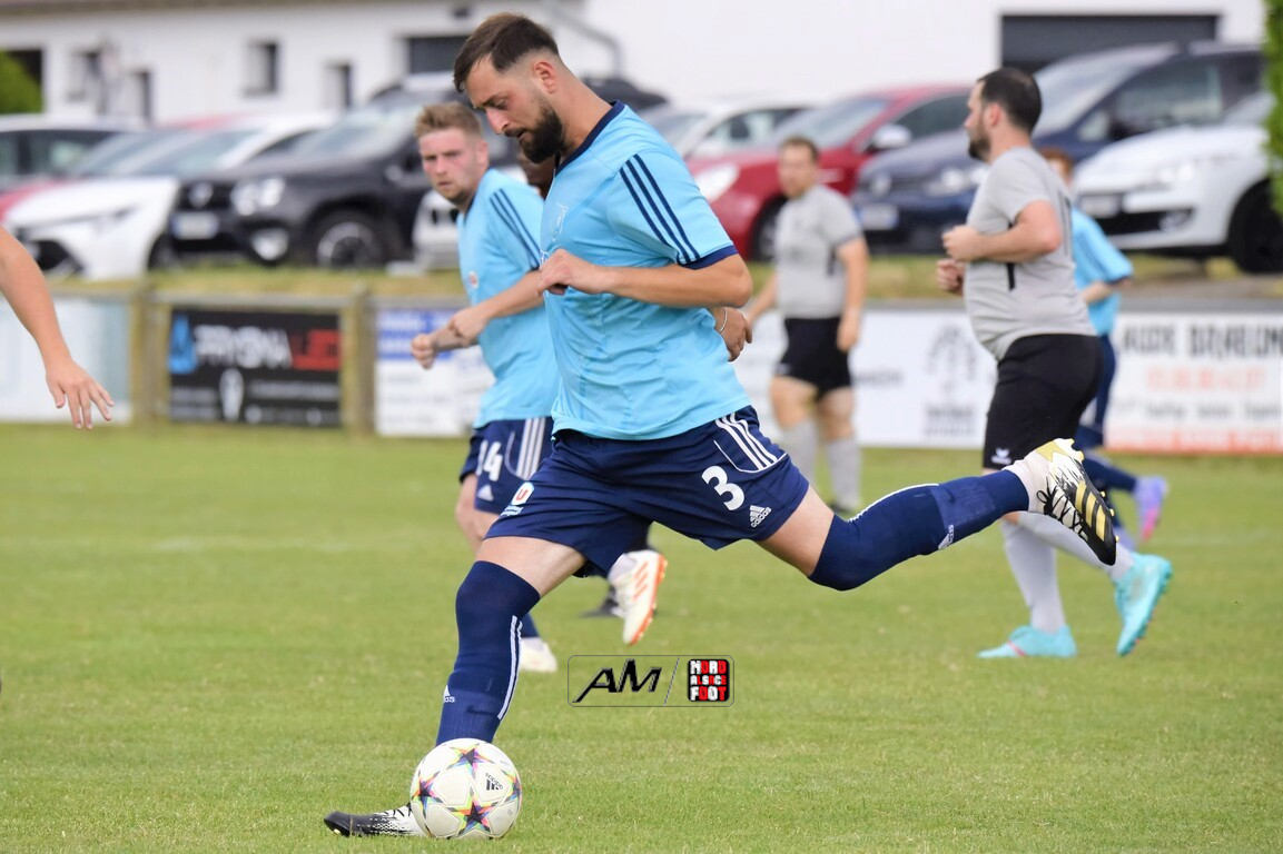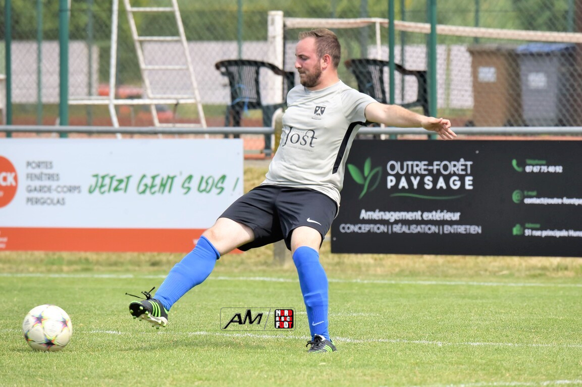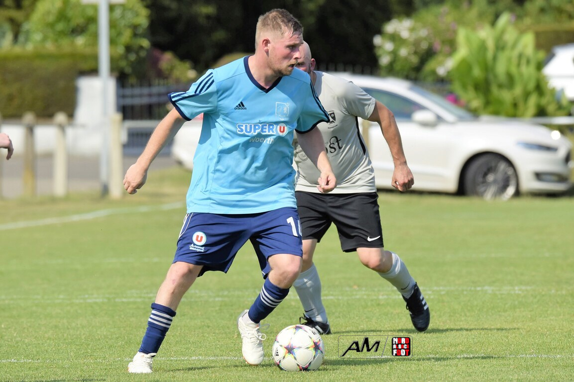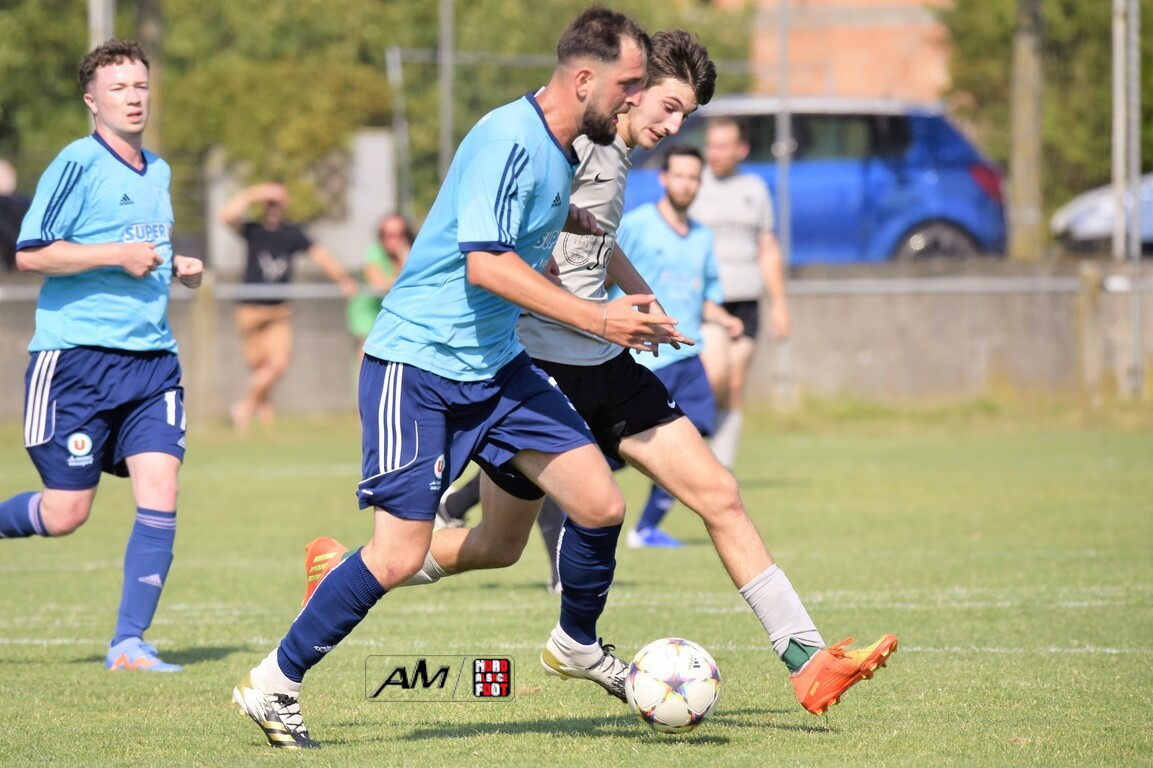 A l’occasion du 75e anniversaire de l’AS Hunspach, l’AS Woerth (promu en D3) affrontait le SR Baerenthal (D3 Mosellane) afin de tenter de débuter leur préparation par un premier succès. Après une première période se soldant par un large avantage en faveur des protégés de Lienhardt Michel grâce à des réalisations signées Roberto Joshua (11e, 27e), Halter Bryan (19e, 23e), Schweitzer Nathan (35e) et Leon Nicolas (37e), les Mosellans allaient réduire la marque grâce à un penalty transformé par Leglat Nicolas (50e) avant que les Woerthois ne corsent l’addition à cinq reprises par l’intermédiaire de Grisez Julien (59e), de Grisez Benjamin (65e), de Schweitzer Nathan (73e), de Roberto Joshua (84e) et de Leon Nicolas (86e), ces derniers finissant finalement par s’imposer sur ce score sans appel de 11-1! Retrouvez, ci-dessous, quelques images de cette rencontre et, pour en apprécier le contenu, veuillez cliquer sur l’une d’entre-elles pour afficher le diaporama.