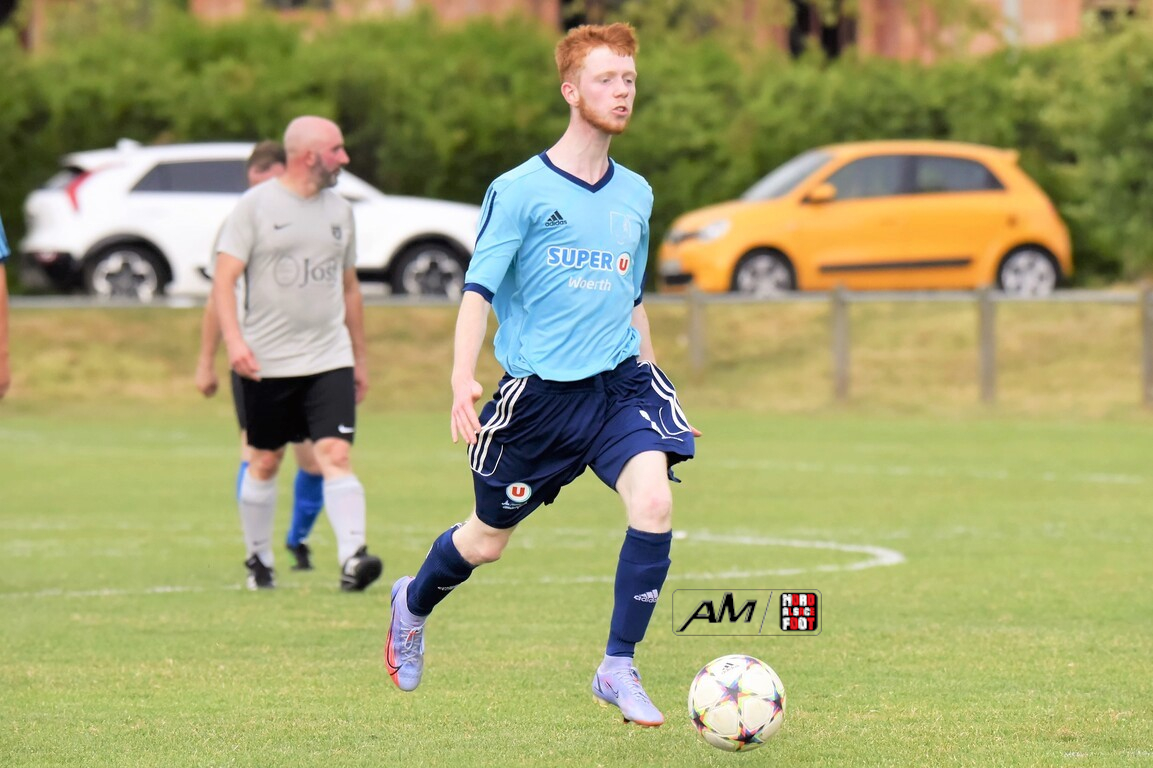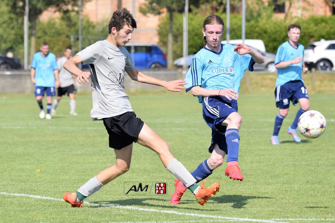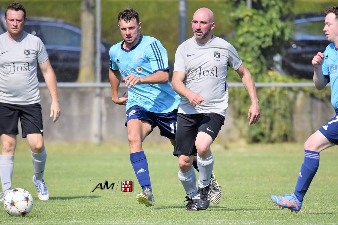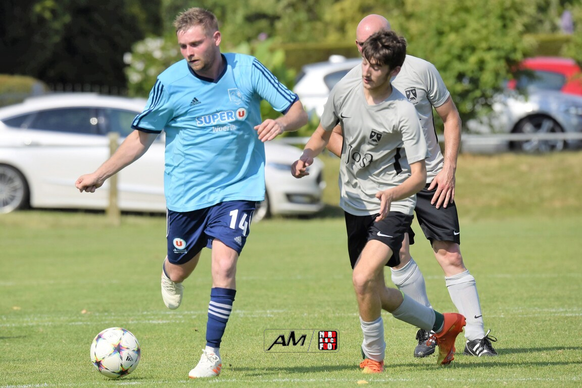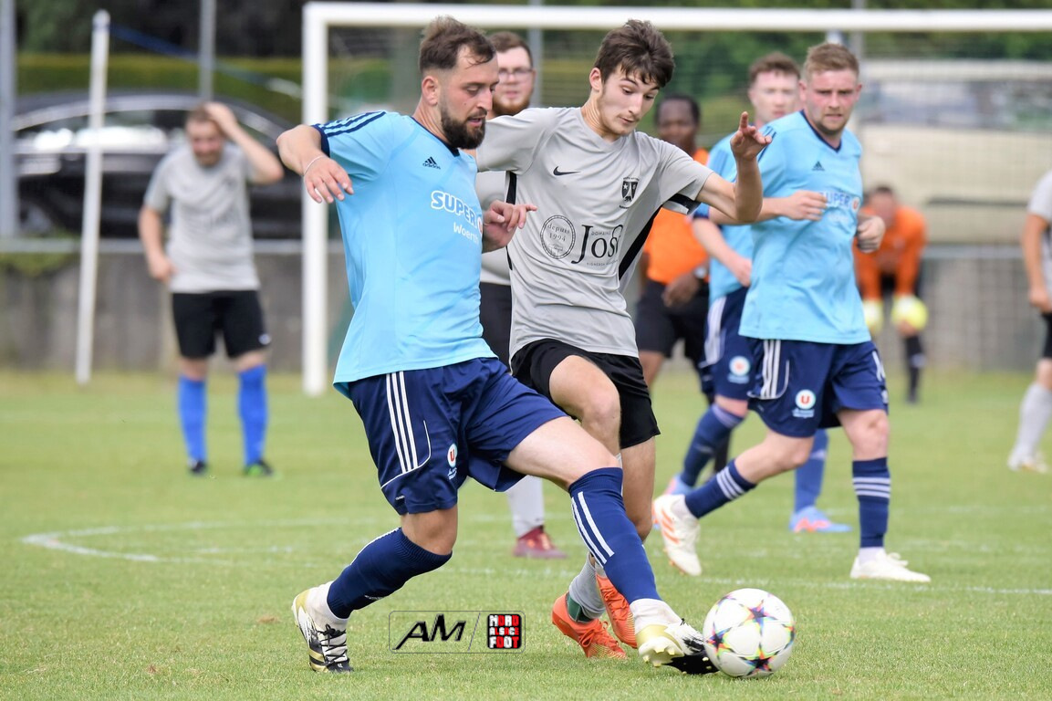 A l’occasion du 75e anniversaire de l’AS Hunspach, l’AS Woerth (promu en D3) affrontait le SR Baerenthal (D3 Mosellane) afin de tenter de débuter leur préparation par un premier succès. Après une première période se soldant par un large avantage en faveur des protégés de Lienhardt Michel grâce à des réalisations signées Roberto Joshua (11e, 27e), Halter Bryan (19e, 23e), Schweitzer Nathan (35e) et Leon Nicolas (37e), les Mosellans allaient réduire la marque grâce à un penalty transformé par Leglat Nicolas (50e) avant que les Woerthois ne corsent l’addition à cinq reprises par l’intermédiaire de Grisez Julien (59e), de Grisez Benjamin (65e), de Schweitzer Nathan (73e), de Roberto Joshua (84e) et de Leon Nicolas (86e), ces derniers finissant finalement par s’imposer sur ce score sans appel de 11-1! Retrouvez, ci-dessous, quelques images de cette rencontre et, pour en apprécier le contenu, veuillez cliquer sur l’une d’entre-elles pour afficher le diaporama.