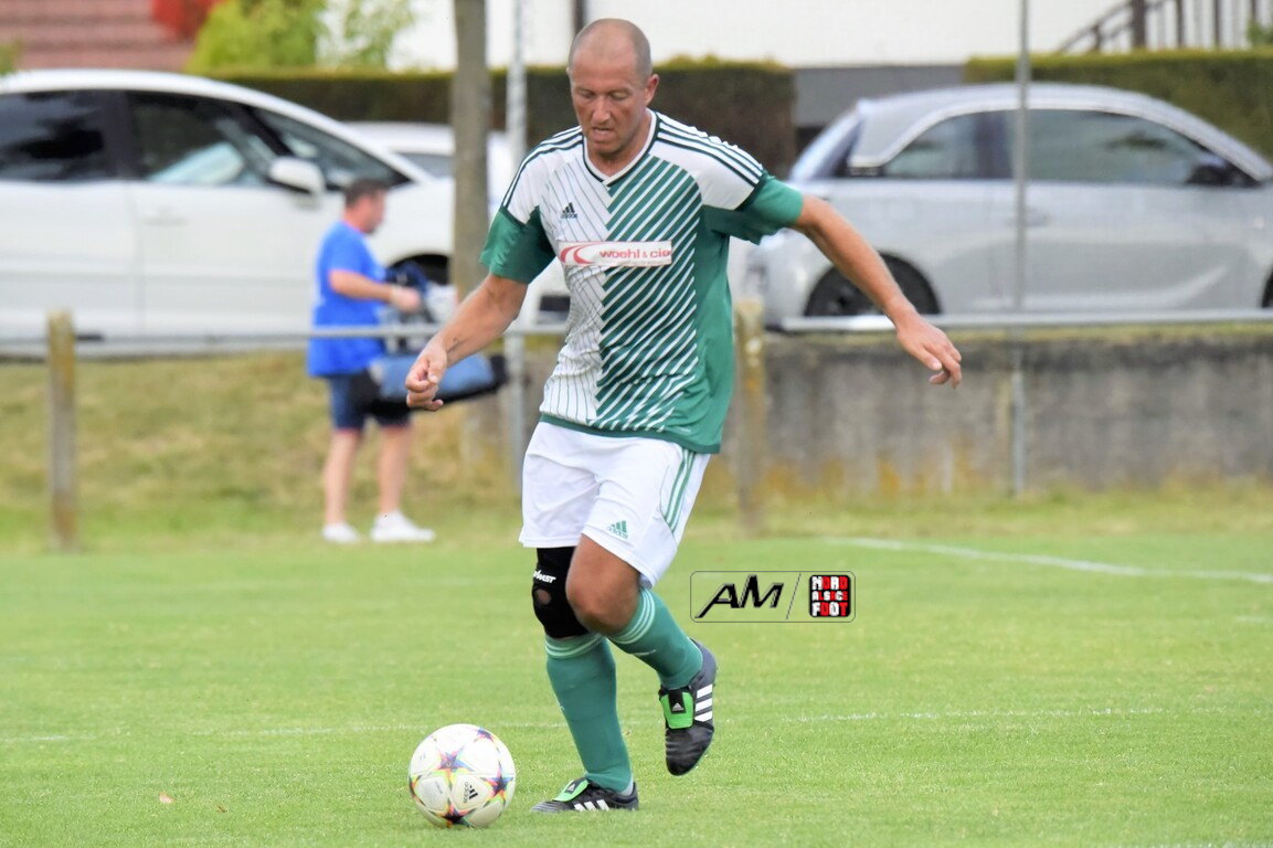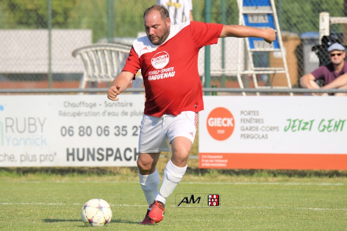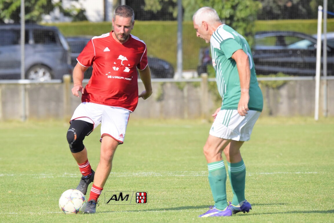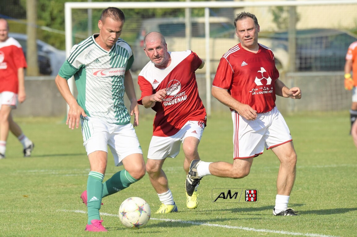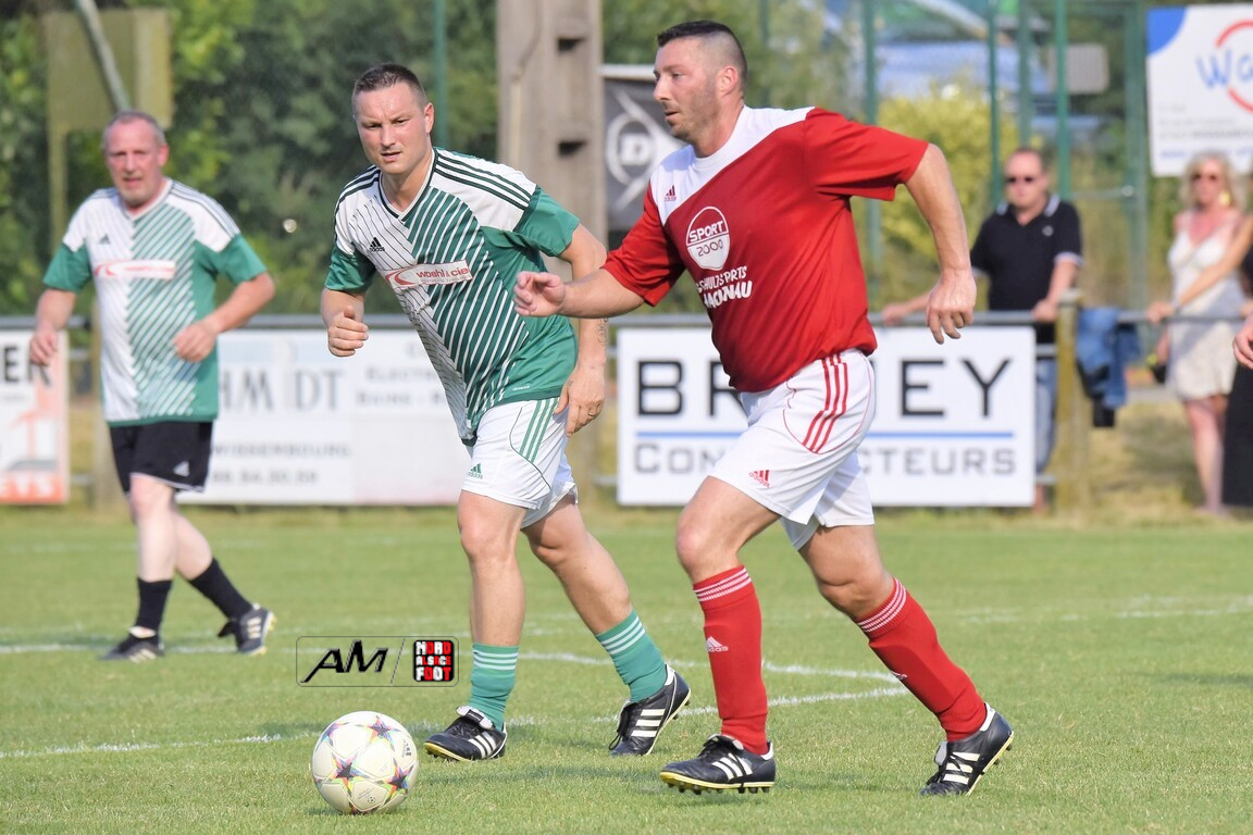 A l’occasion du 75e anniversaire de l’AS Hunspach, les anciennes gloires du club se sont données rendez-vous au Stade Municipal afin de se disputer un match des légendes devant un public ayant répondu présent pour cet évènement. Après une première période se soldant par un score de parité (1-1), les rouges allaient mener par deux buts d’écart à la 38e minute de jeu avant que les verts ne renverse le cours du match en parvenant à égaliser à la 43e minute de jeu avant qu’ils ne finissent par mener la danse en prenant deux buts d’avance à la 50e minute de jeu, les deux formations se neutralisant ensuite jusqu’au terme de la rencontre, les coéquipiers de Schorn Eric finissant donc par s’imposer sur ce score de 5-3! Retrouvez, ci-dessous, quelques images de cette rencontre et, pour en apprécier le contenu, veuillez cliquer sur l’une d’entre-elles pour afficher le diaporama.