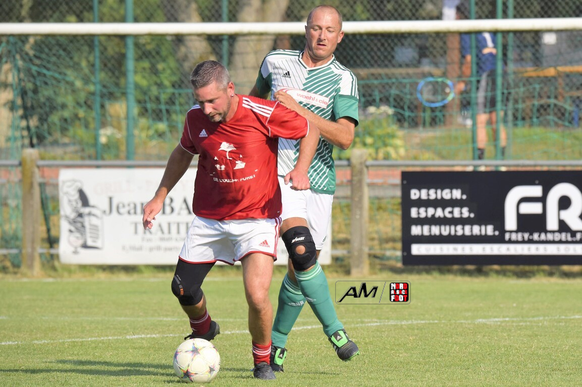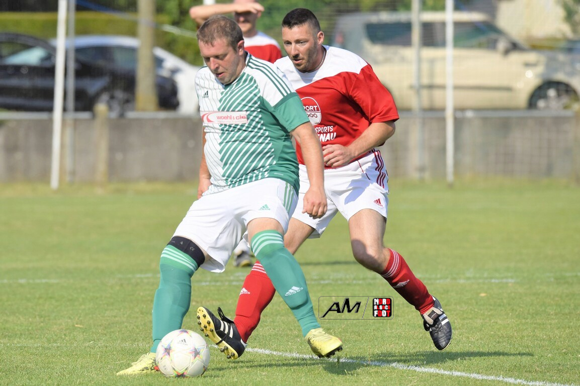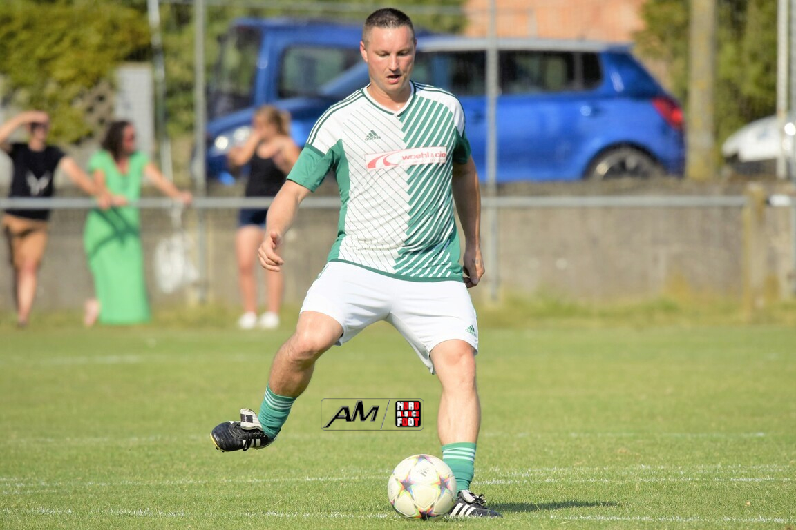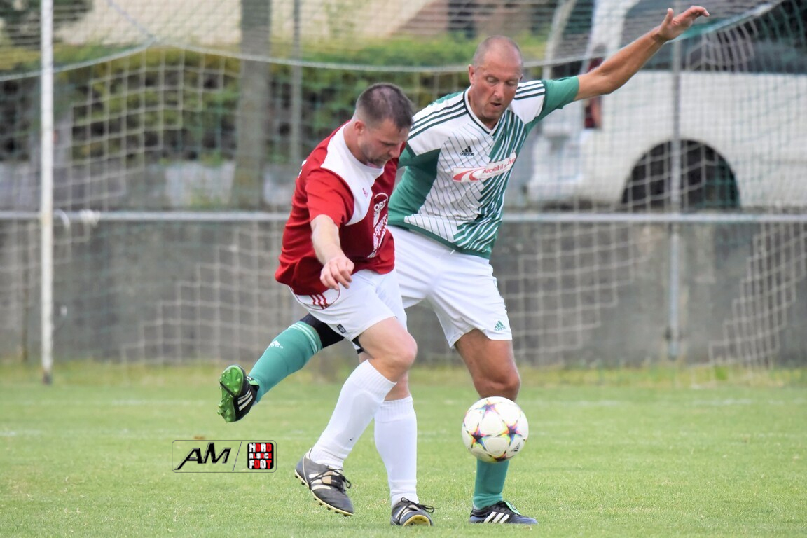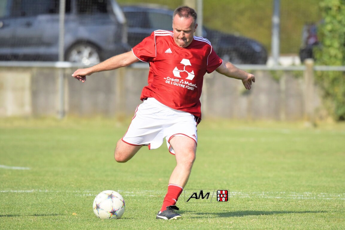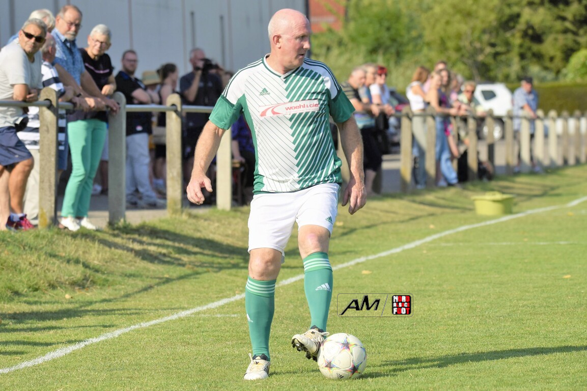 A l’occasion du 75e anniversaire de l’AS Hunspach, les anciennes gloires du club se sont données rendez-vous au Stade Municipal afin de se disputer un match des légendes devant un public ayant répondu présent pour cet évènement. Après une première période se soldant par un score de parité (1-1), les rouges allaient mener par deux buts d’écart à la 38e minute de jeu avant que les verts ne renverse le cours du match en parvenant à égaliser à la 43e minute de jeu avant qu’ils ne finissent par mener la danse en prenant deux buts d’avance à la 50e minute de jeu, les deux formations se neutralisant ensuite jusqu’au terme de la rencontre, les coéquipiers de Schorn Eric finissant donc par s’imposer sur ce score de 5-3! Retrouvez, ci-dessous, quelques images de cette rencontre et, pour en apprécier le contenu, veuillez cliquer sur l’une d’entre-elles pour afficher le diaporama.