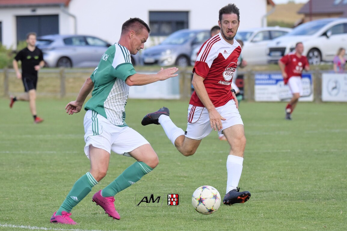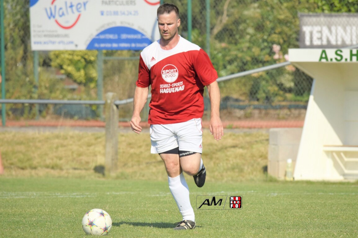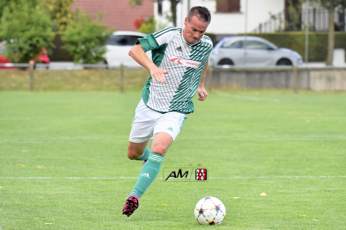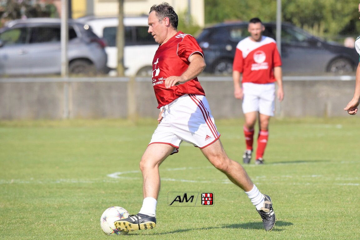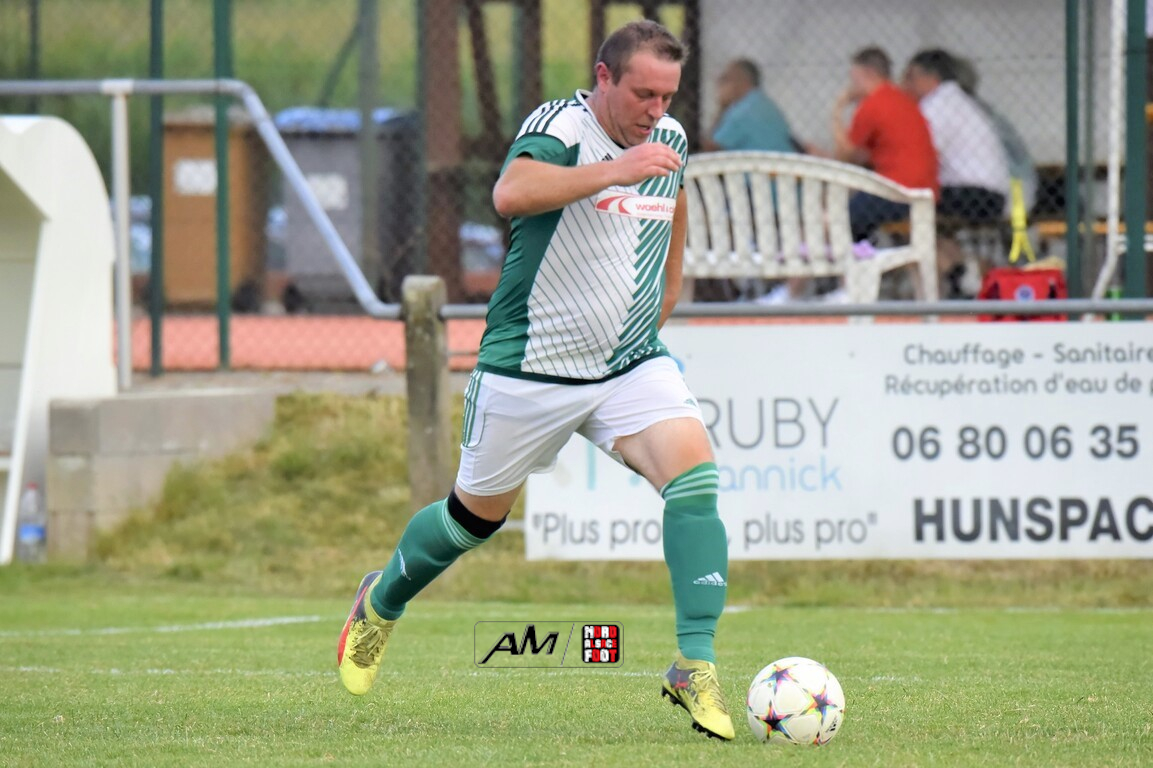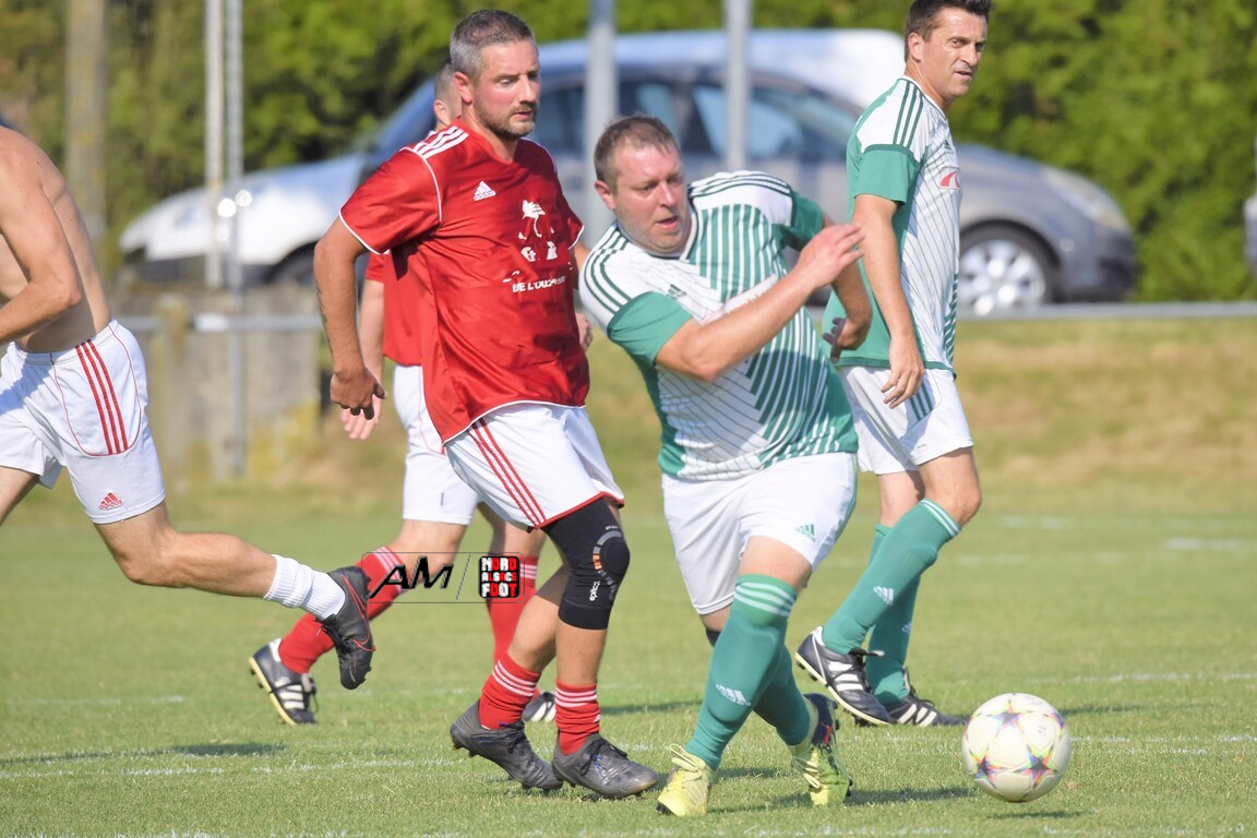 A l’occasion du 75e anniversaire de l’AS Hunspach, les anciennes gloires du club se sont données rendez-vous au Stade Municipal afin de se disputer un match des légendes devant un public ayant répondu présent pour cet évènement. Après une première période se soldant par un score de parité (1-1), les rouges allaient mener par deux buts d’écart à la 38e minute de jeu avant que les verts ne renverse le cours du match en parvenant à égaliser à la 43e minute de jeu avant qu’ils ne finissent par mener la danse en prenant deux buts d’avance à la 50e minute de jeu, les deux formations se neutralisant ensuite jusqu’au terme de la rencontre, les coéquipiers de Schorn Eric finissant donc par s’imposer sur ce score de 5-3! Retrouvez, ci-dessous, quelques images de cette rencontre et, pour en apprécier le contenu, veuillez cliquer sur l’une d’entre-elles pour afficher le diaporama.