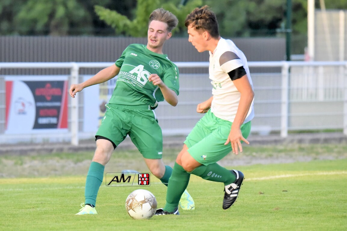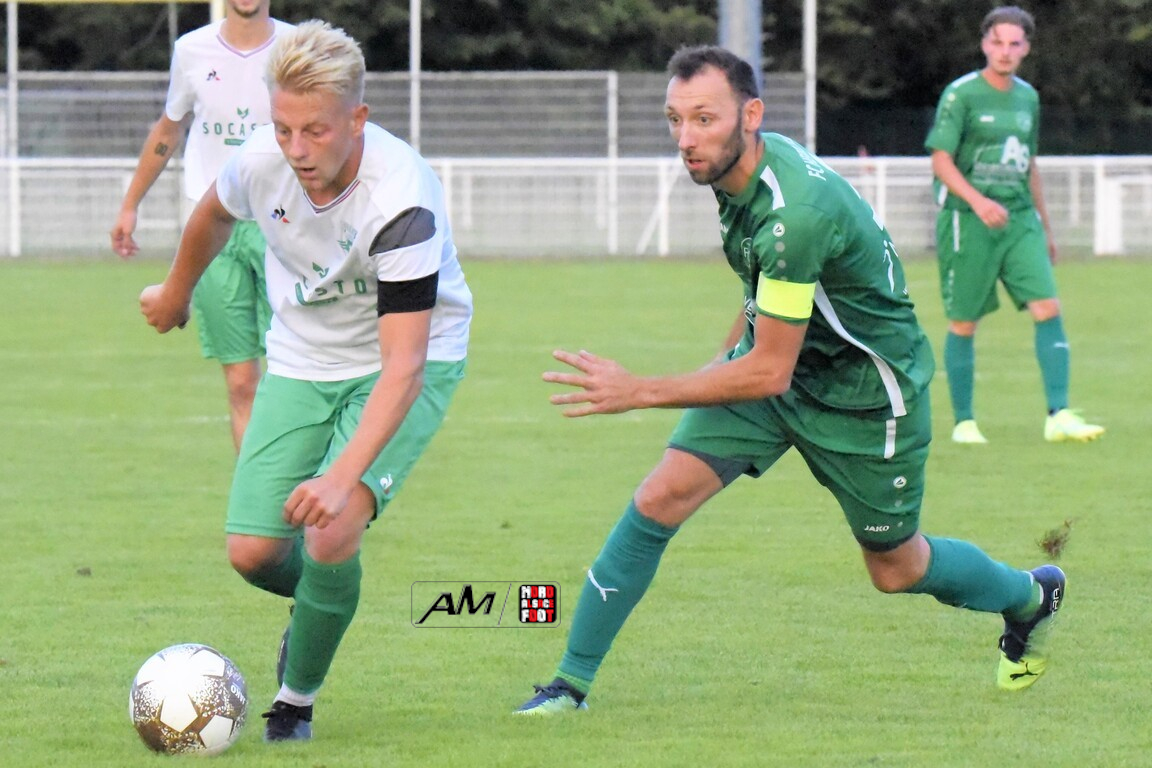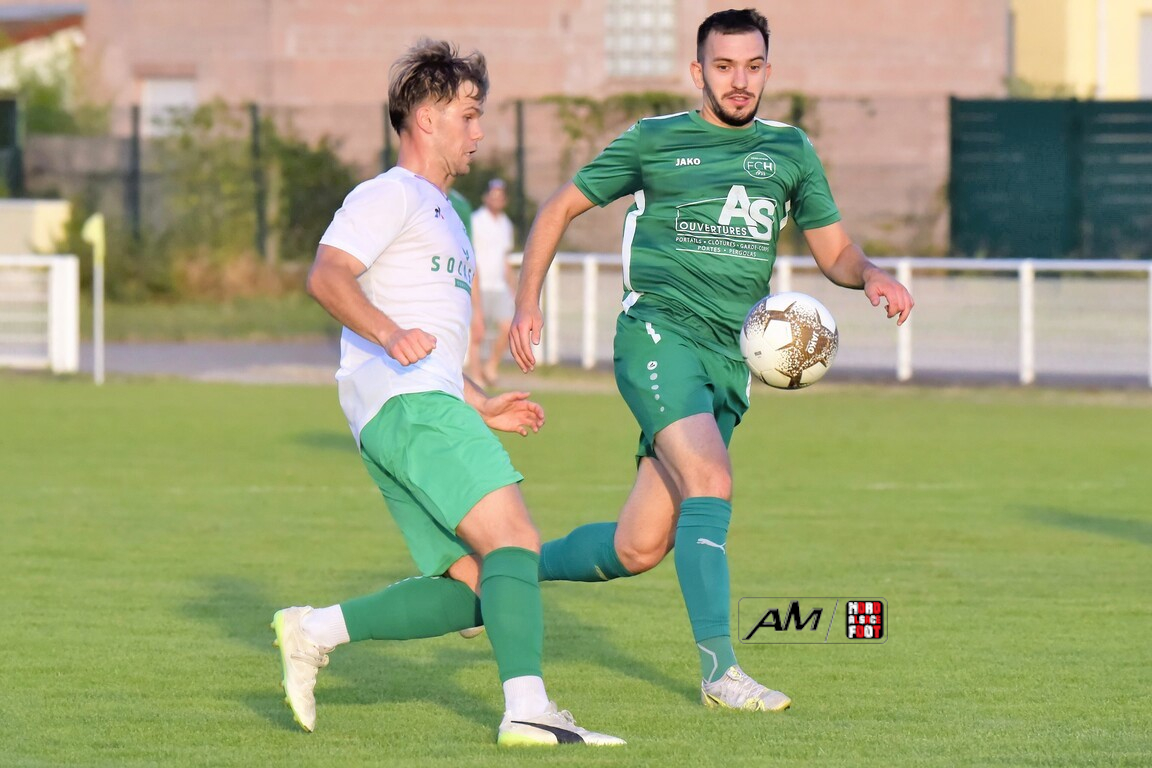 A l’occasion de la première soirée du “foot en fête” organisé par le FC Seltz, l’équipe fanion du club (Régionale 3) affrontait le FC Herrlisheim (District 1) pour la première de Loison Nicolas en qualité d’entraîneur du FC Seltz. Après une première période se soldant par un avantage confortable en faveur des locaux grâce à des réalisations signées Kraemer Loïc (2e) et Zacher Léon (18e), les visiteurs allaient réduire la marque peu de temps après le retour de la pause par l’intermédiaire de Barabinot Hugo (49e) avant que les locaux ne finissent par prendre le large en ajoutant quatre buts au compteur par l’intermédiaire de Schweigkart Arnaud (54e), de Moog Alexis (60e sp, 65e) et de Stoltz Thomas (67e), ces derniers finissant donc par largement s’imposer sur ce score de 6-1! Retrouvez, ci-dessous, quelques images de cette rencontre et, pour en apprécier le contenu, veuillez cliquer sur l’une d’entre-elles pour afficher le diaporama.
