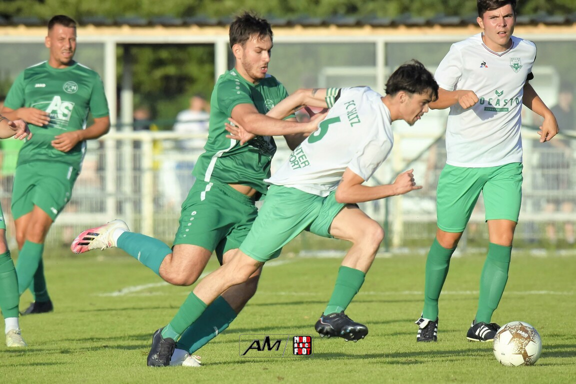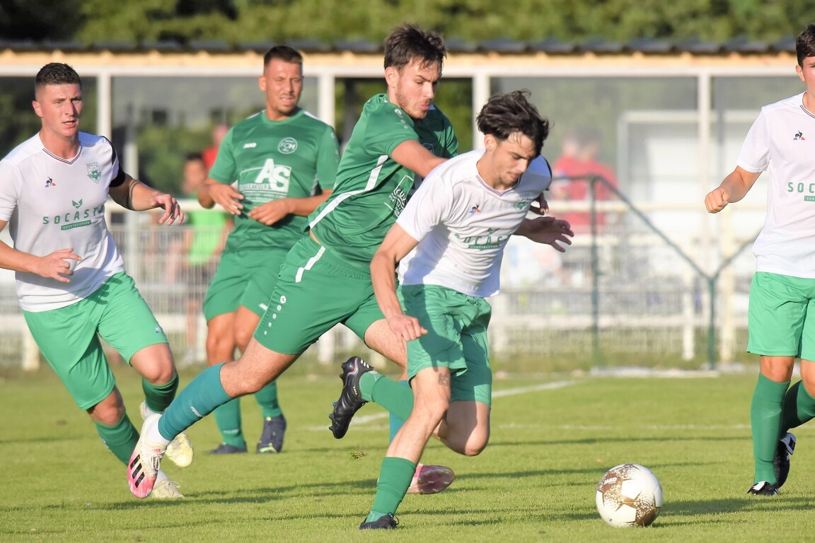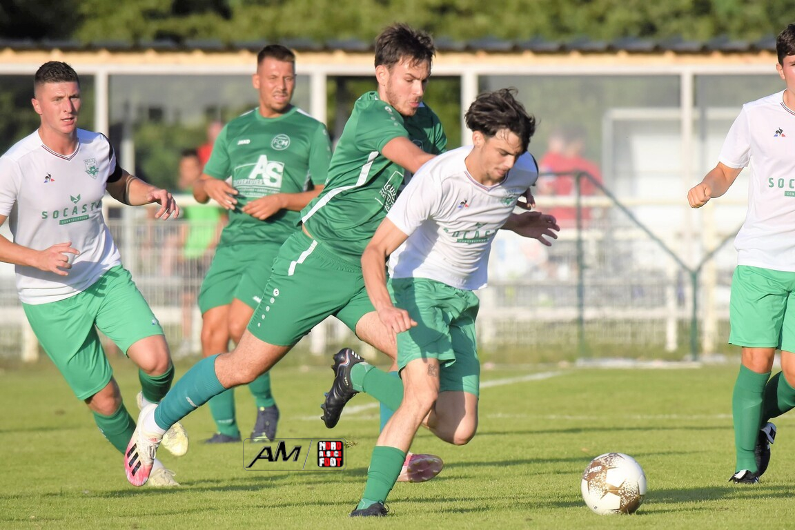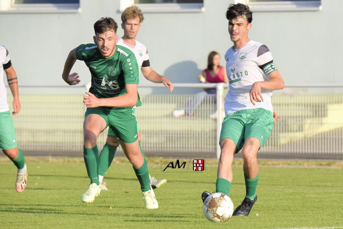A l’occasion de la première soirée du “foot en fête” organisé par le FC Seltz, l’équipe fanion du club (Régionale 3) affrontait le FC Herrlisheim (District 1) pour la première de Loison Nicolas en qualité d’entraîneur du FC Seltz. Après une première période se soldant par un avantage confortable en faveur des locaux grâce à des réalisations signées Kraemer Loïc (2e) et Zacher Léon (18e), les visiteurs allaient réduire la marque peu de temps après le retour de la pause par l’intermédiaire de Barabinot Hugo (49e) avant que les locaux ne finissent par prendre le large en ajoutant quatre buts au compteur par l’intermédiaire de Schweigkart Arnaud (54e), de Moog Alexis (60e sp, 65e) et de Stoltz Thomas (67e), ces derniers finissant donc par largement s’imposer sur ce score de 6-1! Retrouvez, ci-dessous, quelques images de cette rencontre et, pour en apprécier le contenu, veuillez cliquer sur l’une d’entre-elles pour afficher le diaporama.