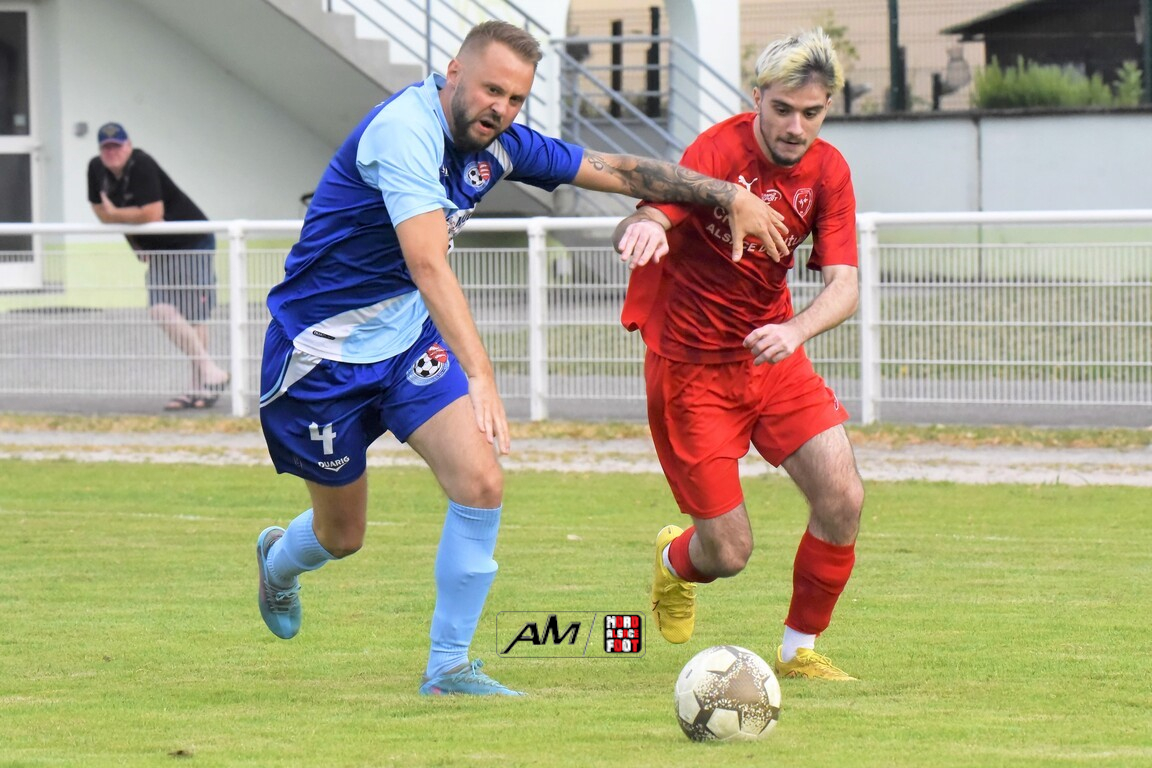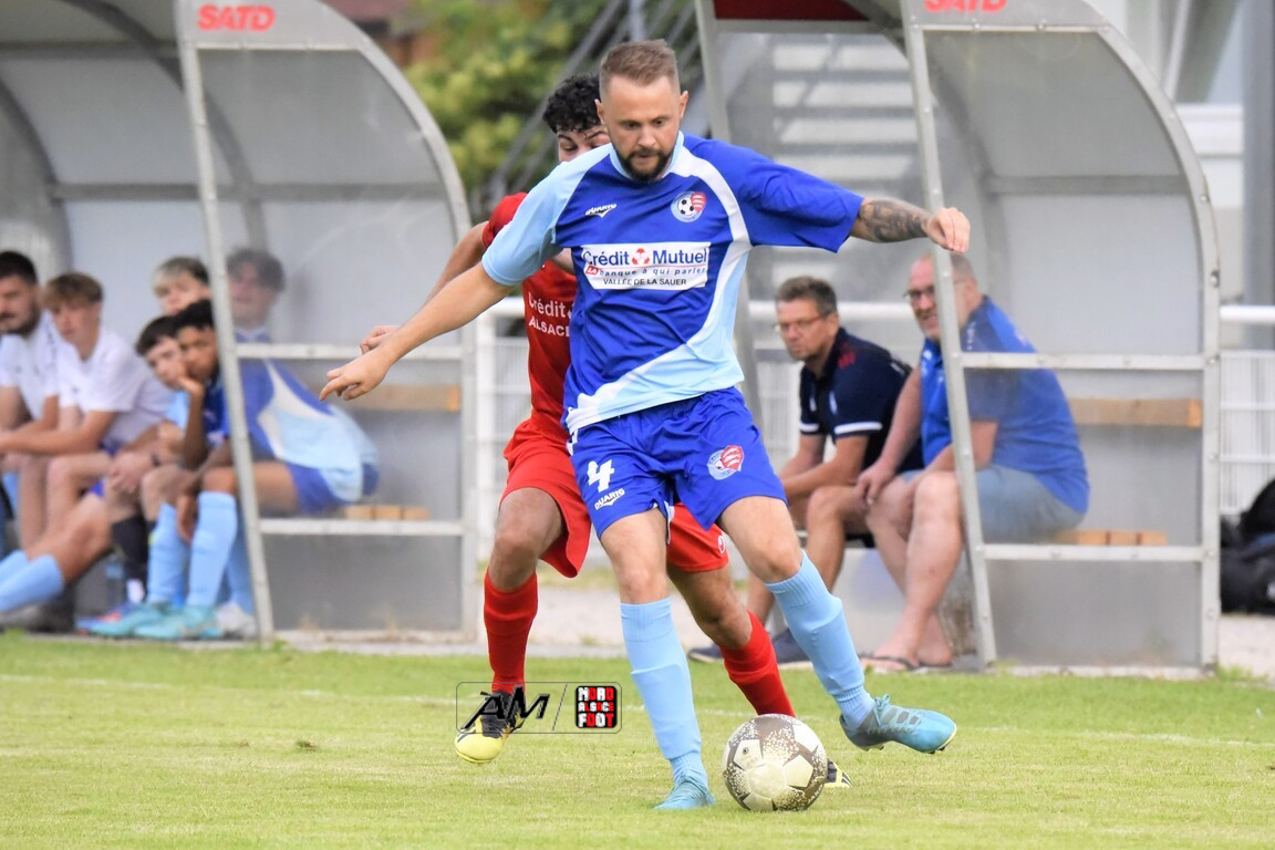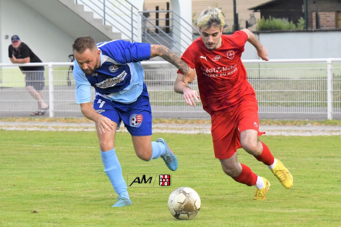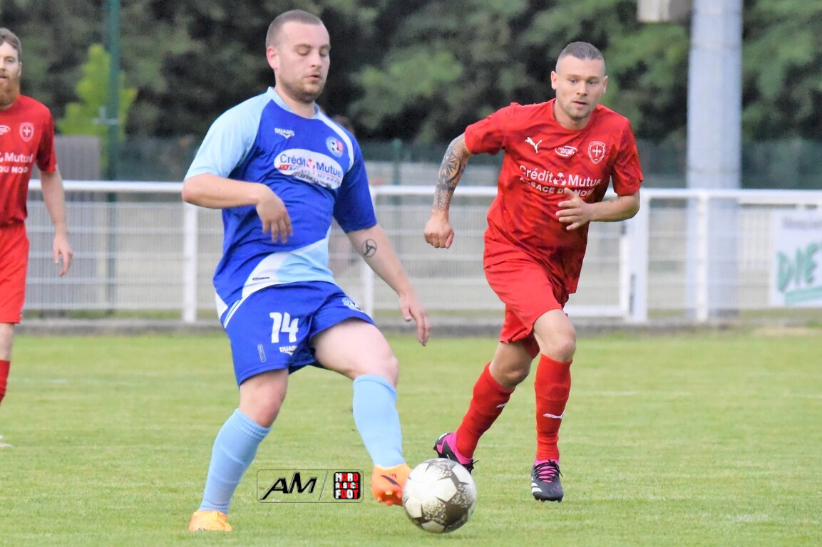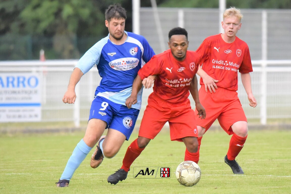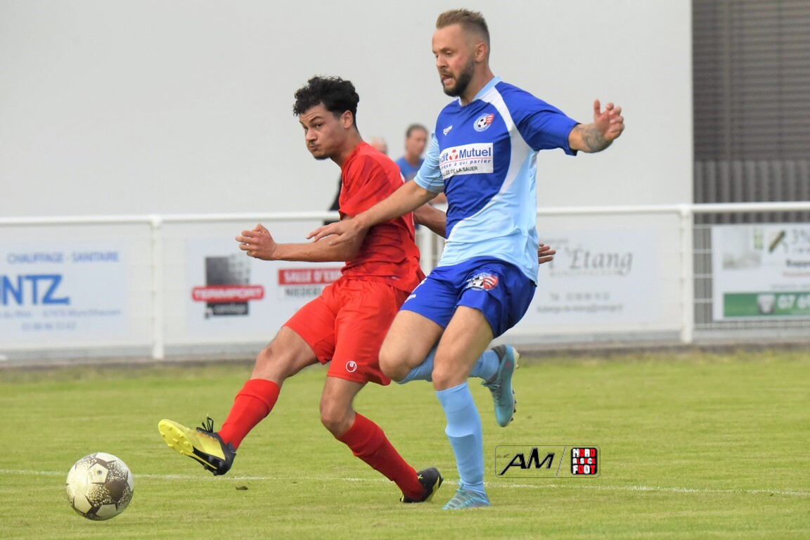 A l’occasion de la seconde soirée du “Foot en fête” organisé par le FC Seltz, le FC Riedseltz (District 2) affrontait le FC Durrenbach (District 1) avec l’ambition de débuter leur préparation estivale par un résultat positif, et ce, face à une formation adverse ayant pris un coup de jeune pour ce match en semaine. Après une première période se soldant par un léger avantage en faveur des hommes d’Eidel Christian grâce à des réalisations signées Gentner Loïc (13e) et Mamon Jérémy (28e) contre une réduction du score signée Richert Aurélien (45e, sp), les hommes de Mazerand Richard allaient parvenir à égaliser par l’intermédiaire de Berrabah Noah (59e) avant que les deux formations ne se neutralisent jusqu’au coup de sifflet final scellant le match nul sur ce score de 2-2! Retrouvez, ci-dessous, quelques images de cette rencontre et, pour en apprécier le contenu, veuillez cliquer sur l’une d’entre-elles pour afficher le diaporama.