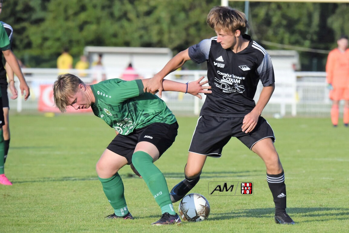A l’occasion de la troisième soirée du “Foot en fête” organisé par le FC Seltz, l’AS Betschdorf (District 1) affrontait le FC Soultz/s/Forêt/Kutz. (District 2) afin de tenter de débuter leur préparation par une victoire pour la première de Schneider Arnaud en qualité d’entraîneur, et ce, face à des adversaires s’étant pas mal renforcé lors ce ce mercato estival. Après une première période se soldant par un léger avantage en faveur des l’ASB grâce à une erreur d’appréciation de Nathan Heintz (le gardien du FCSK), les Soultzois allaient parvenir à égaliser à la 48e minute de jeu grâce à Pinto Amaury avant que les deux équipes ne se neutralisent jusqu’au coup de sifflet final scellant le match nul entre ces deux formations. Retrouvez, ci-dessous, quelques images de cette rencontre et, pour en apprécier le contenu, veuillez cliquer sur l’une d’entre-elles pour afficher le diaporama.