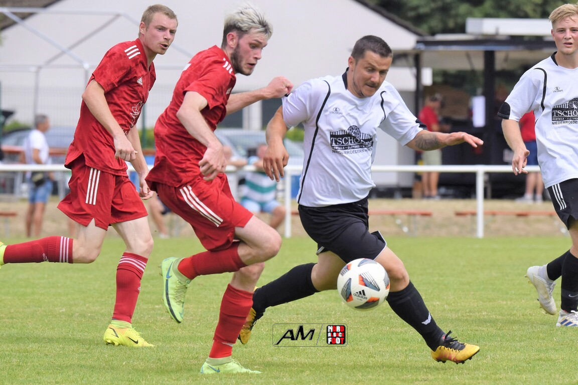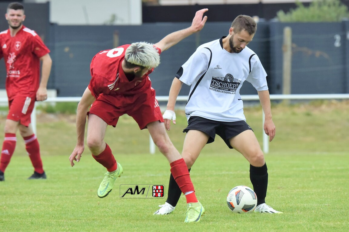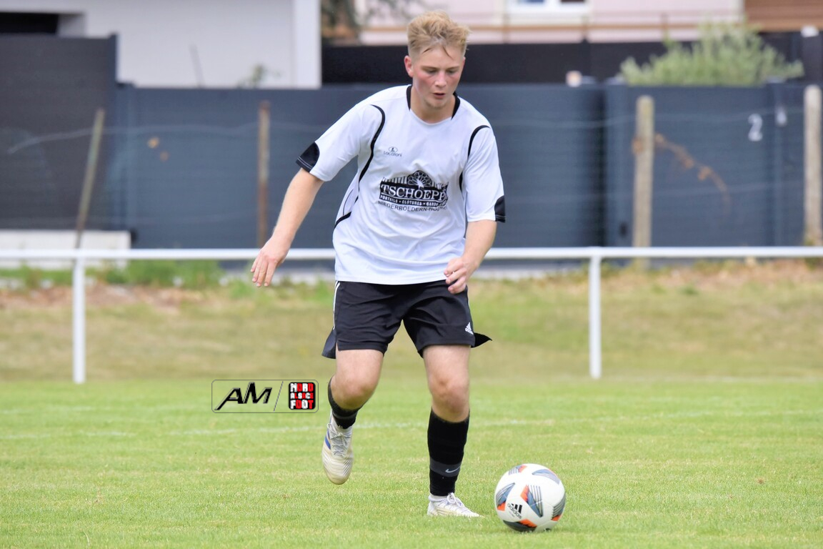 A l’occasion du 85e anniversaire du FC Riedseltz, l’équipe fanion du club (District 2) accueillait le FC Niederroedern/O. Schaffhouse (District 4) afin de tenter de rester dans une bonne dynamique après le match nul décroché face au FC Durrenbach lors du “Foot en fête” organisé par le FC Seltz (2-2), et ce, face à des adversaires cumulant un second match en moins de 24h après celui les ayant opposés, la veille, au FC Seltz 2. Après une première période se soldant par un large avantage en faveur des locaux grâce à des réalisations signées Heintz Thomas (14e, 42e) et Mamon Jérémy (20e), ces derniers allaient ajouter un but au compteur lors du second acte par l’intermédiaire de Mamon Jérémy (74e) avant qu’ils ne finissent par s’imposer sur ce score de 4-0! Retrouvez, ci-dessous, quelques images de cette rencontre et, pour en apprécier le contenu, veuillez cliquer sur l’une d’entre-elles pour afficher le diaporama.
