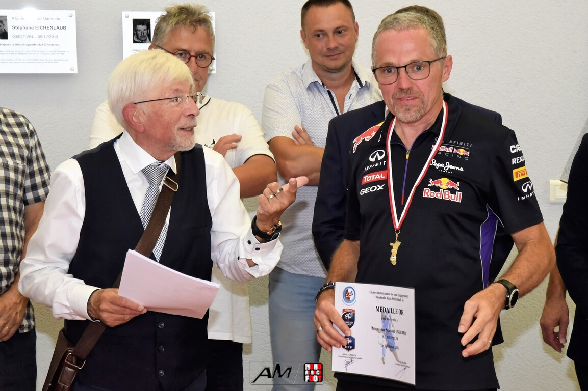 A l’occasion du 85e anniversaire du FC Riedseltz, des membres du club, des sympathisants, des personnalités publiques et des représentant(e)s du District d’Alsace se sont donnés rendez-vous, ce dimanche en début de soirée, afin de prendre part à la cérémonie officielle se tenant dans le club house du stade municipal. Après les différents discours allant de Beil Thierry (Président du club) à Aucourt Michel (Président du District), il fut temps de remettre les distinctions aux différents acteurs méritants du club sous la direction de Willig Francis avant que cette cérémonie ne se termine par la traditionnelle photo de famille suivie d’un vin d’honneur. Retrouvez, ci-dessous, quelques images de cette cérémonie et, pour en apprécier le contenu, veuillez cliquer sur l’une d’entre-elles pour afficher le diaporama.