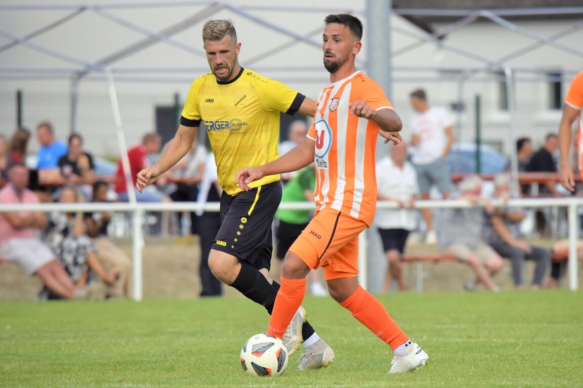 A l’occasion du 85e anniversaire du FC Riedseltz, l’US Schleithal (Régionale 3) affrontait l’US Oberlauterbach (Régionale 1) afin de tenter de tenir tête à la troupe à Muller Fabrice pour la passe de trois, et ce, face à des adversaires pouvant aller chercher une troisième victoire de rang dans cette préparation estivale. Après une première période se soldant par un score nul et vierge, les “Oranges” allaient finir par prendre le large en seconde période grâce à des réalisations signées Renckert Jonathan (58e), Muller Olivier (77e) et Pinto Youri (88e) avant qu’ils ne s’imposent largement sur ce score de 0-3! Retrouvez, ci-dessous, quelques images de cette rencontre et, pour en apprécier le contenu, veuillez cliquer sur l’une d’entre-elles pour afficher le diaporama.
