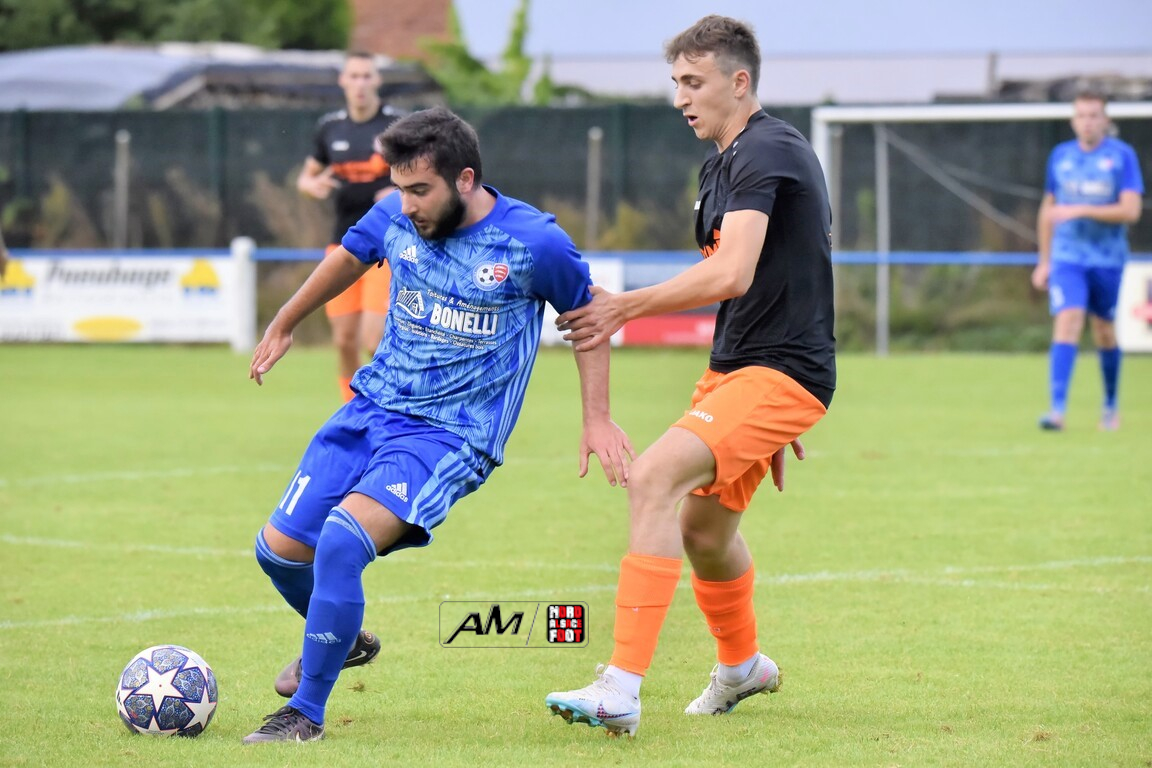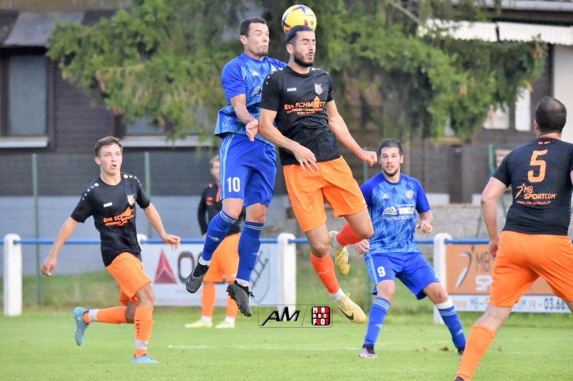 A l’occasion de la troisième soirée du Festifoot organisé par le FC Mothern, l’US Oberlauterbach 1&2 affrontait le FC Durrenbach afin de continuer à travailler les automatismes avant d’affronter, successivement, le FC Obermodern (dimanche 30/07 à Hatten) et le SV Linx (samedi 5/08 à Niederroedern). Après une première période se soldant par un léger avantage en faveur des “Oranges” grâce à des réalisations signées Weber Noé (12e) et Pinto Youri (36e) contre une réduction du score sur penalty signée Schall Lucas (40e) pour les Durrenbachois, les Oberlauterbachois allaient prendre le large en seconde période en ajoutant trois buts au compteur par l’intermédiaire de Pinto Youri (59e, 62e sp) et de Muller Olivier (88e) avant qu’ils ne finissent par largement s’imposer sur ce score de 5-1! Retrouvez, ci-dessous, quelques images de cette rencontre et, pour en apprécier le contenu, veuillez cliquer sur l’une d’entre-elles pour afficher le diaporama.