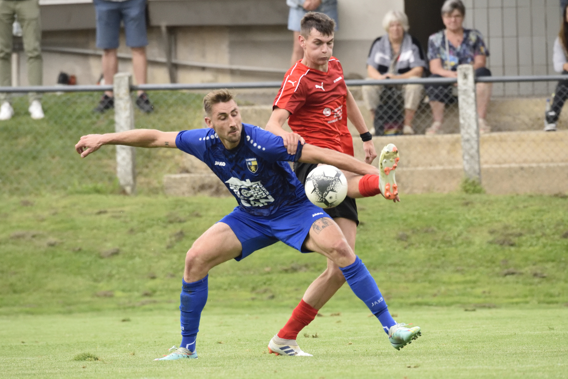A l’occasion de la première journée de championnat en Régionale 3 (Poule K), le FC Steinseltz accueillait l’US Preuschdorf pour un derby que les locaux comptaient bien négocier pour la première en match officiel de Zeidler Geoffrey en qualité d’entraîneur de l’équipe fanion. Après une première période se soldant par un court avantage en faveur des visiteurs grâce à une réalisation signée Schreiner Anthony (15e), ces derniers allaient faire le break à la 58e minute de jeu par l’intermédiaire de Martzolff Jérémy avant que les locaux ne parviennent à renverser la rencontre par une “remontada” rendue possible par un doublé de Kraemer David (64e, 84e) et par un but inscrit par Schell Kévin (77e). Retrouvez, ci-dessous, quelques images de cette rencontre et, pour en apprécier le contenu, veuillez cliquer sur l’une d’entre-elles pour afficher le diaporama.