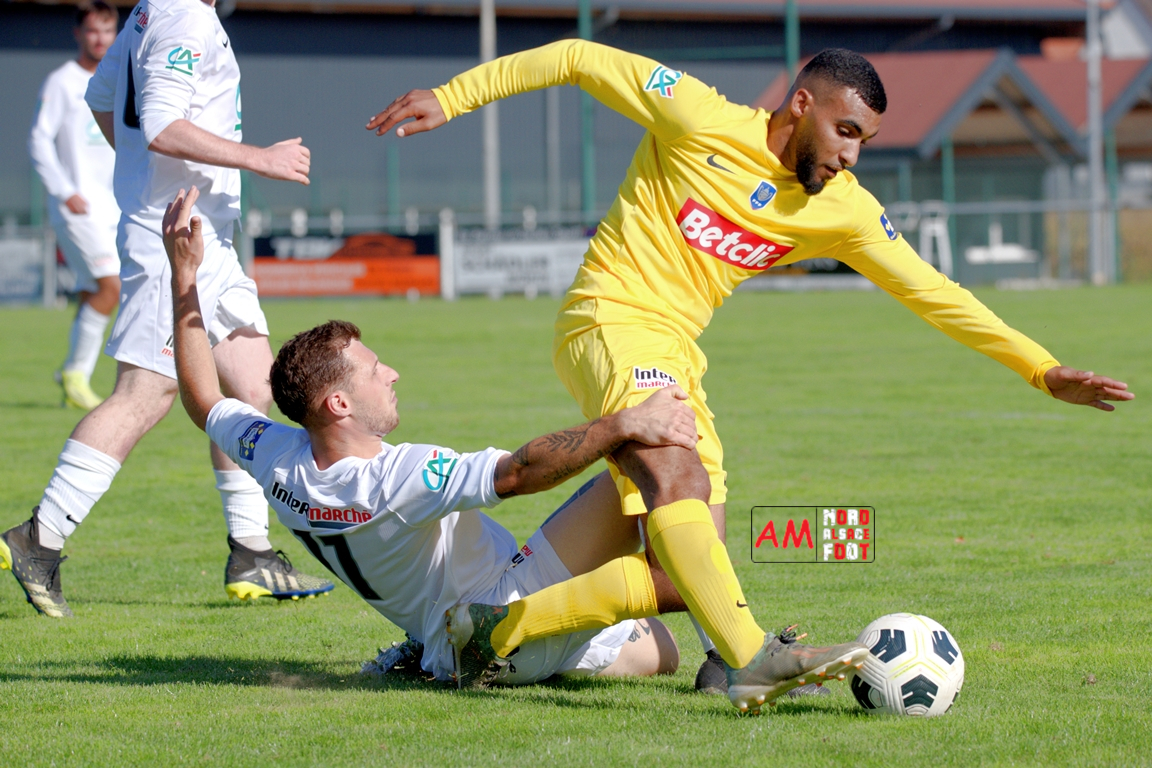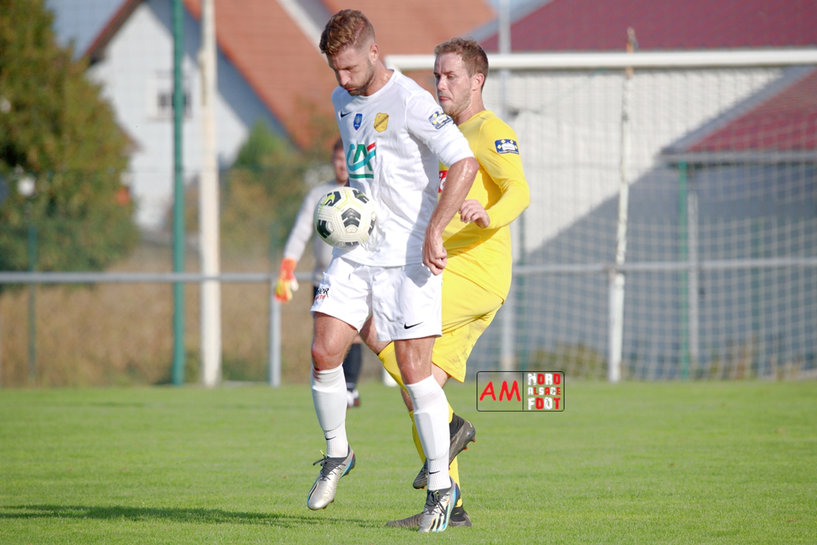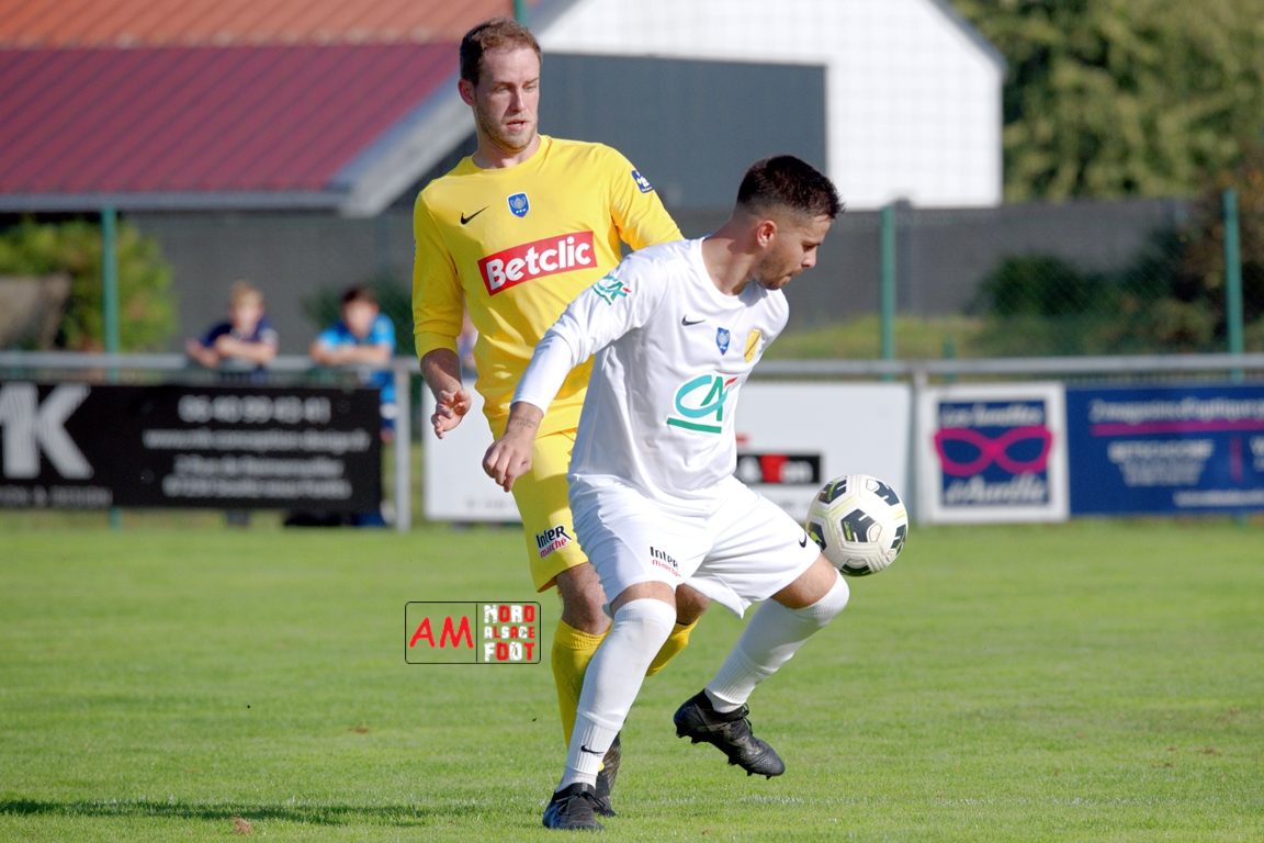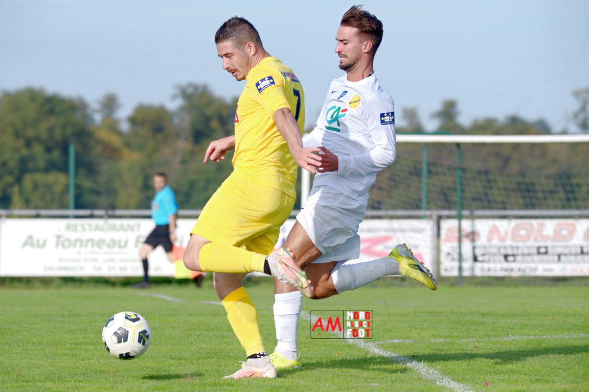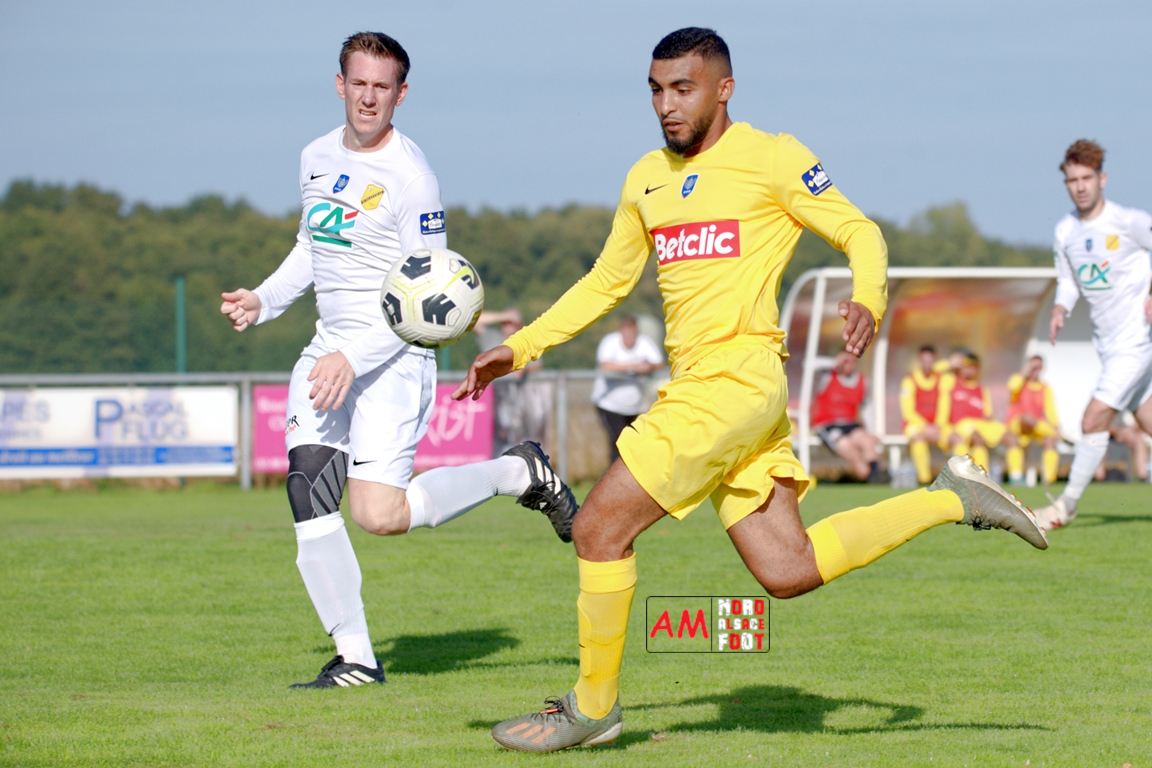 A l’occasion du quatrième tour de la Coupe de France, l’US Schleithal (Régionale 3) accueillait l’US Trois Maisons (District 1) afin de tenter de s’adjuger l’un des tickets pour le tour suivant, et ce, face à une équipe hiérarchiquement inférieure. Après une première période se soldant par un score nul et vierge, les visiteurs ouvrirent le score à la 64e minute de jeu par l’intermédiaire de Haro Jonathan (69e) avant que les locaux n’arrachent l’égalisation dans le temps additionnel grâce à une réalisation signée Boehm Martin (90e+3), les deux formations se disputant ensuite la qualification aux tirs-au-but au terme de laquelle un dernier tir de Boehm Martin passant au-dessus du but n’envoie les Mosellans au cinquième tour de cette compétition. Retrouvez, ci-dessous, quelques images de cette rencontre et, pour en apprécier le contenu, veuillez cliquer sur l’une d’entre-elles pour afficher le diaporama.