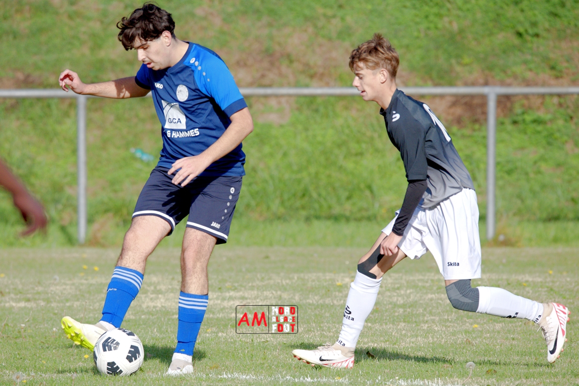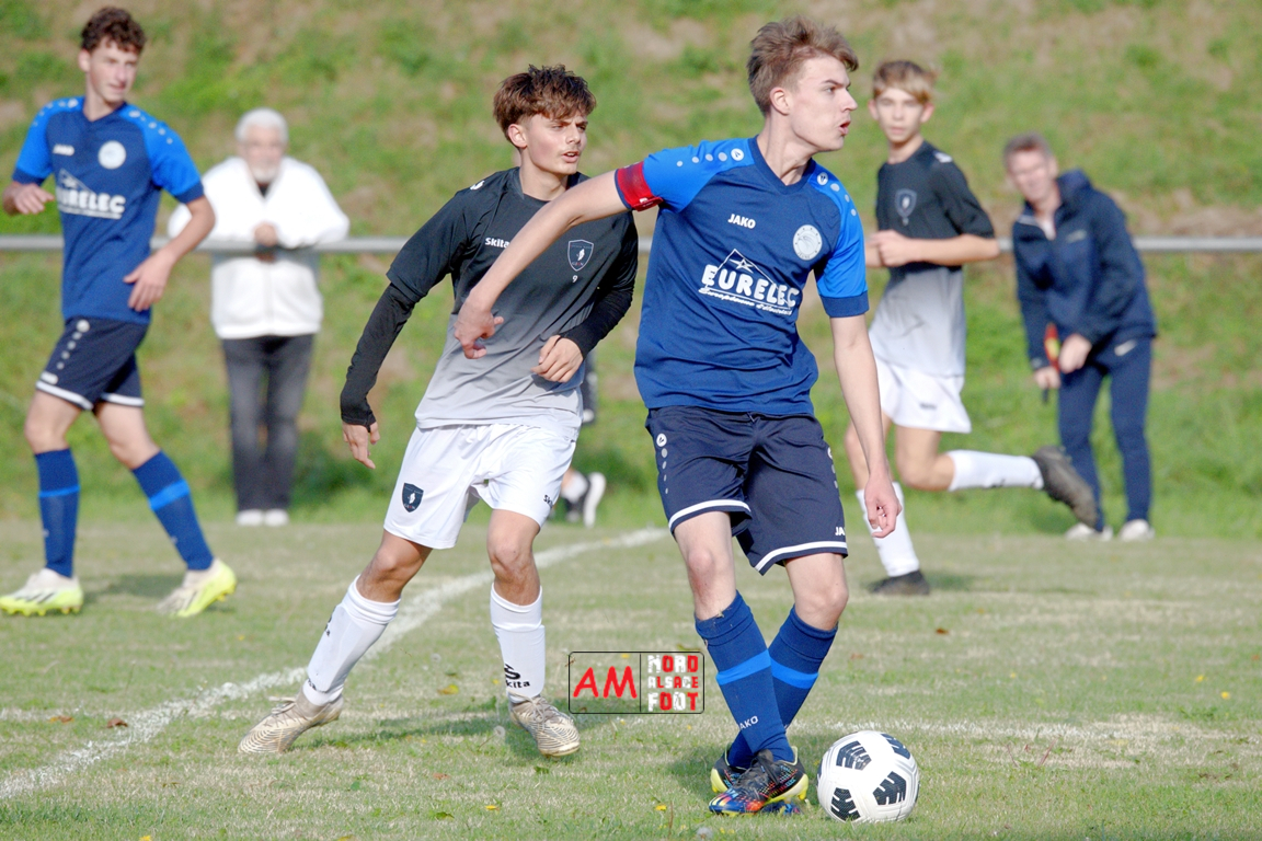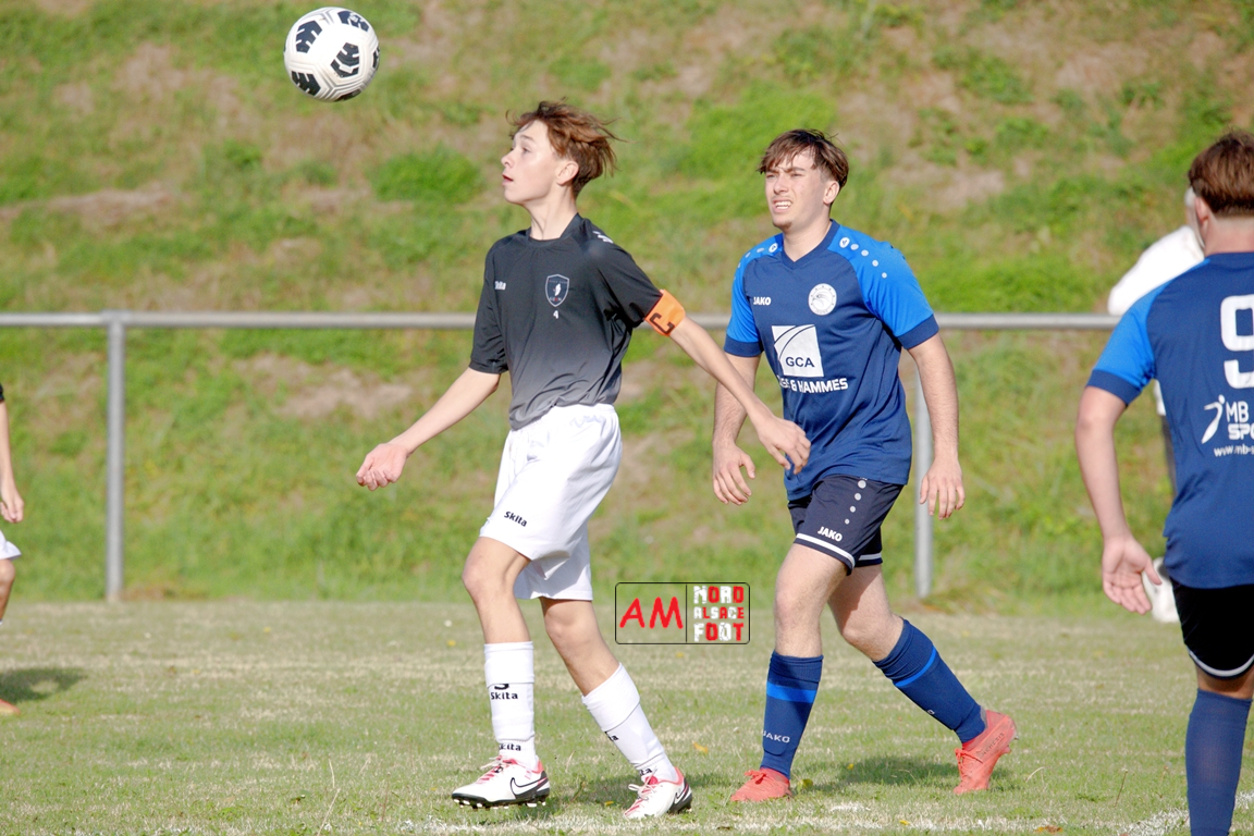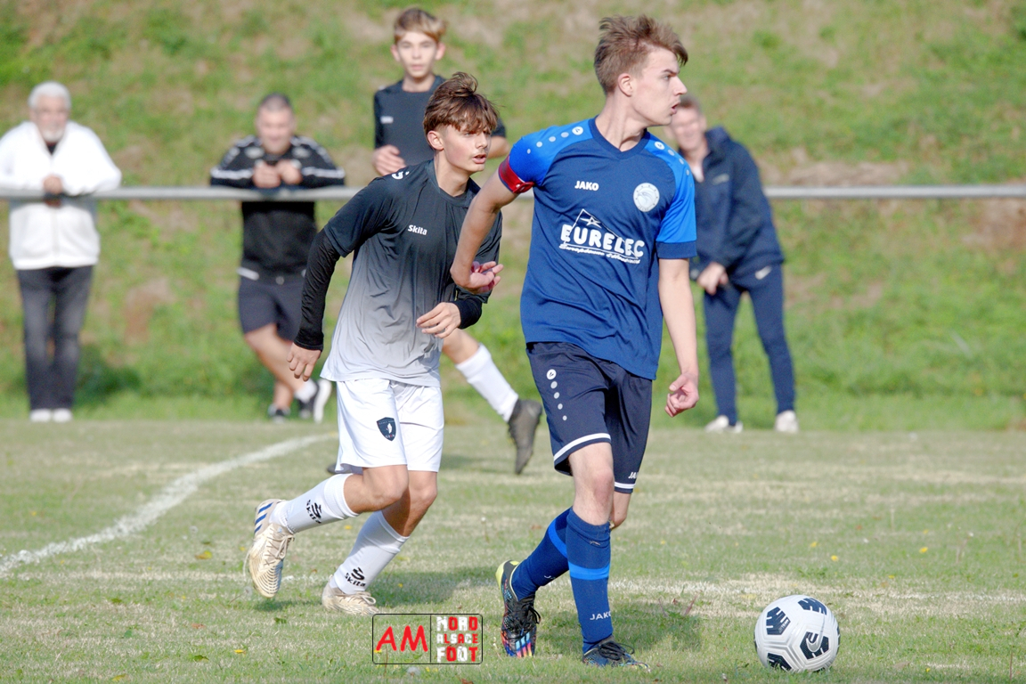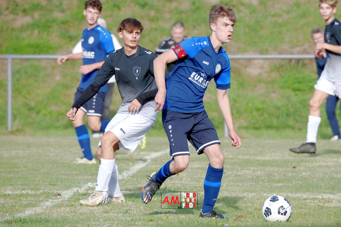 A l’occasion de la quatrième journée de championnat chez les U18/D3 (Poule B), les U18-2 du Groupement Jeunes d’Alsace du Nord accueillaient les U18-2 de la Jeunesse de l’UFFRIED afin de tenter d’enregistrer une première victoire acquise sur le terrain (et non par forfait de l’équipe adverse), et ce, face à des adversaires cherchant à remporter une deuxième victoire face à des hôtes d’un niveau équivalent. Après une première période se soldant par un large avantage en faveur des visiteurs, les locaux allaient parvenir à réduire la marque en seconde période avant qu’ils ne concèdent une lourde défaite sur ce score de 1-4! Retrouvez, ci-dessous, quelques images de cette rencontre et, pour en apprécier le contenu, veuillez cliquer sur l’une d’entre-elles pour afficher le diaporama.