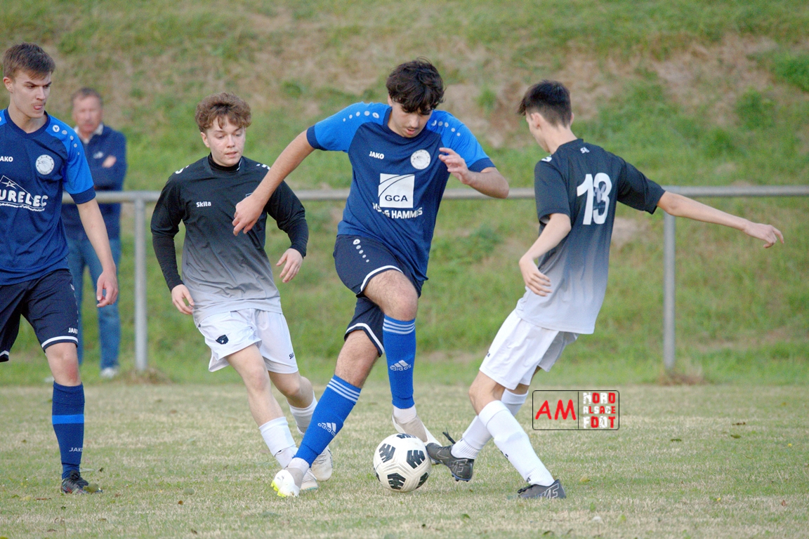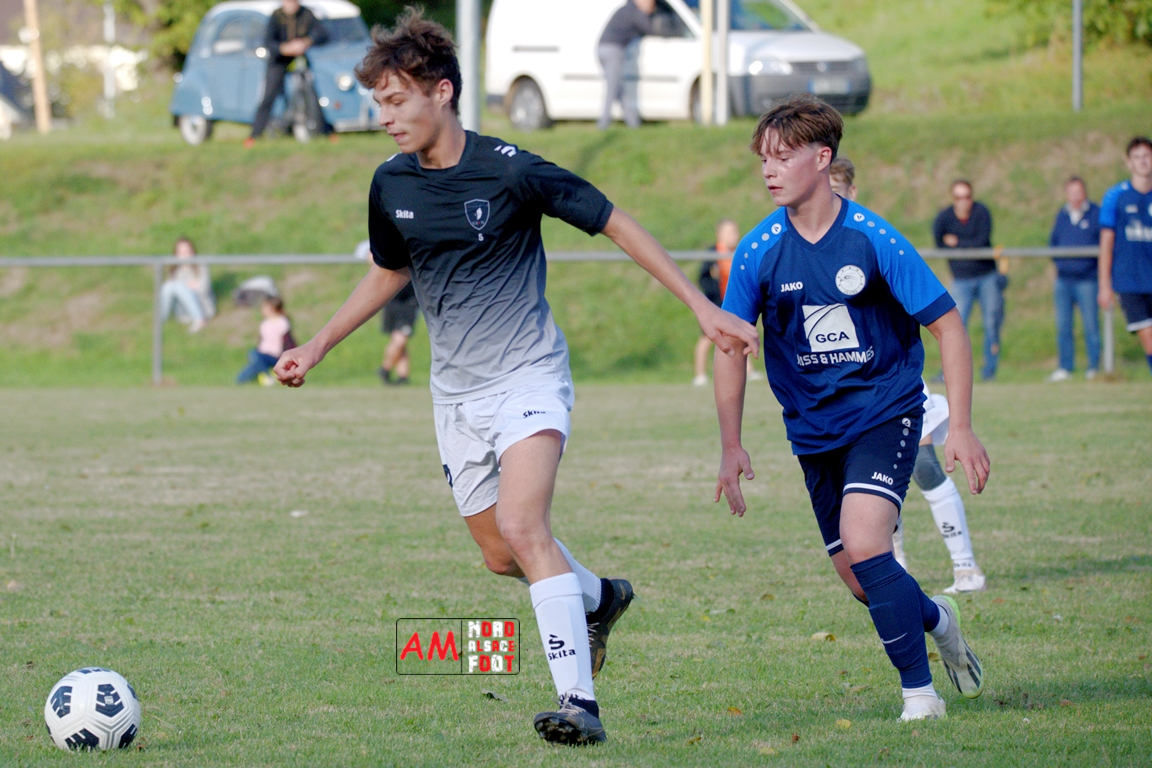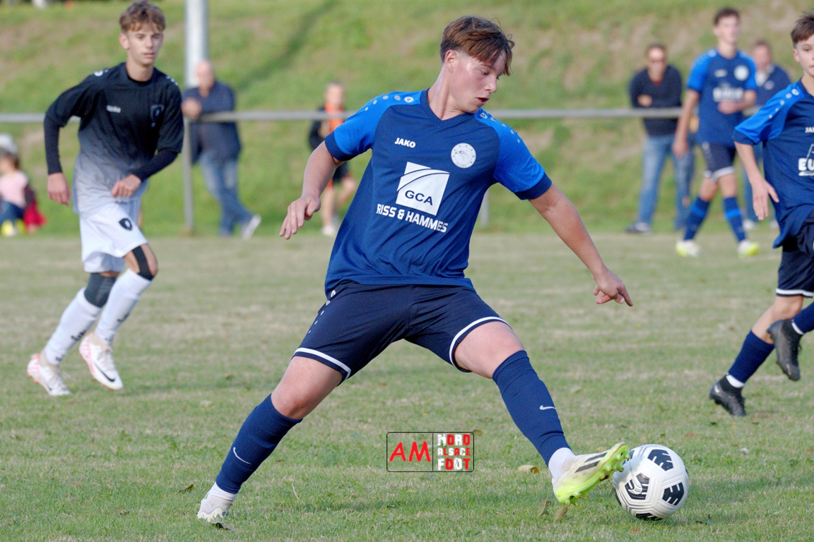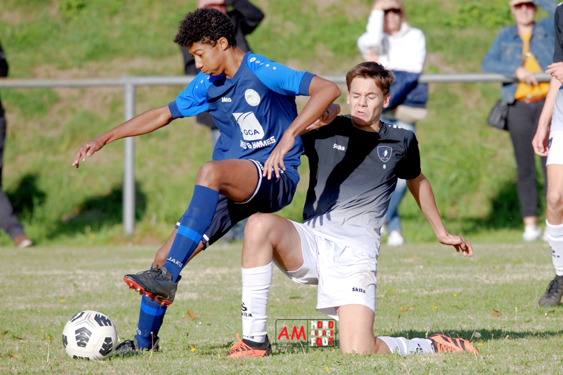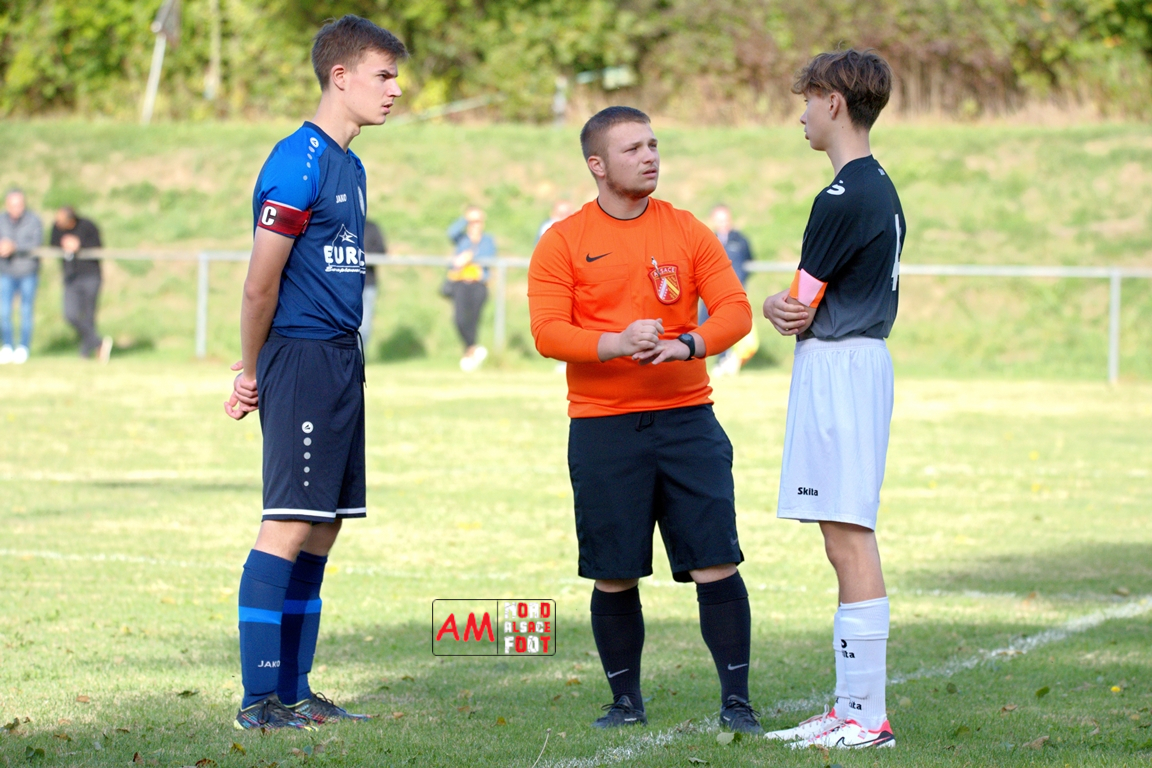 A l’occasion de la quatrième journée de championnat chez les U18/D3 (Poule B), les U18-2 du Groupement Jeunes d’Alsace du Nord accueillaient les U18-2 de la Jeunesse de l’UFFRIED afin de tenter d’enregistrer une première victoire acquise sur le terrain (et non par forfait de l’équipe adverse), et ce, face à des adversaires cherchant à remporter une deuxième victoire face à des hôtes d’un niveau équivalent. Après une première période se soldant par un large avantage en faveur des visiteurs, les locaux allaient parvenir à réduire la marque en seconde période avant qu’ils ne concèdent une lourde défaite sur ce score de 1-4! Retrouvez, ci-dessous, quelques images de cette rencontre et, pour en apprécier le contenu, veuillez cliquer sur l’une d’entre-elles pour afficher le diaporama.