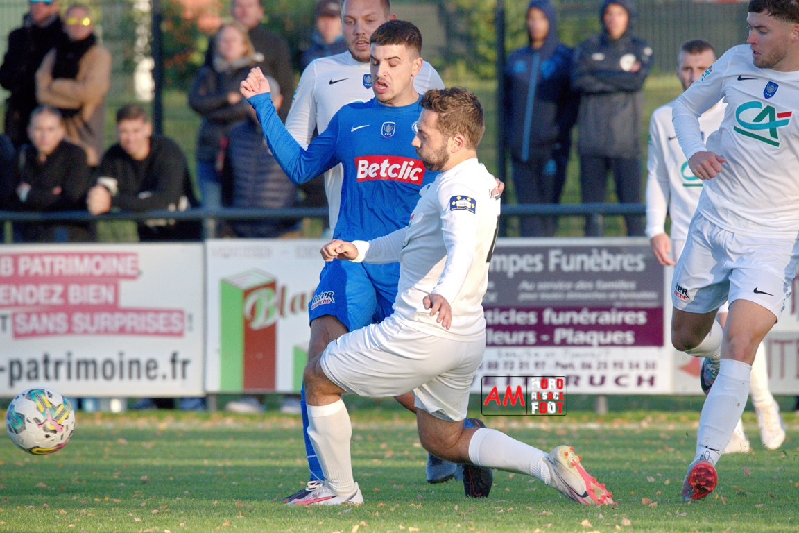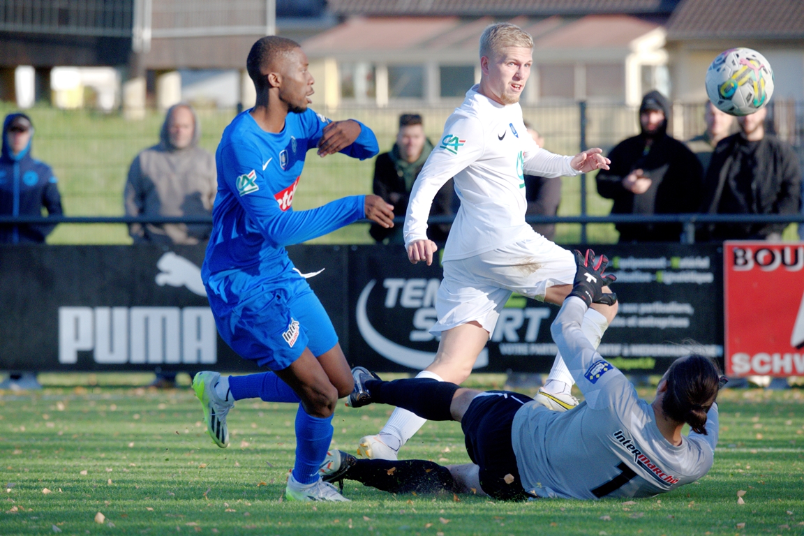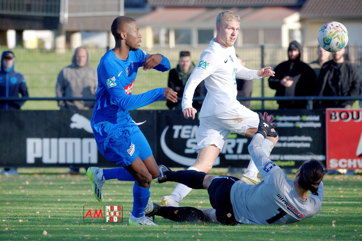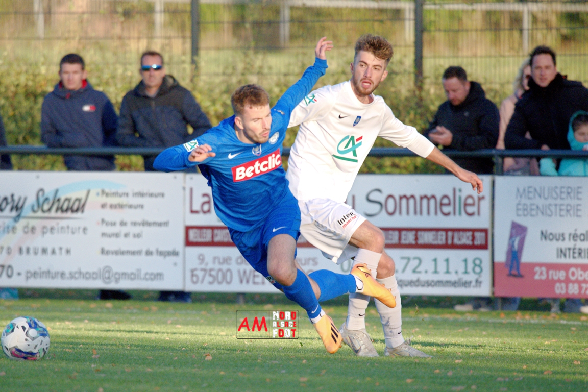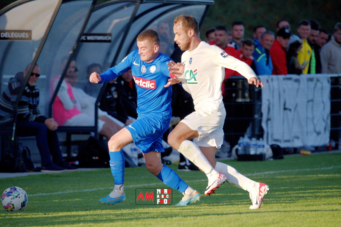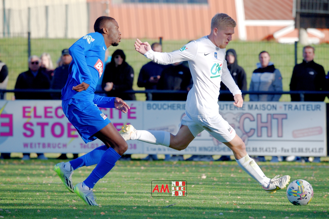 A l’occasion du cinquième tour de la Coupe de France, le FC Weitbruch (District 1) accueillait le FCE Schirrhein-Schirrhoffen 1 (Régionale 2) afin de tenter de créer un nouvel exploit après celui du tour précédent face à l’ASI AVENIR (3-2), et ce, face à des adversaires étant premiers de leur groupe en championnat et résolument déterminés à aller chercher cette qualification. Après une première période se soldant par un avantage confortable en faveur des visiteurs grâce à des réalisations signées Moritz Yannis (32e) et Koch Mickaël (40e), ces derniers allaient corser l’addition en seconde période par l’intermédiaire de Toure Ismael (69e) avant qu’ils ne finissent par obtenir leur qualification en s’imposant sur ce score de 0-3! Retrouvez, ci-dessous, quelques images de cette rencontre et, pour en apprécier le contenu, veuillez cliquer sur l’une d’entre-elles pour afficher le diaporama.