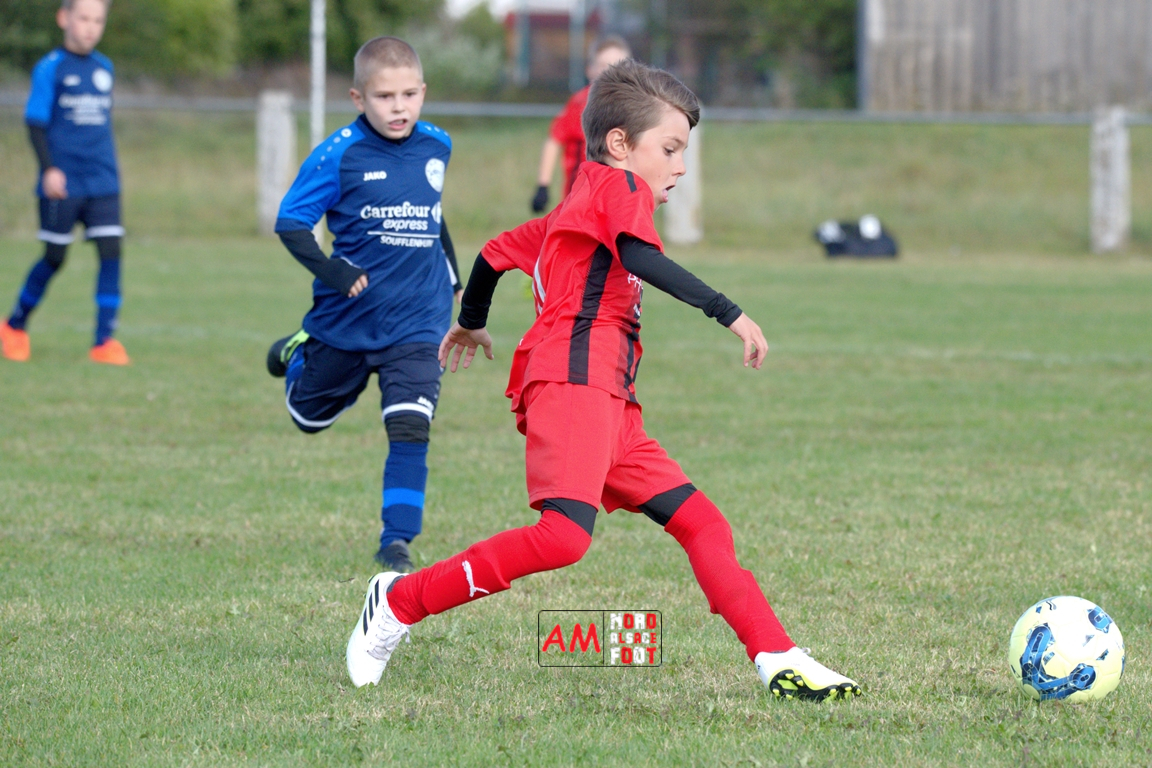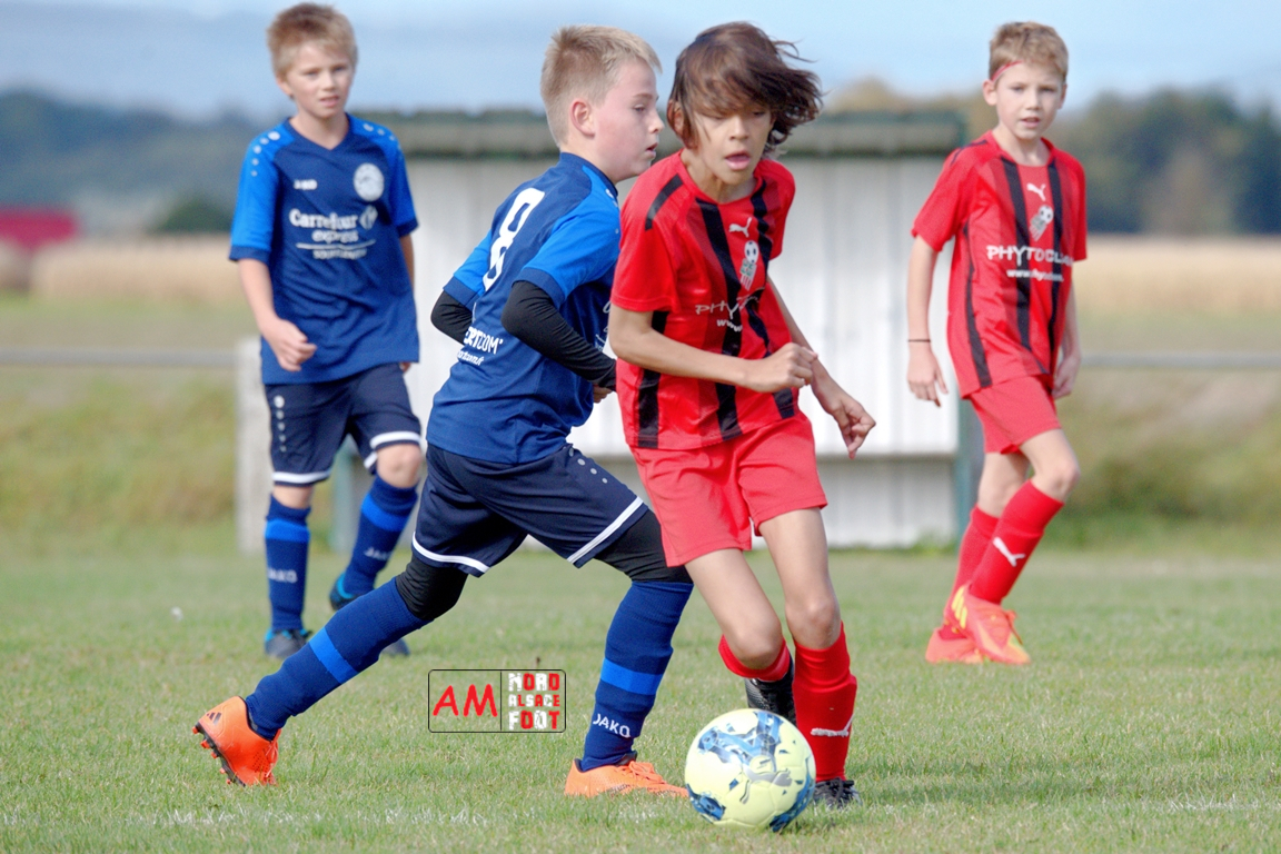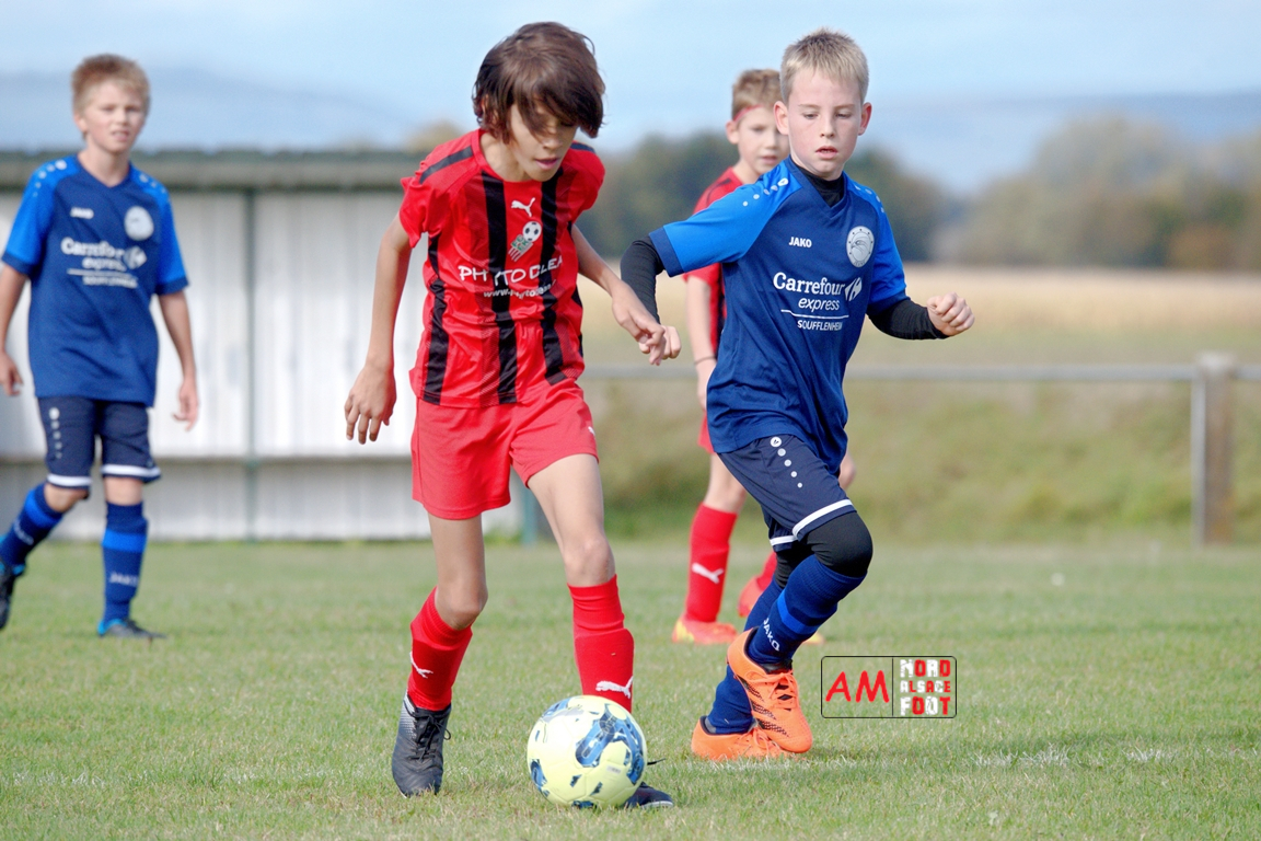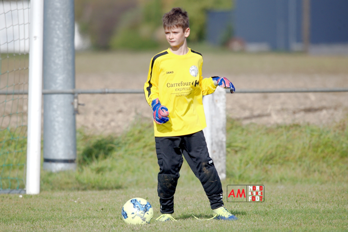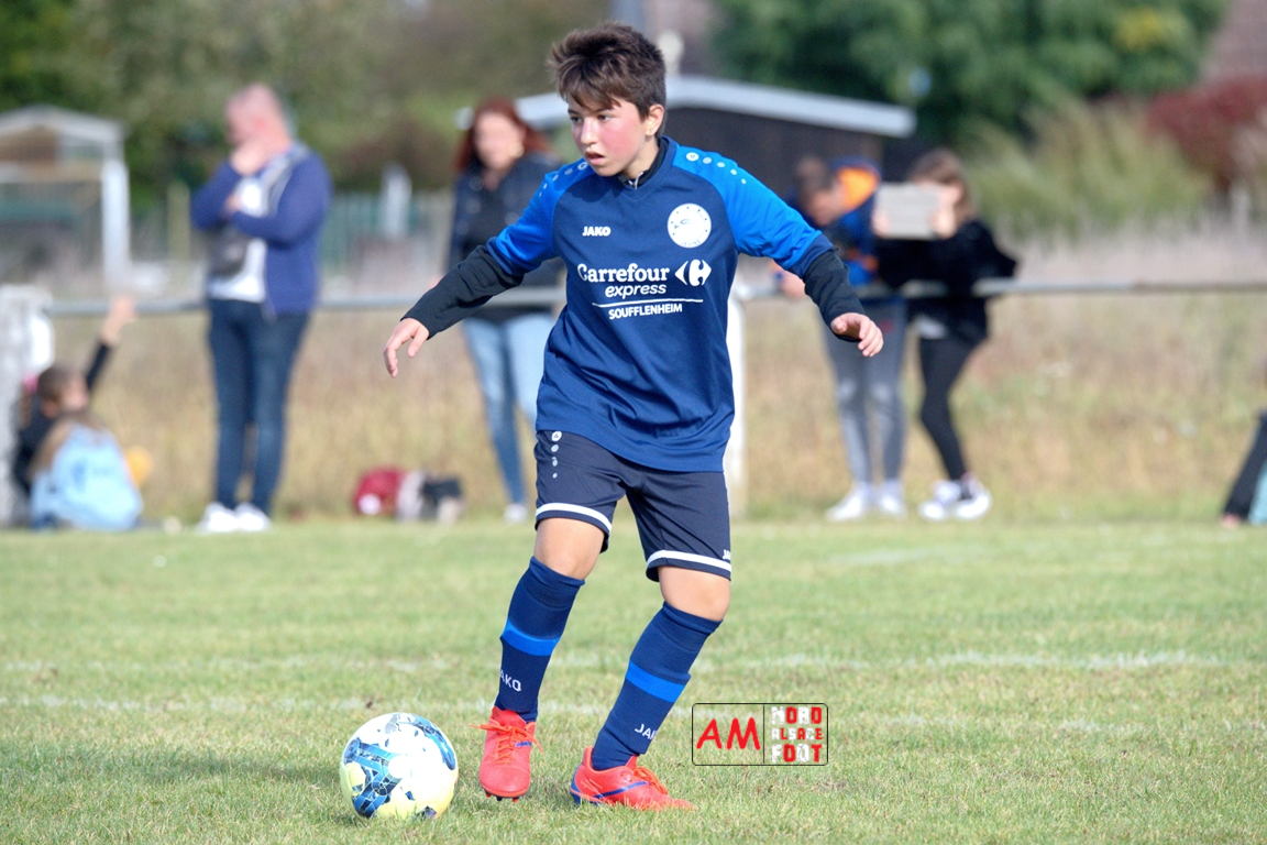 A l’occasion de la sixième journée de championnat chez les U11/D3 (Poule E), les U11-3 de la Jeunesse de l’UFFRIED accueillaient les U11-2 de l’US Kaltenhouse/Marienthal avec l’intention de réaliser un premier résultat positif, et ce, face à une équipe adverse semblant mieux composée que la leur. Après une première période se soldant par un avantage confortable en faveur des visiteurs grâce à des réalisations signées Perona Raphaël (6e) et Antunes Maxime (22e), ces derniers allaient corser l’addition en seconde période en ajoutant pas moins de douze buts au compteur par l’intermédiaire de Baldauf Anthony (29e, 31e, 34e, 41e), de Rodrigues Eliott (42e, 48e, 49e, 50e), de Antunes Maxime (43e), de Hafsi Esteban (45e), de Karayel Siwan (50e+2) et grâce à un CSC du 12 local avant qu’ils ne finissent par largement s’imposer sur ce score de 0-14! Retrouvez, ci-dessous, quelques images de cette rencontre et, pour en apprécier le contenu, veuillez cliquer sur l’une d’entre-elles pour afficher le diaporama.