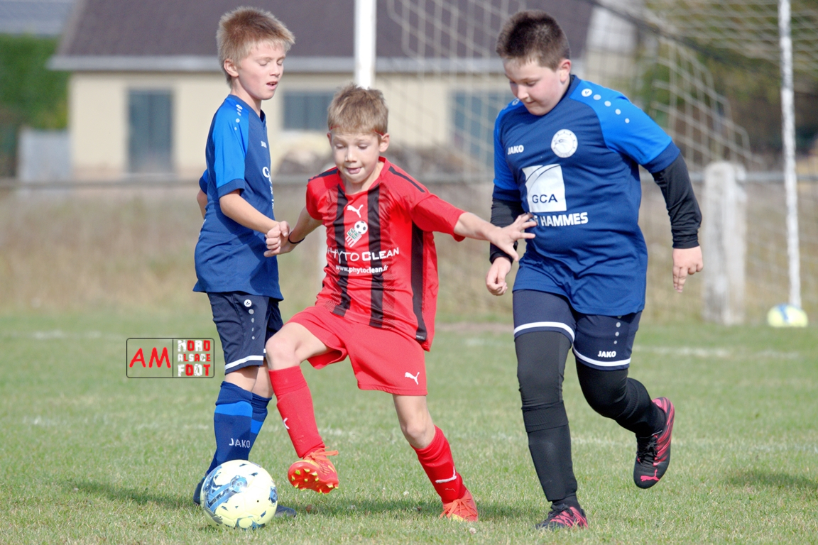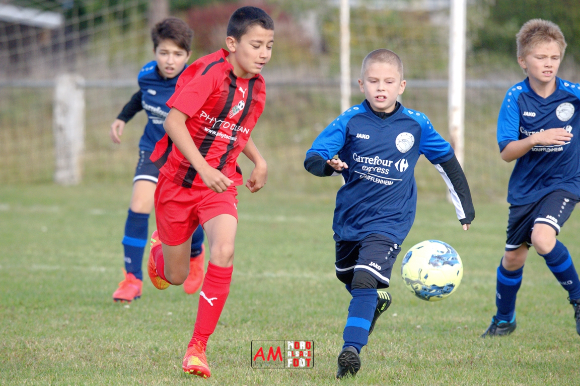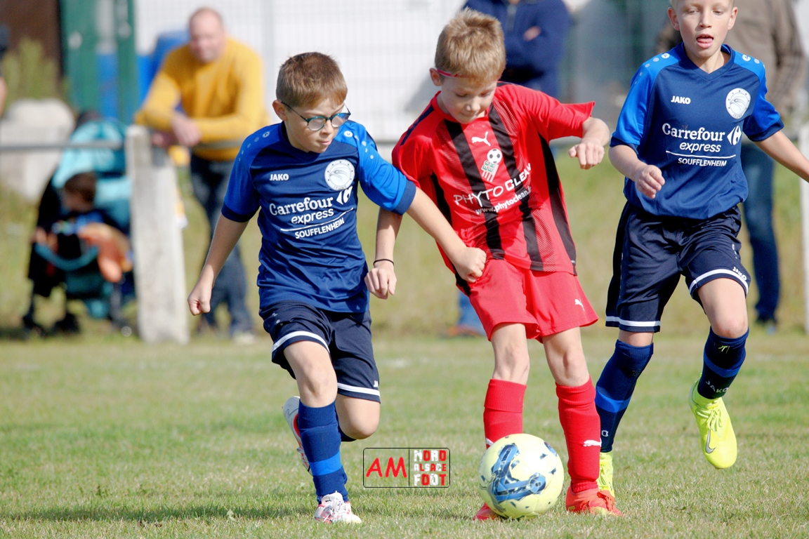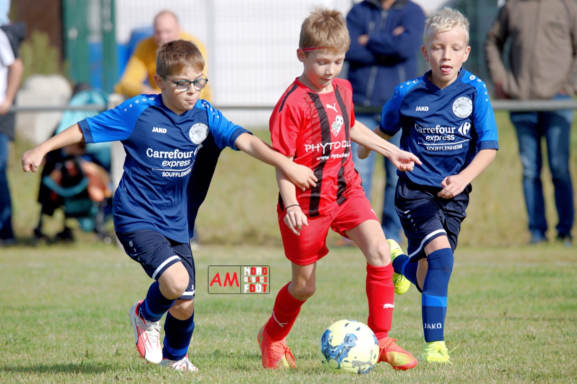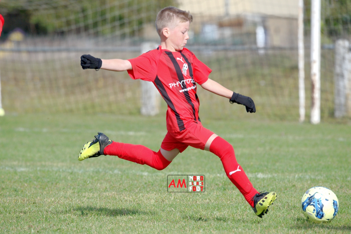 A l’occasion de la sixième journée de championnat chez les U11/D3 (Poule E), les U11-3 de la Jeunesse de l’UFFRIED accueillaient les U11-2 de l’US Kaltenhouse/Marienthal avec l’intention de réaliser un premier résultat positif, et ce, face à une équipe adverse semblant mieux composée que la leur. Après une première période se soldant par un avantage confortable en faveur des visiteurs grâce à des réalisations signées Perona Raphaël (6e) et Antunes Maxime (22e), ces derniers allaient corser l’addition en seconde période en ajoutant pas moins de douze buts au compteur par l’intermédiaire de Baldauf Anthony (29e, 31e, 34e, 41e), de Rodrigues Eliott (42e, 48e, 49e, 50e), de Antunes Maxime (43e), de Hafsi Esteban (45e), de Karayel Siwan (50e+2) et grâce à un CSC du 12 local avant qu’ils ne finissent par largement s’imposer sur ce score de 0-14! Retrouvez, ci-dessous, quelques images de cette rencontre et, pour en apprécier le contenu, veuillez cliquer sur l’une d’entre-elles pour afficher le diaporama.