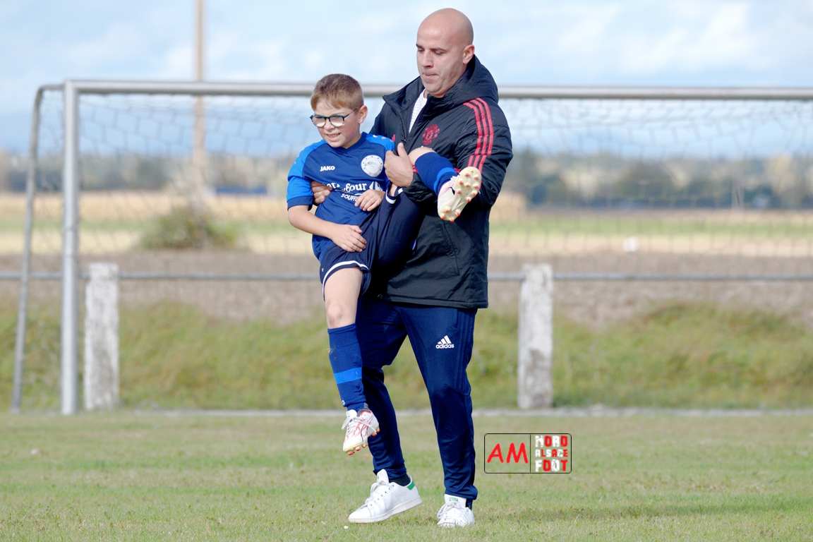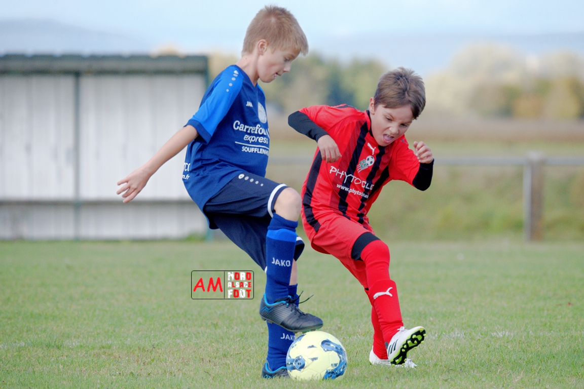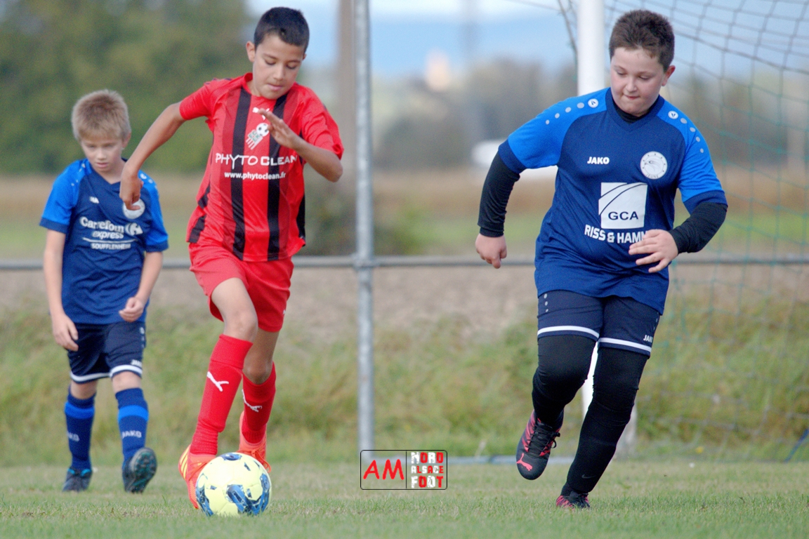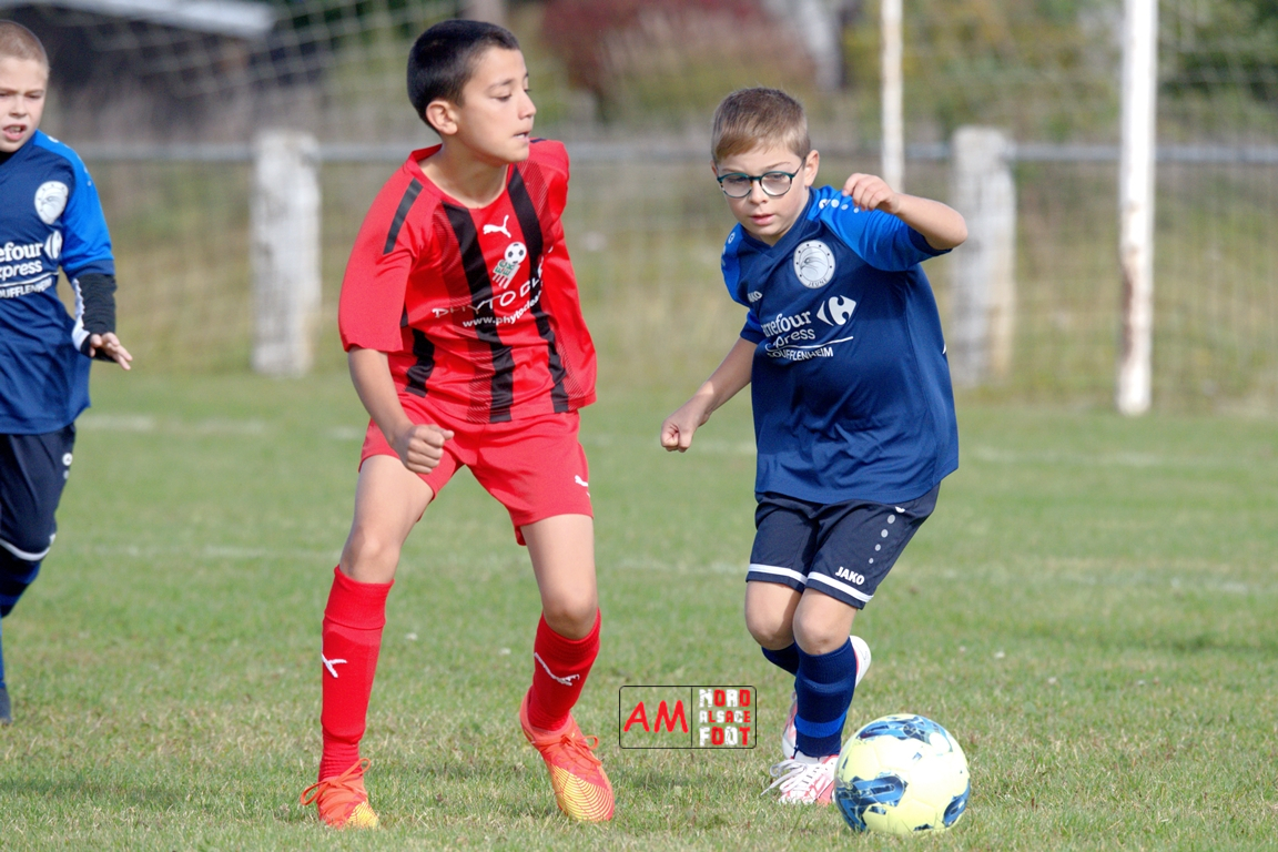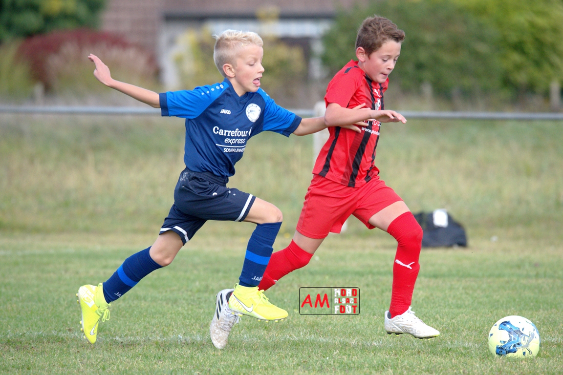 A l’occasion de la sixième journée de championnat chez les U11/D3 (Poule E), les U11-3 de la Jeunesse de l’UFFRIED accueillaient les U11-2 de l’US Kaltenhouse/Marienthal avec l’intention de réaliser un premier résultat positif, et ce, face à une équipe adverse semblant mieux composée que la leur. Après une première période se soldant par un avantage confortable en faveur des visiteurs grâce à des réalisations signées Perona Raphaël (6e) et Antunes Maxime (22e), ces derniers allaient corser l’addition en seconde période en ajoutant pas moins de douze buts au compteur par l’intermédiaire de Baldauf Anthony (29e, 31e, 34e, 41e), de Rodrigues Eliott (42e, 48e, 49e, 50e), de Antunes Maxime (43e), de Hafsi Esteban (45e), de Karayel Siwan (50e+2) et grâce à un CSC du 12 local avant qu’ils ne finissent par largement s’imposer sur ce score de 0-14! Retrouvez, ci-dessous, quelques images de cette rencontre et, pour en apprécier le contenu, veuillez cliquer sur l’une d’entre-elles pour afficher le diaporama.