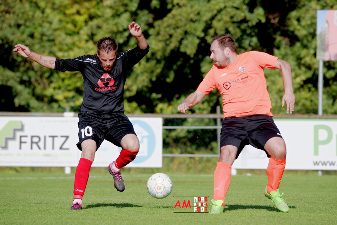 A l’occasion de la cinquième journée de championnat en District 7 (Poule C), le FC Niederlauterbach 2 (1er) accueillait l’US Oberlauterbach 4 (lanterne rouge) pour un choc des extrêmes que les locaux comptaient s’adjuger afin de bien finir la phase automnale. Après une première période se soldant par un large avantage en faveur des locaux grâce à un triplé signé Joerger Fabien (19e, 28e, 40e) et Schmitt Christophe (45e) contre un but inscrit par Narciso Michel (18e) en faveur des visiteurs, les doublures locales allaient corser l’addition à deux reprises en seconde période par l’intermédiaire de Heilmann Boris (49e) et de Herbein Matthieu (80e) tout en encaissant un but ayant été inscrit par Bastian Denis (56e) avant qu’ils ne finissent par logiquement s’imposer sur ce score de 6-2! Retrouvez, ci-dessous, quelques images de cette rencontre et, pour en apprécier le contenu, veuillez cliquer sur l’une d’entre-elles pour afficher le diaporama.