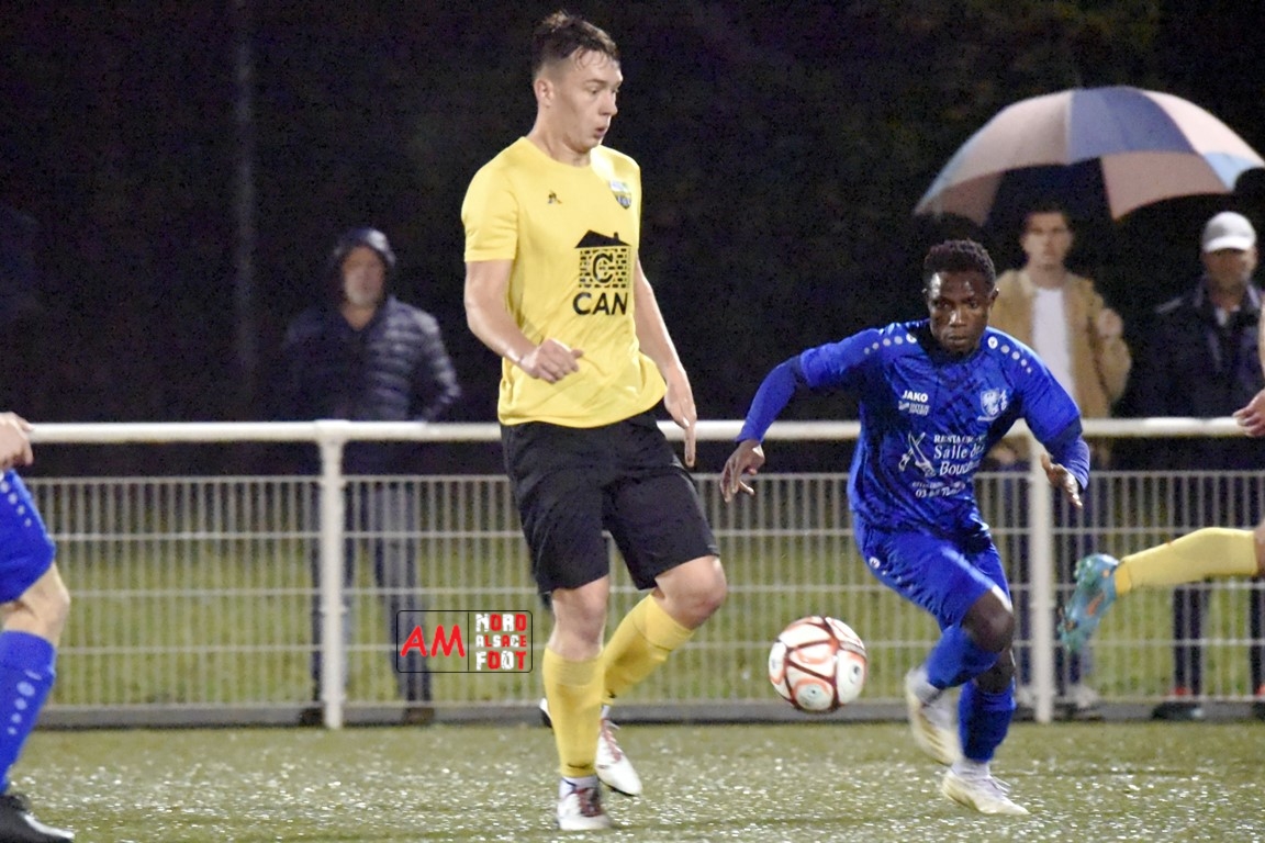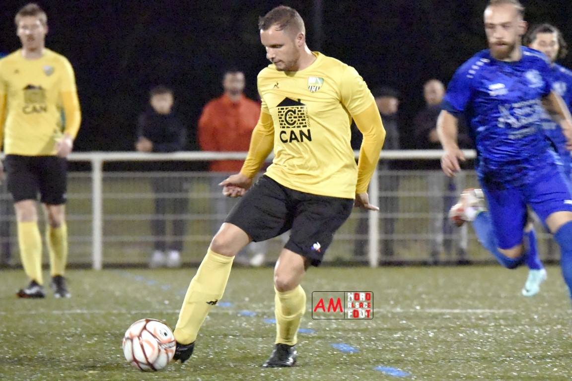 Romain Study (en jaune) permit à l'AS Seebach de renverser la vapeur en seconde période - Photo NAF