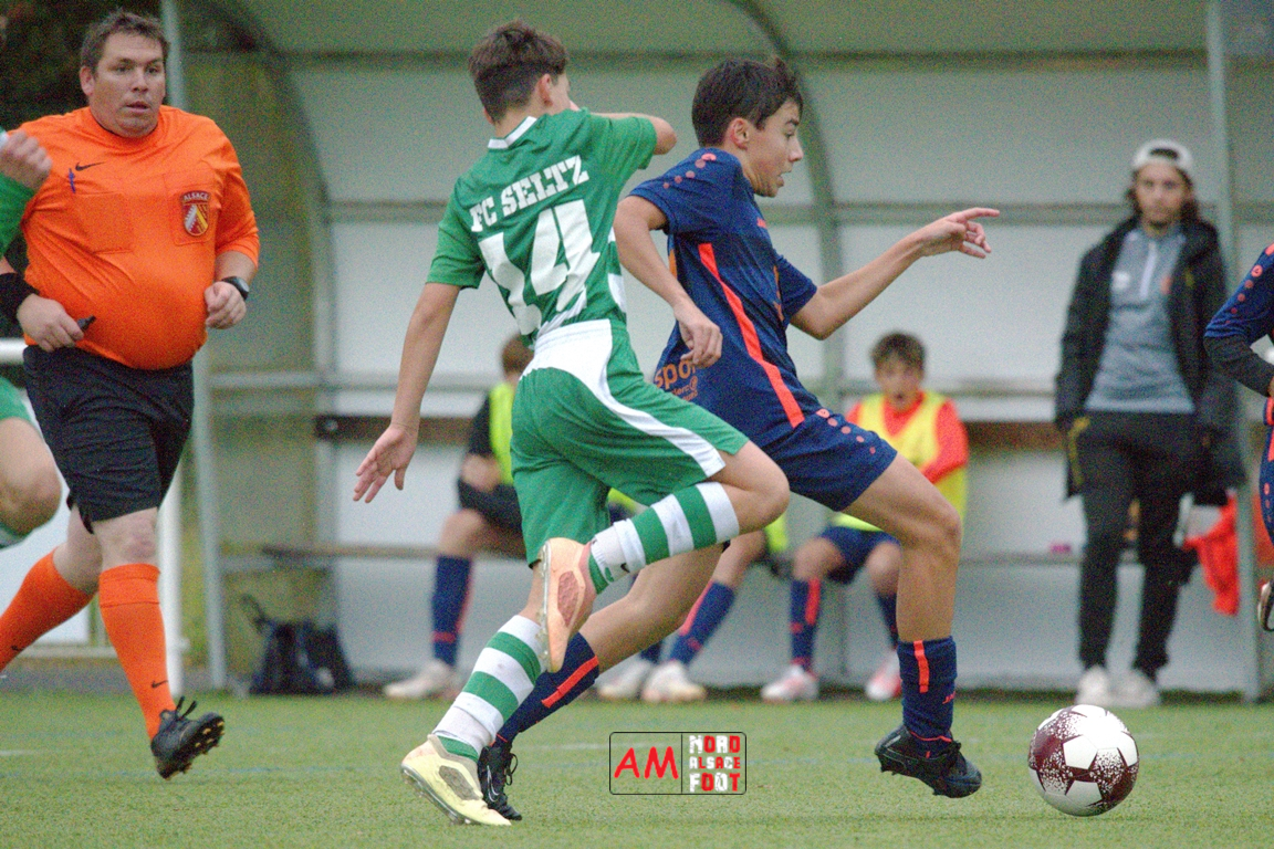 A l’occasion de la sixième journée de championnat chez les U15/D1 (Poule A), le FC Seltz (5e) accueillait l’entente Phalsbourg/ESPOIR 16 (lanterne rouge) afin de tenter d’intégrer le top 4 de ce groupe en faveur d’une victoire, et ce, face à des adversaires cherchant leur(s) premier(s) point(s) depuis le début de cet exercice. Après une première période se soldant par un large avantage en faveur des locaux (3-0), j’ai du quitter la rencontre et je ne suis donc pas en mesure de vous donner le score final de cette rencontre étant donné qu’une feuille de match papier a été établie. Retrouvez, ci-dessous, quelques images de cette rencontre et, pour en apprécier le contenu, veuillez cliquer sur l’une d’entre-elles pour afficher le diaporama.