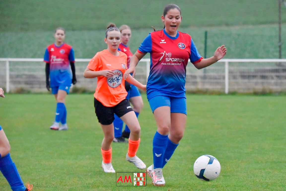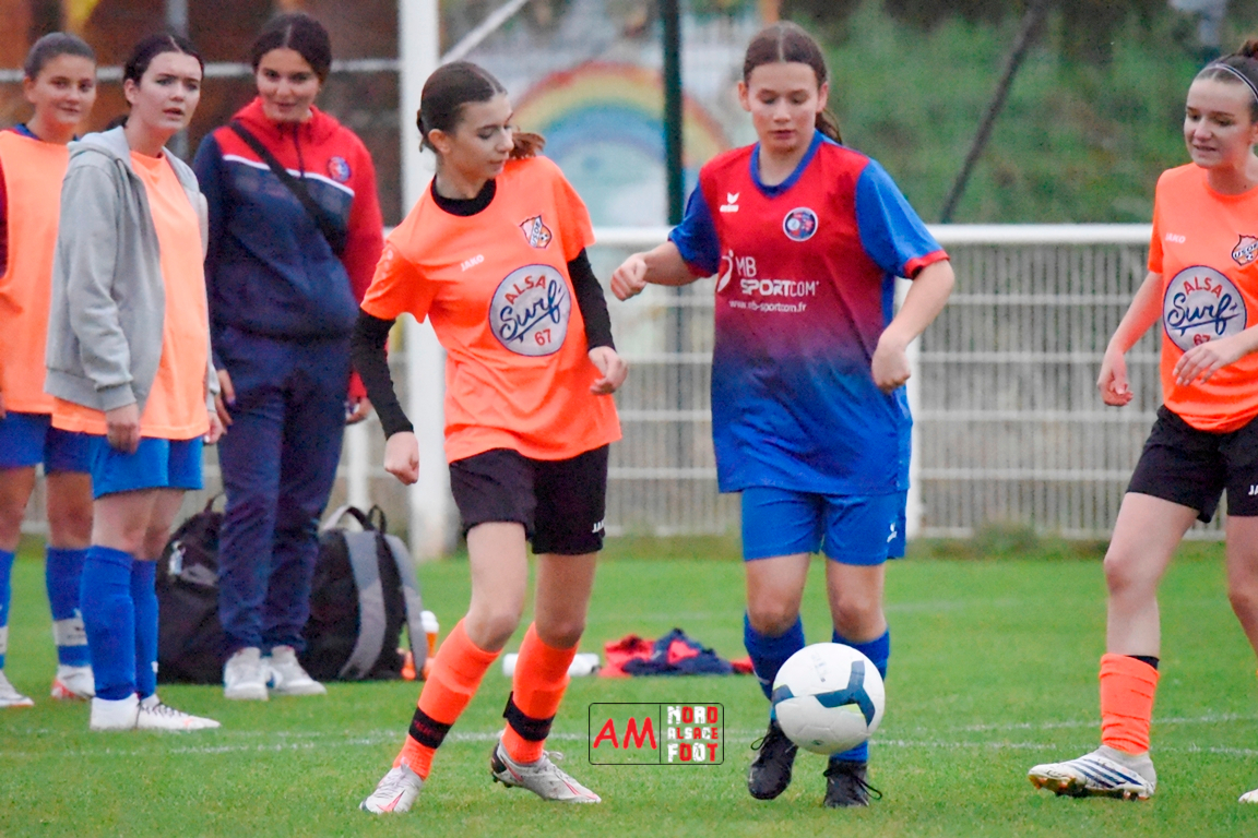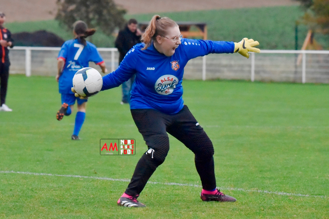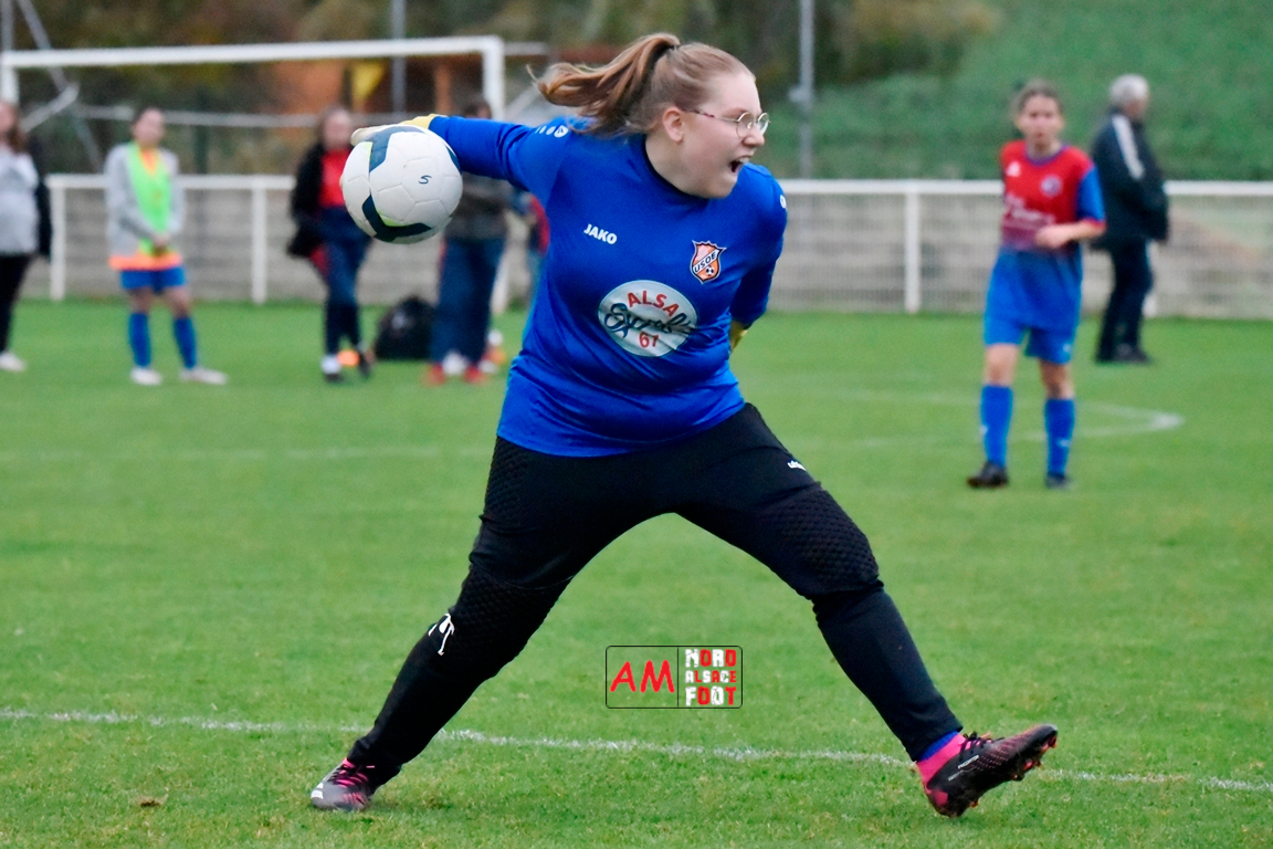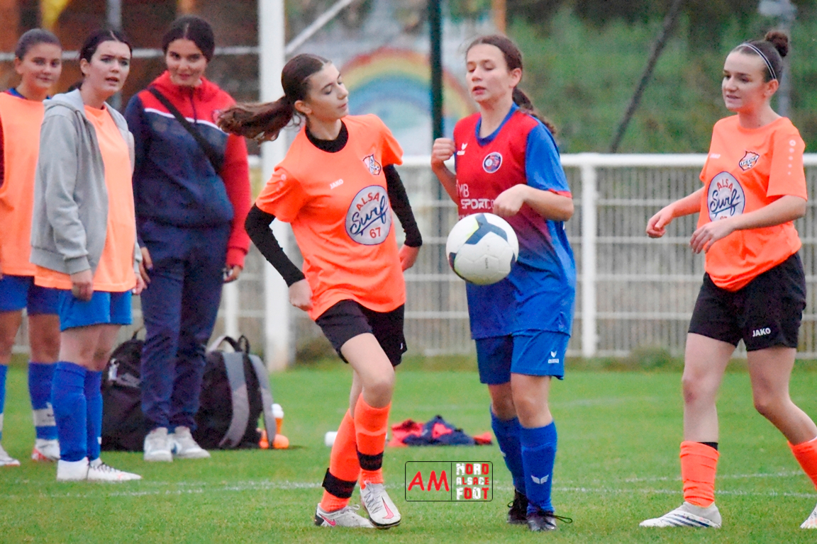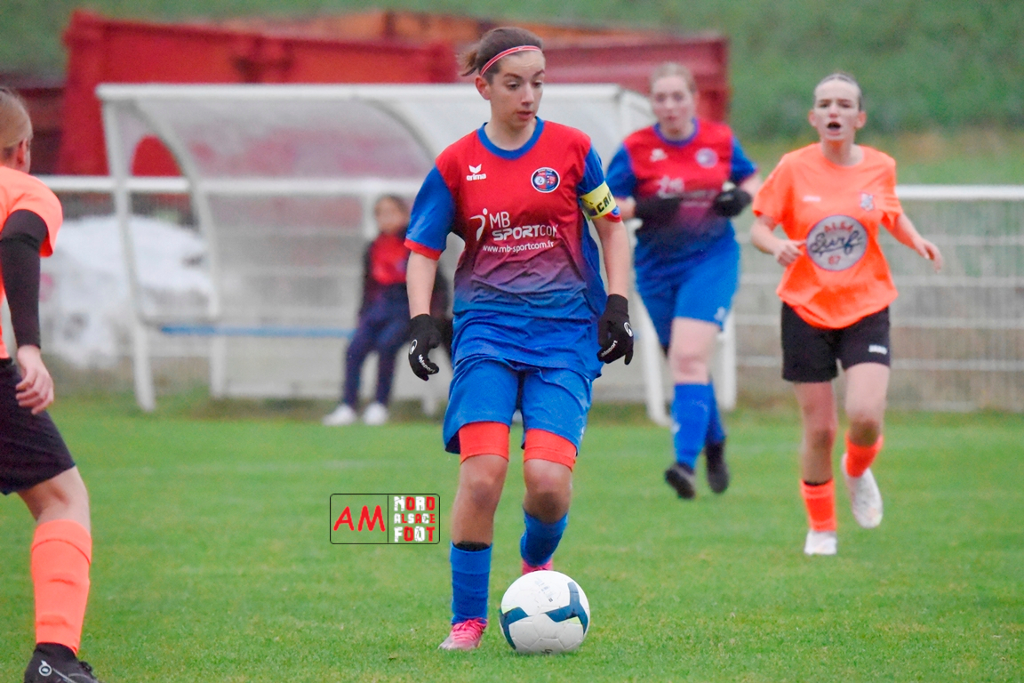 A l’occasion d’un match en retard comptant pour la deuxième journée de championnat chez les U18/F à 8 (Poule A), l’US Oberlauterbach F accueillait l’entente KOMETRIB afin de tenter de réaliser un exploit face à l’un des deux équipes invaincues de ce groupe. Après une première période se soldant par un score de parité (3-3), les protégées de Gass Fabrice ne purent empêcher leurs adversaires de faire la différence en seconde période, les deux équipes se quittant finalement sur ce score de 4-6! Retrouvez, ci-dessous, quelques images de cette rencontre et, pour en apprécier le contenu, veuillez cliquer sur l’une d’entre-elles pour afficher le diaporama.