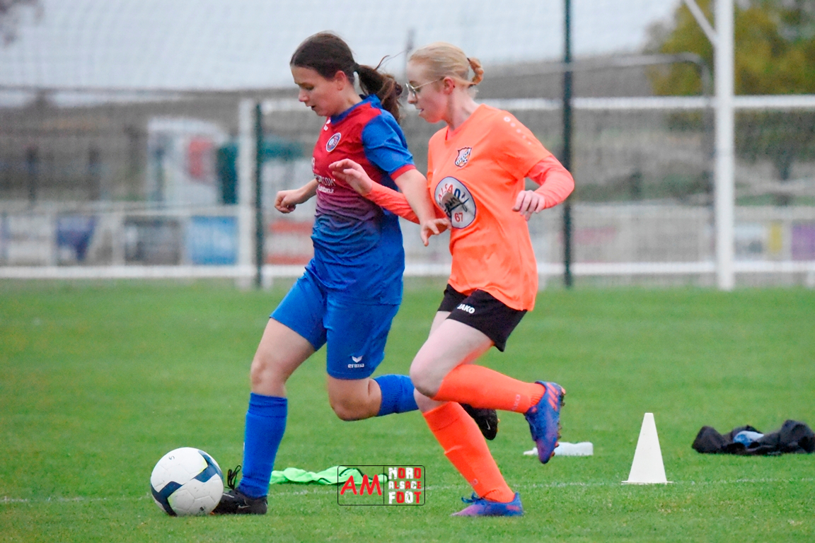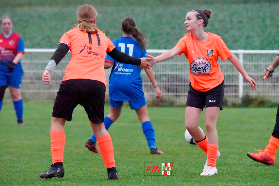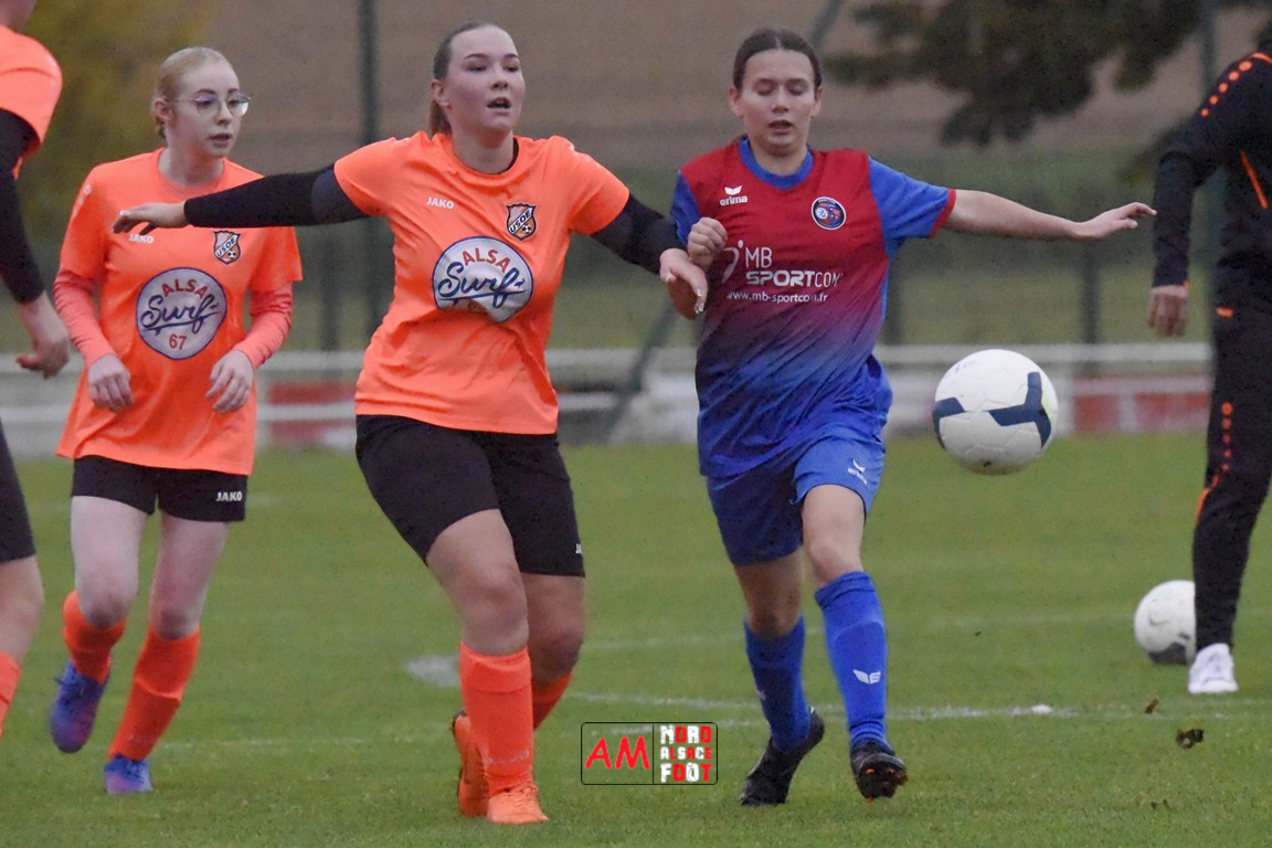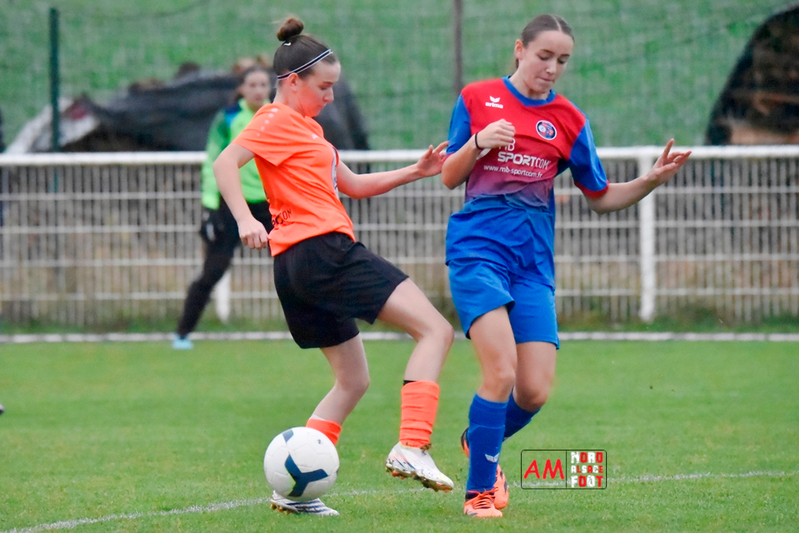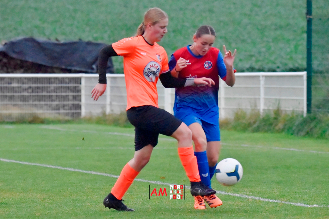 A l’occasion d’un match en retard comptant pour la deuxième journée de championnat chez les U18/F à 8 (Poule A), l’US Oberlauterbach F accueillait l’entente KOMETRIB afin de tenter de réaliser un exploit face à l’un des deux équipes invaincues de ce groupe. Après une première période se soldant par un score de parité (3-3), les protégées de Gass Fabrice ne purent empêcher leurs adversaires de faire la différence en seconde période, les deux équipes se quittant finalement sur ce score de 4-6! Retrouvez, ci-dessous, quelques images de cette rencontre et, pour en apprécier le contenu, veuillez cliquer sur l’une d’entre-elles pour afficher le diaporama.