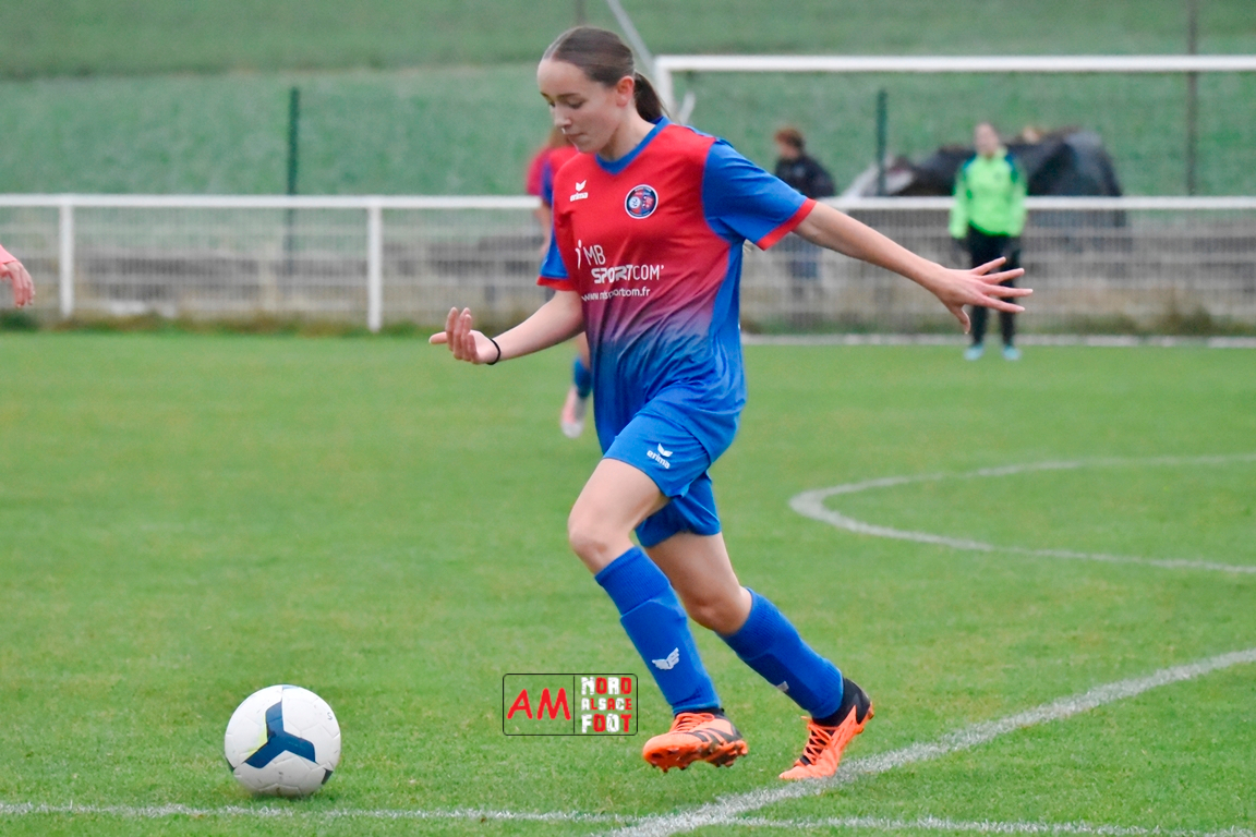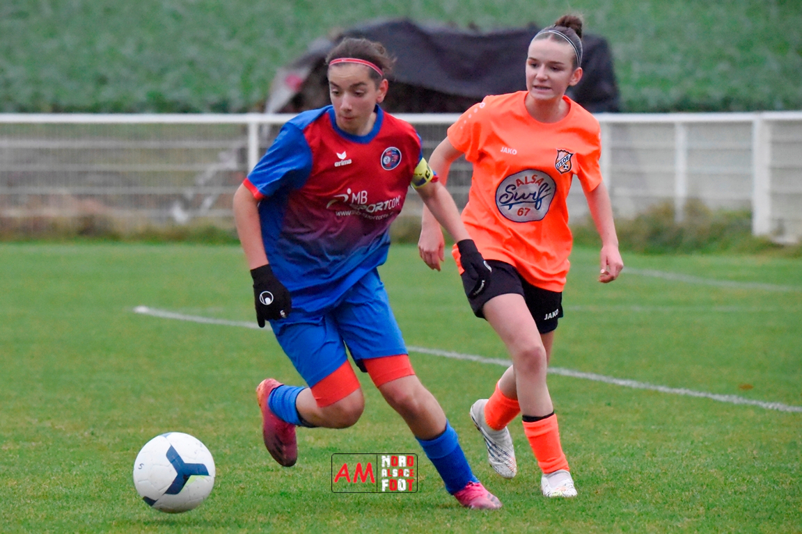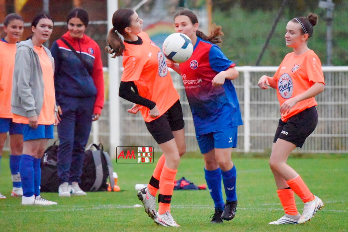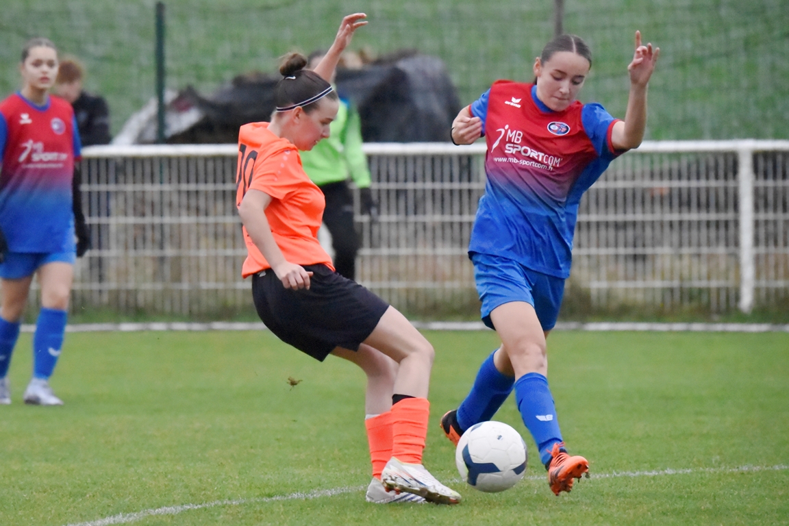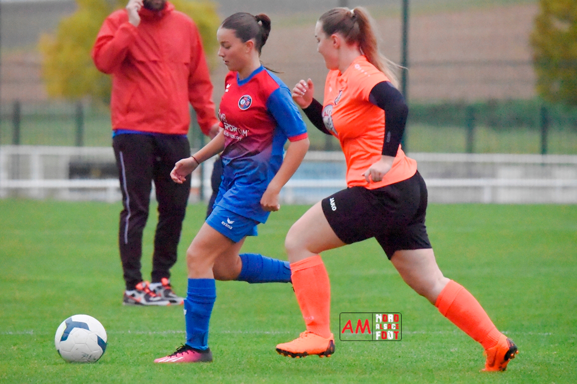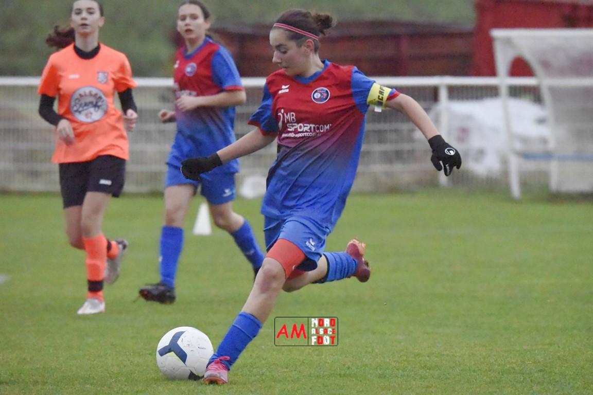 A l’occasion d’un match en retard comptant pour la deuxième journée de championnat chez les U18/F à 8 (Poule A), l’US Oberlauterbach F accueillait l’entente KOMETRIB afin de tenter de réaliser un exploit face à l’un des deux équipes invaincues de ce groupe. Après une première période se soldant par un score de parité (3-3), les protégées de Gass Fabrice ne purent empêcher leurs adversaires de faire la différence en seconde période, les deux équipes se quittant finalement sur ce score de 4-6! Retrouvez, ci-dessous, quelques images de cette rencontre et, pour en apprécier le contenu, veuillez cliquer sur l’une d’entre-elles pour afficher le diaporama.