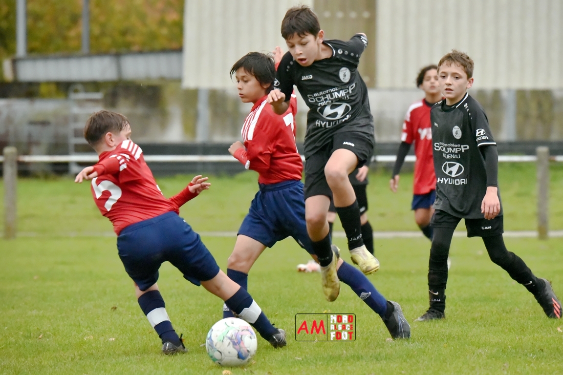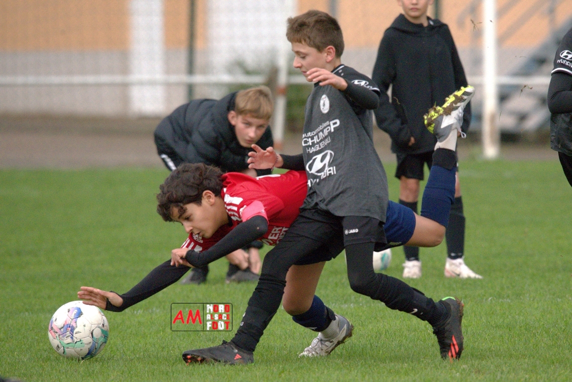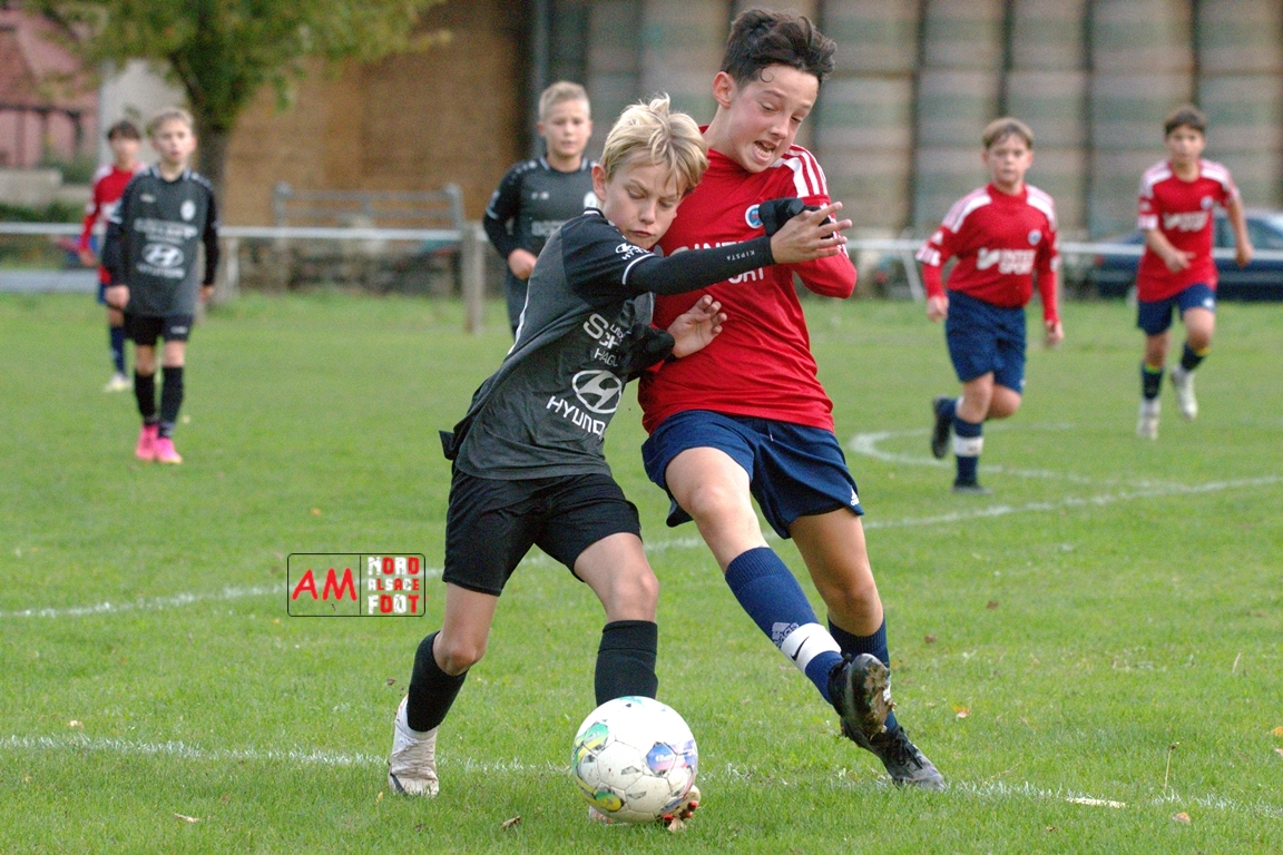 A l’occasion d’un match avancé comptant pour la sixième journée de championnat chez les U13/D3 (Poule AE), les U13-3 du GJAN accueillaient les U13-3 du FCSR Haguenau afin de tenter de prendre leur revanche du match aller s’étant soldé sur ce score de 7-0, et ce, face à des adversaires visant la passe de six à l’occasion de ce déplacement. Après une première période se soldant par un large avantage en faveur des visiteurs grâce à des réalisations signées Werner Lilian (3e, 10e), Fuchs Hugo (12e) et Cessinas Arthur (27e) contre un CSC inscrit par Wolf Nathan en faveur des locaux, les protégés de Heilmann Yves allaient résister en seconde période avant qu’ils n’encaissent un dernier but étant inscrit par Cessinas Arthur (51e). Retrouvez, ci-dessous, quelques images de cette rencontre et, pour en apprécier le contenu, veuillez cliquer sur l’une d’entre-elles pour afficher le diaporama.